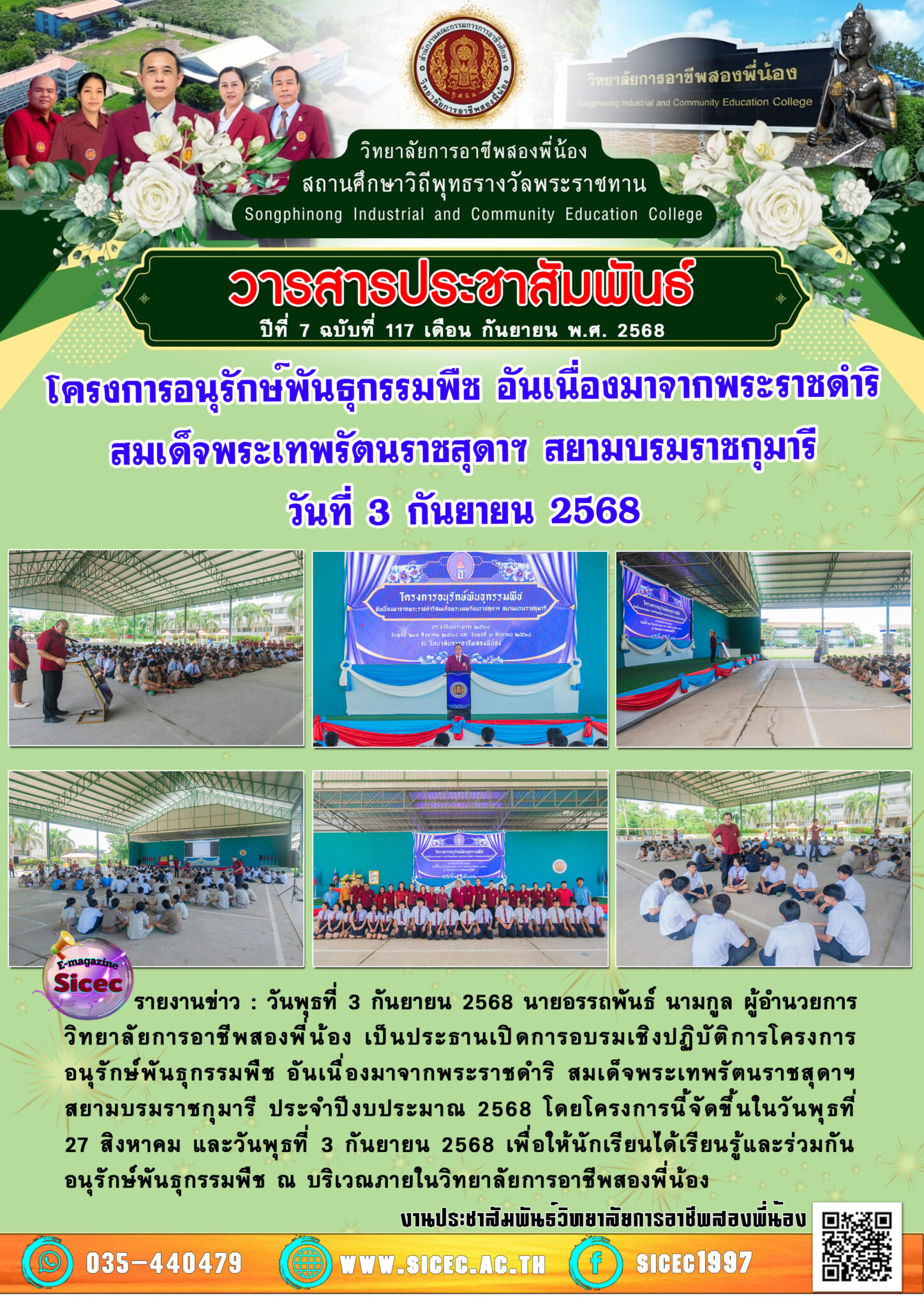 ฉบับที่ 117 โครงการอนุรักษ์พันธุกรรมพืช อันเนื่องมาจากพระราชดำริสมเด็จพระเทพรัตนราชสุดาฯ สยามบรมราชกุมารี 4 กันยายน 2568 นายอนุสรณ์ วงษ์ประเสริฐ จดหมายข่าว นายอนุสรณ์ วงษ์ประเสริฐ