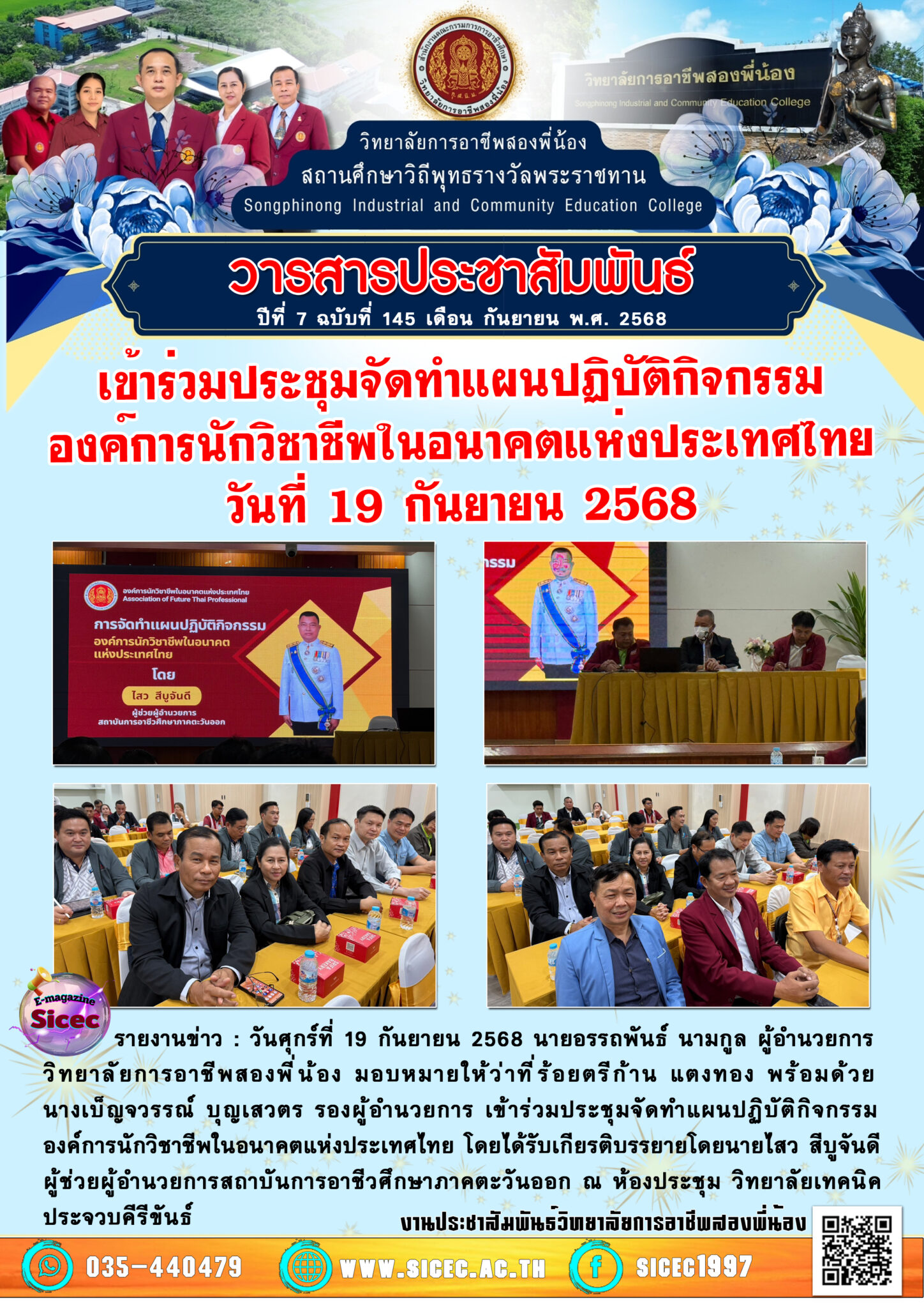 ฉบับที่ 145 เข้าร่วมประชุมจัดทำแผนปฏิบัติกิจกรรมองค์การนักวิชาชีพในอนาคตแห่งประเทศไทย 22 กันยายน 256822 กันยายน 2025 นายอนุสรณ์ วงษ์ประเสริฐ จดหมายข่าว นายอนุสรณ์ วงษ์ประเสริฐ
