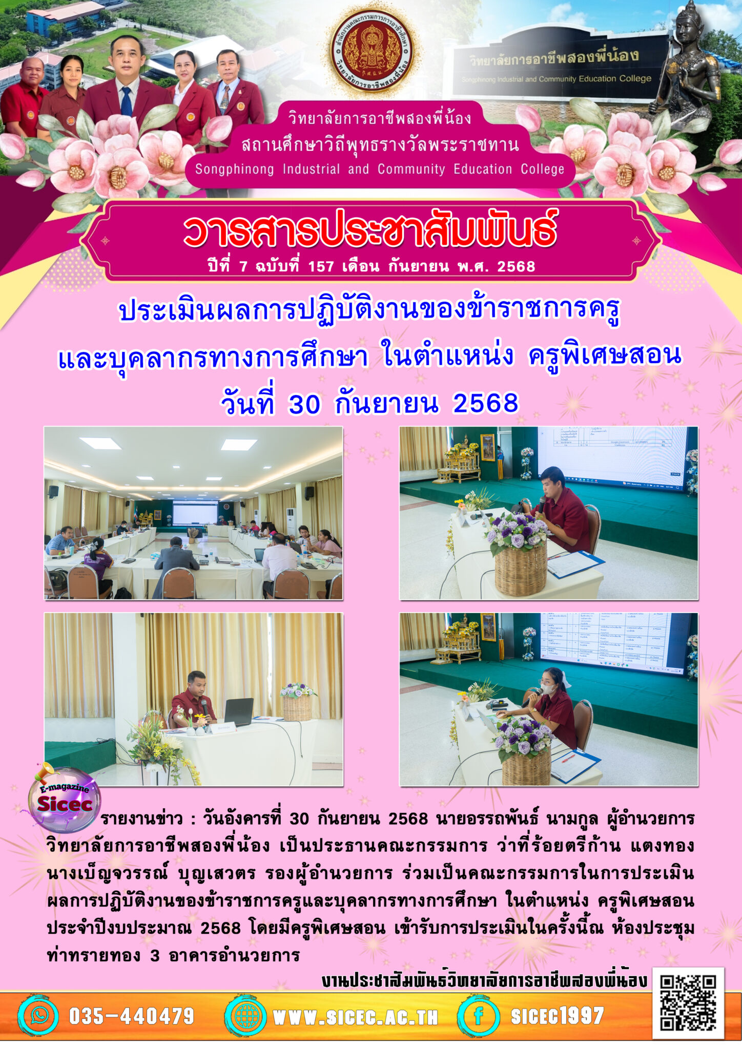 ฉบับที่ 157 ประเมินผลการปฏิบัติงานของข้าราชการครูและบุคลากรทางการศึกษา ในตำแหน่ง ครูพิเศษสอน 3 ตุลาคม 2568 นายอนุสรณ์ วงษ์ประเสริฐ จดหมายข่าว นายอนุสรณ์ วงษ์ประเสริฐ