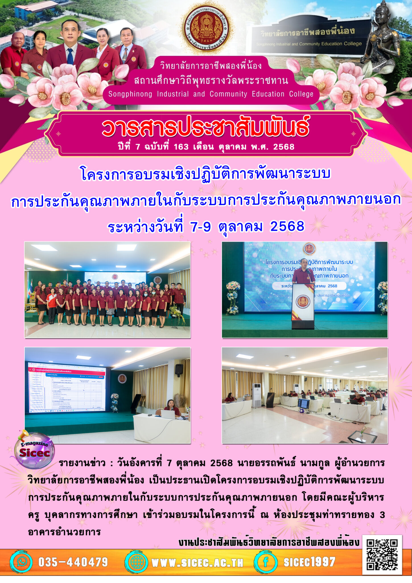 ฉบับที่ 163 โครงการอบรมเชิงปฏิบัติการพัฒนาระบบการประกันคุณภาพภายในกับระบบการประกันคุณภาพภายนอก 7 ตุลาคม 25687 ตุลาคม 2025 นายอนุสรณ์ วงษ์ประเสริฐ จดหมายข่าว นายอนุสรณ์ วงษ์ประเสริฐ