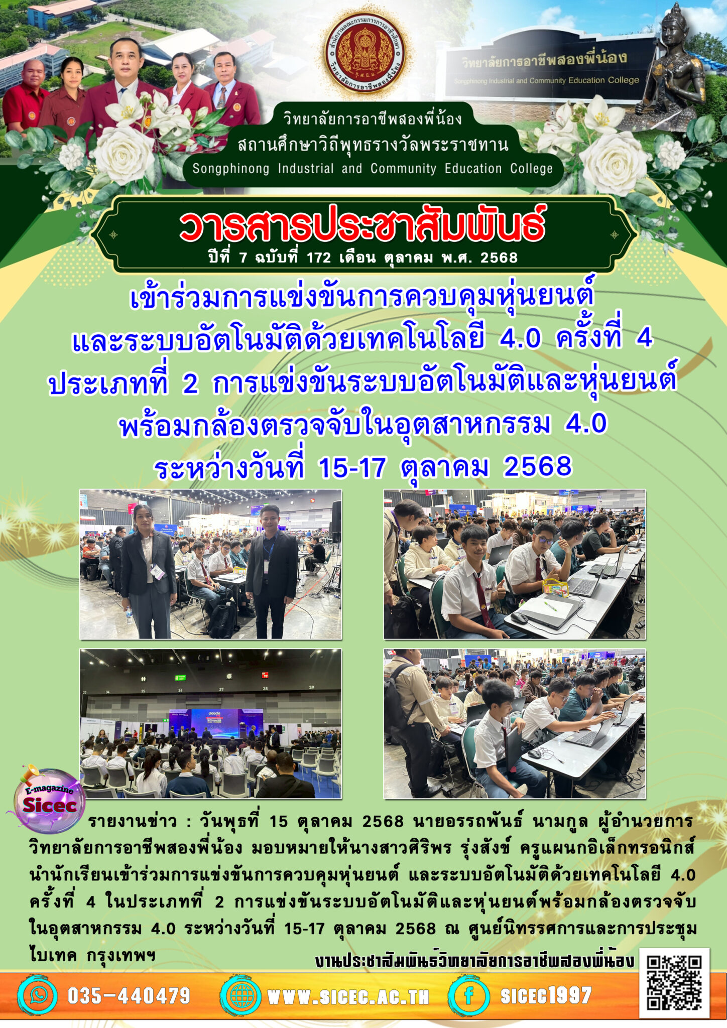ฉบับที่ 172 เข้าร่วมการแข่งขันการควบคุมหุ่นยนต์และระบบอัตโนมัติด้วยเทคโนโลยี 4.0 ครั้งที่ 4ประเภทที่ 2 การแข่งขันระบบอัตโนมัติและหุ่นยนต์พร้อมกล้องตรวจจับในอุตสาหกรรม 4.0 21 ตุลาคม 256821 ตุลาคม 2025 นายอนุสรณ์ วงษ์ประเสริฐ จดหมายข่าว นายอนุสรณ์ วงษ์ประเสริฐ