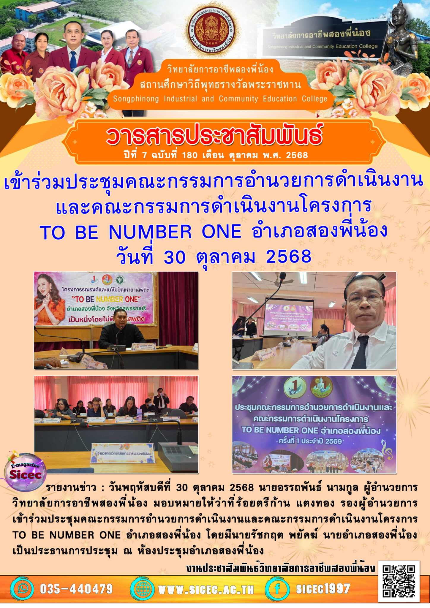 ฉบับที่ 180 เข้าร่วมประชุมคณะกรรมการอำนวยการดำเนินงานและคณะกรรมการดำเนินงานโครงการTO BE NUMBER ONE อำเภอสองพี่น้อง 30 ตุลาคม 2568 นายอนุสรณ์ วงษ์ประเสริฐ จดหมายข่าว นายอนุสรณ์ วงษ์ประเสริฐ