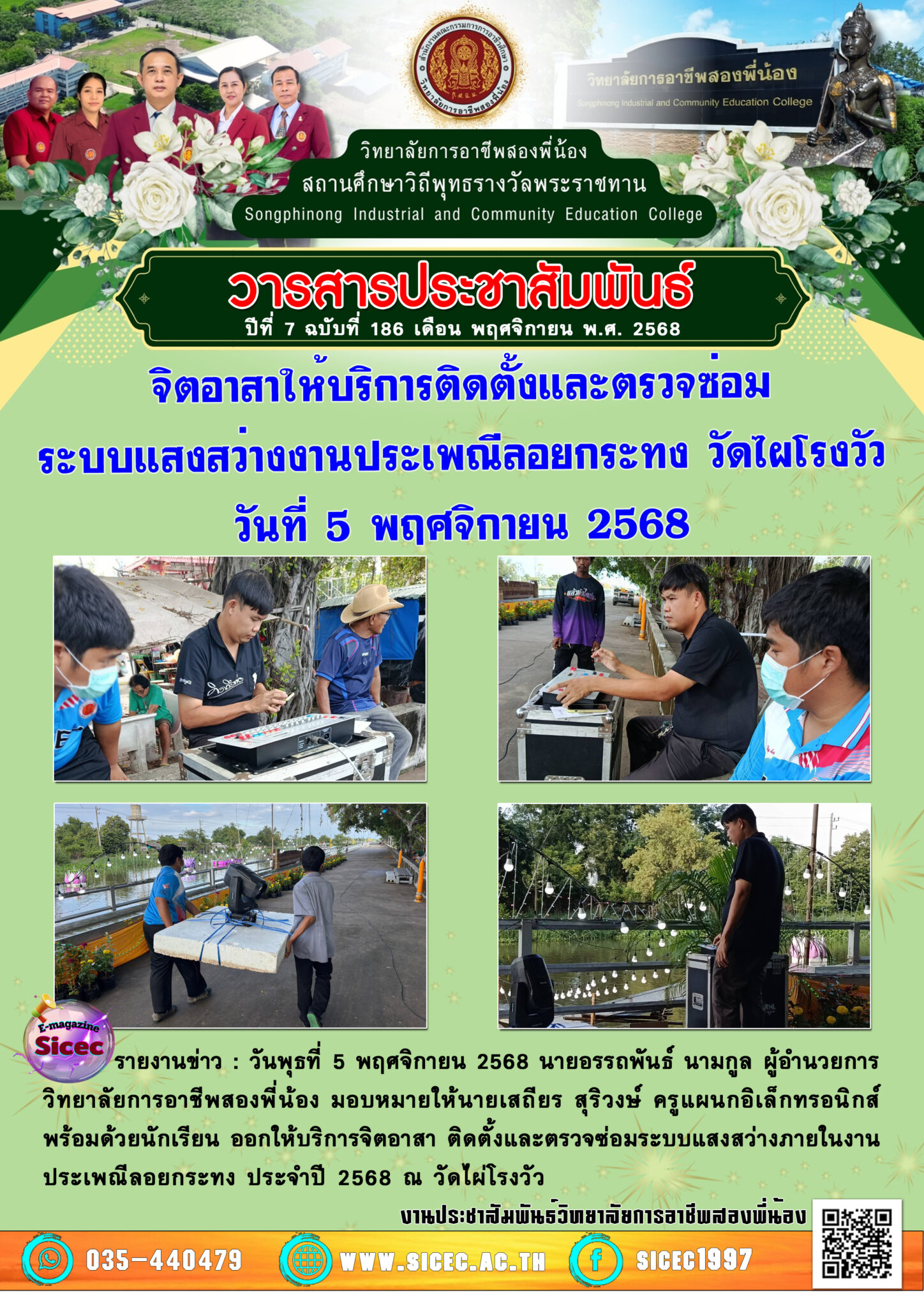 ฉบับที่ 186 จิตอาสาให้บริการติดตั้งและตรวจซ่อมระบบแสงสว่างงานประเพณีลอยกระทง วัดไผโรงวัว 10 พฤศจิกายน 256810 พฤศจิกายน 2025 นายอนุสรณ์ วงษ์ประเสริฐ จดหมายข่าว นายอนุสรณ์ วงษ์ประเสริฐ