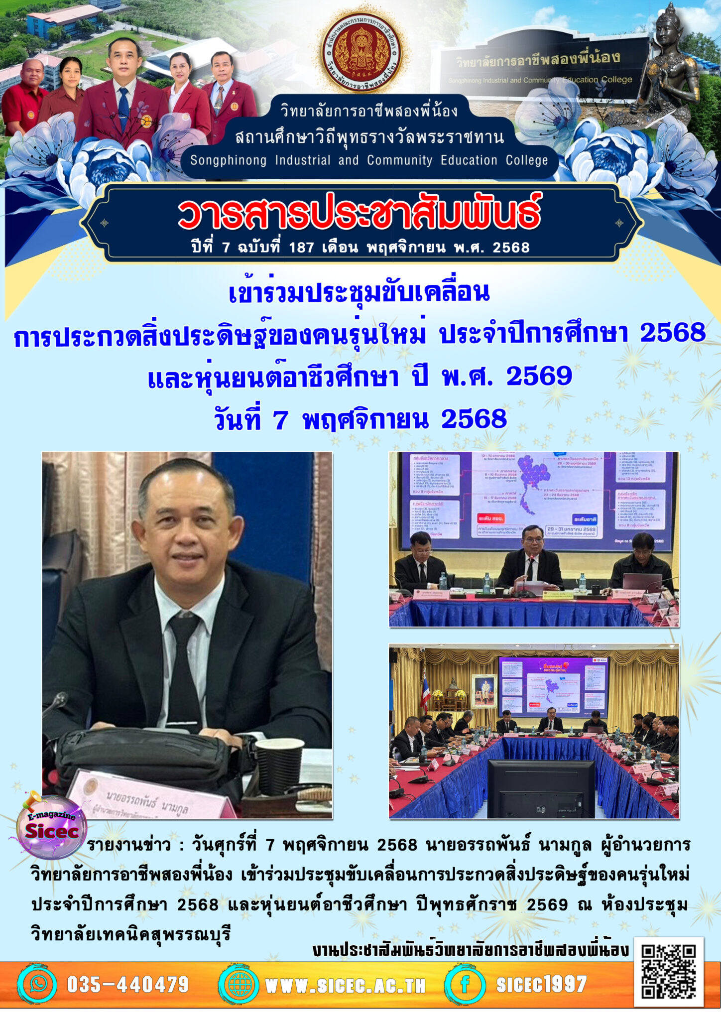 ฉบับที่ 187 เข้าร่วมประชุมขับเคลื่อนการประกวดสิ่งประดิษฐ์ของคนรุ่นใหม่ ประจำปีการศึกษา 2568และหุ่นยนต์อาชีวศึกษา ปี พ.ศ. 2569 10 พฤศจิกายน 2568 นายอนุสรณ์ วงษ์ประเสริฐ จดหมายข่าว นายอนุสรณ์ วงษ์ประเสริฐ