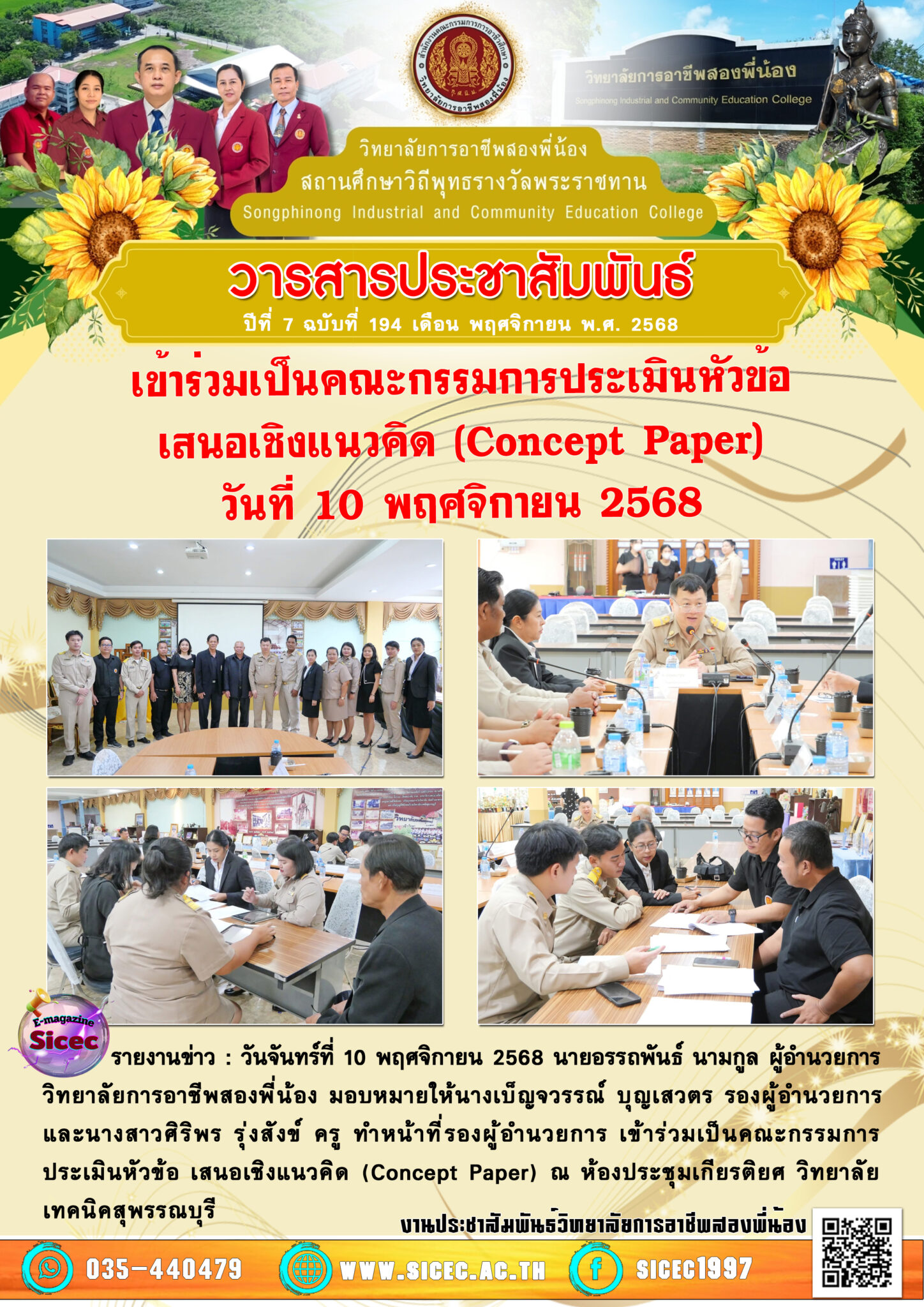 ฉบับที่ 194 เข้าร่วมเป็นคณะกรรมการประเมินหัวข้อเสนอเชิงแนวคิด (Concept Paper) 11 พฤศจิกายน 2568 นายอนุสรณ์ วงษ์ประเสริฐ จดหมายข่าว นายอนุสรณ์ วงษ์ประเสริฐ
