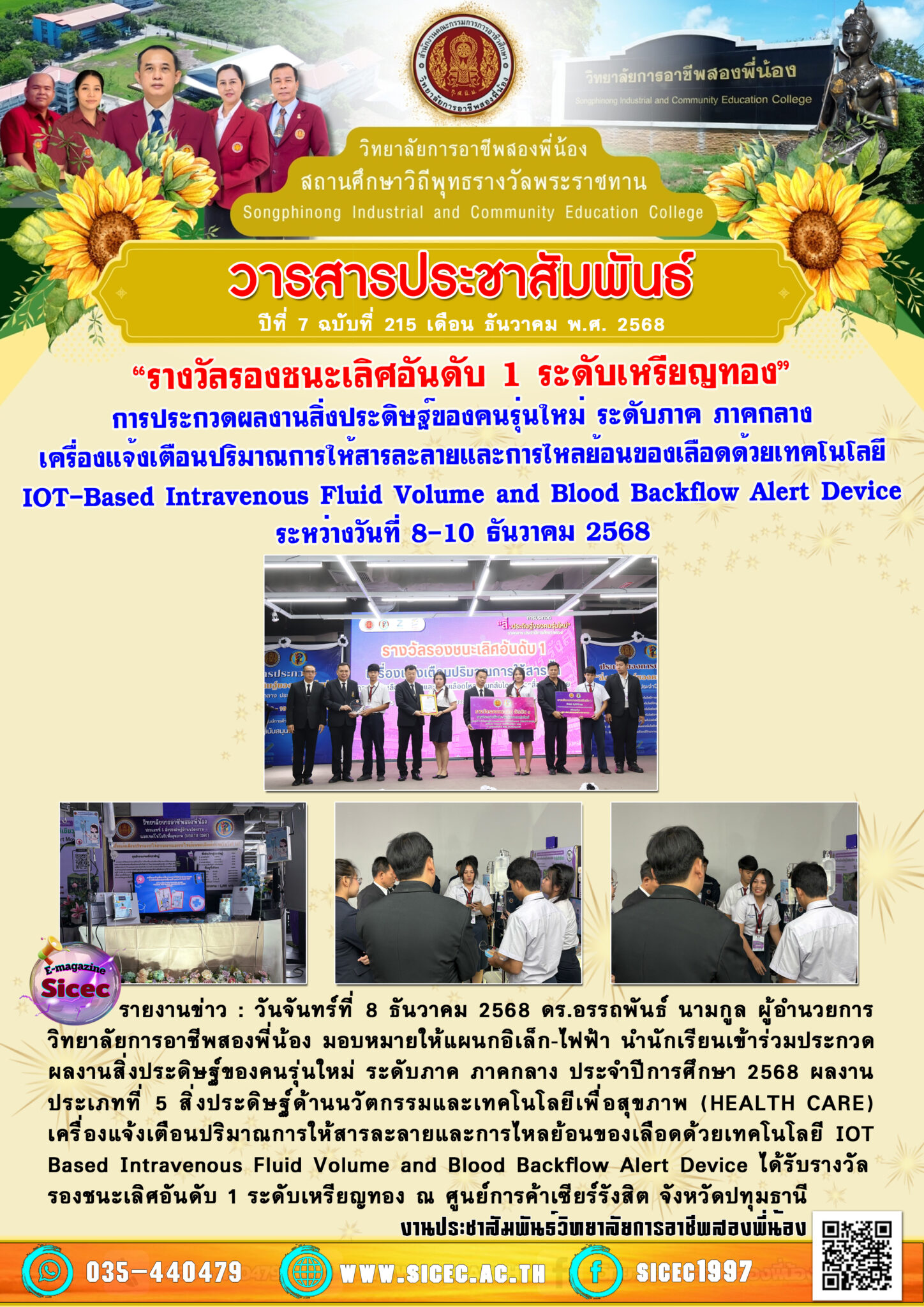 ฉบับที่ 215 “รางวัลรองชนะเลิศอันดับ 1 ระดับเหรียญทอง”การประกวดผลงานสิ่งประดิษฐ์ของคนรุ่นใหม่ ระดับภาค ภาคกลางเครื่องแจ้งเตือนปริมาณการให้สารละลายและการไหลย้อนของเลือดด้วยเทคโนโลยีIOT-Based Intravenous Fluid Volume and Blood Backflow Alert Device 12 ธันวาคม 256812 ธันวาคม 2025 นายอนุสรณ์ วงษ์ประเสริฐ จดหมายข่าว นายอนุสรณ์ วงษ์ประเสริฐ