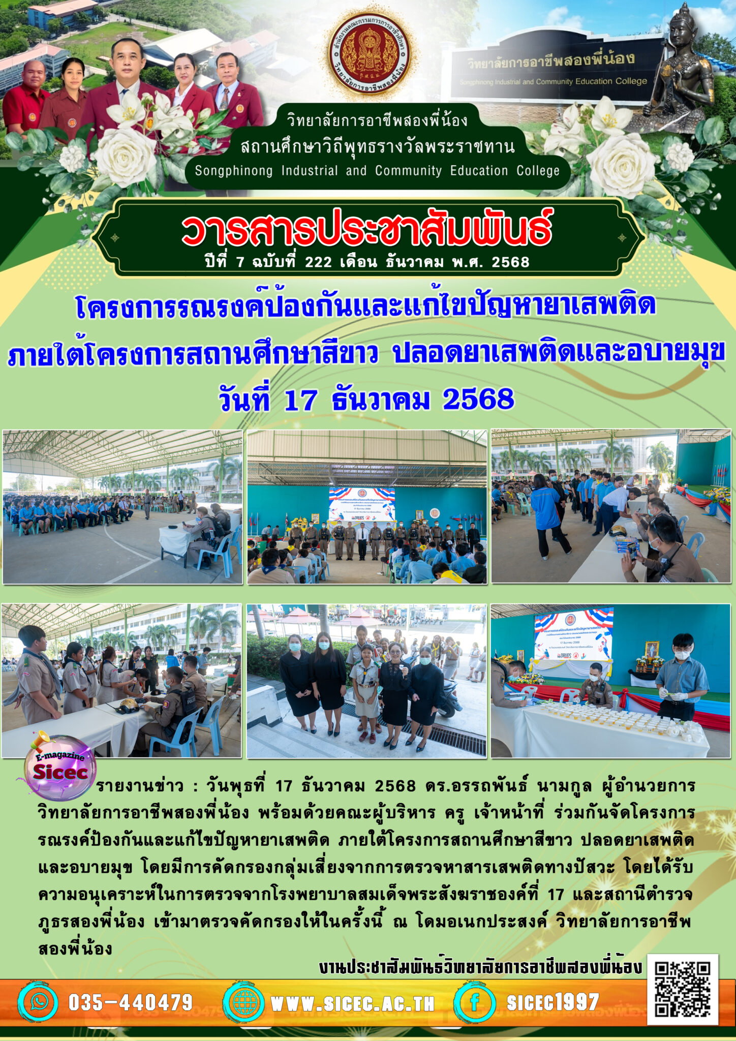 ฉบับที่ 222 โครงการรณรงค์ป้องกันและแก้ไขปัญหายาเสพติดภายใต้โครงการสถานศึกษาสีขาว ปลอดยาเสพติดและอบายมุข 25 ธันวาคม 256825 ธันวาคม 2025 นายอนุสรณ์ วงษ์ประเสริฐ จดหมายข่าว นายอนุสรณ์ วงษ์ประเสริฐ
