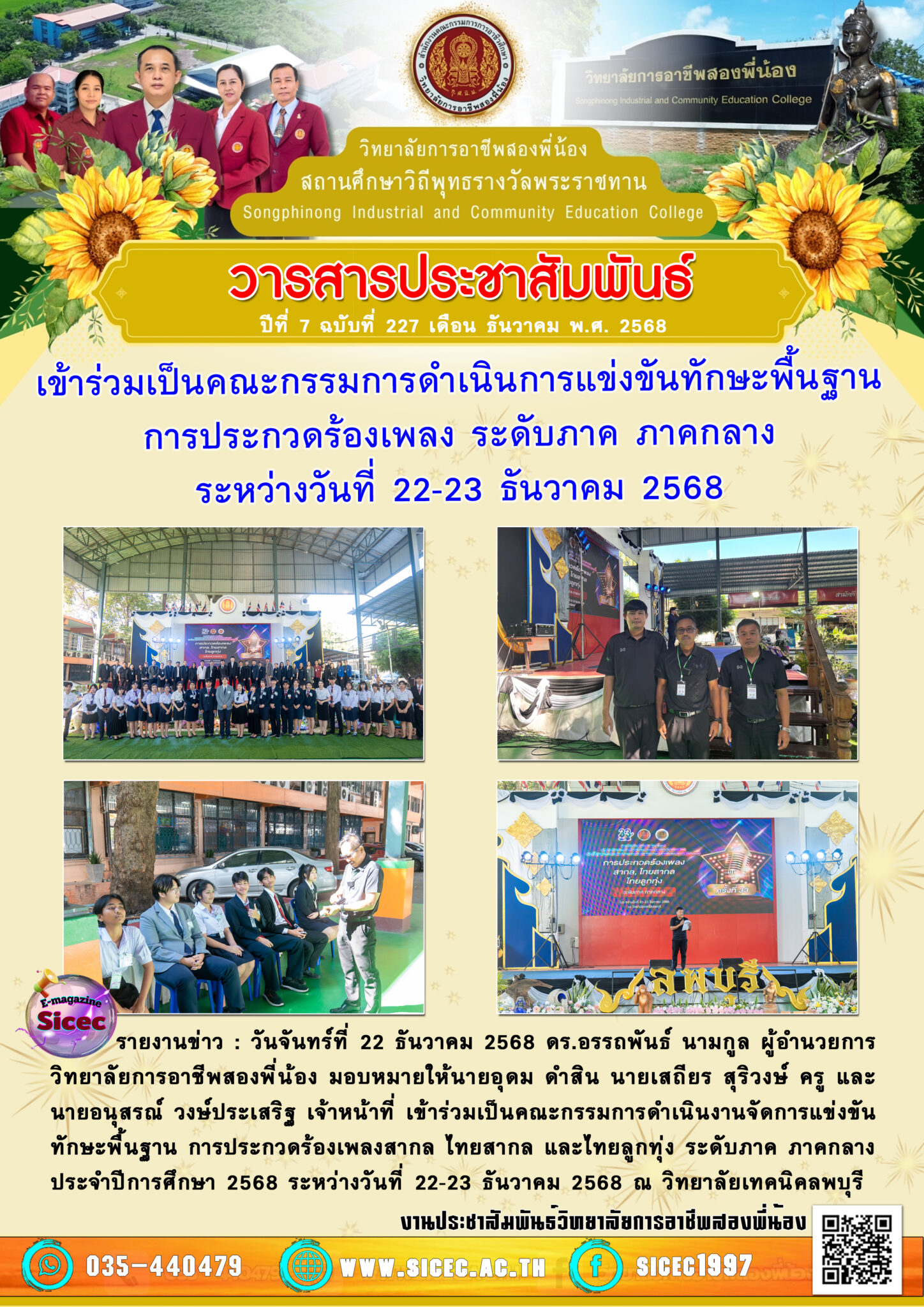 ฉบับที่ 227 เข้าร่วมเป็นคณะกรรมการดำเนินการแข่งขันทักษะพื้นฐานการประกวดร้องเพลง ระดับภาค ภาคกลาง 25 ธันวาคม 2568 นายอนุสรณ์ วงษ์ประเสริฐ จดหมายข่าว นายอนุสรณ์ วงษ์ประเสริฐ