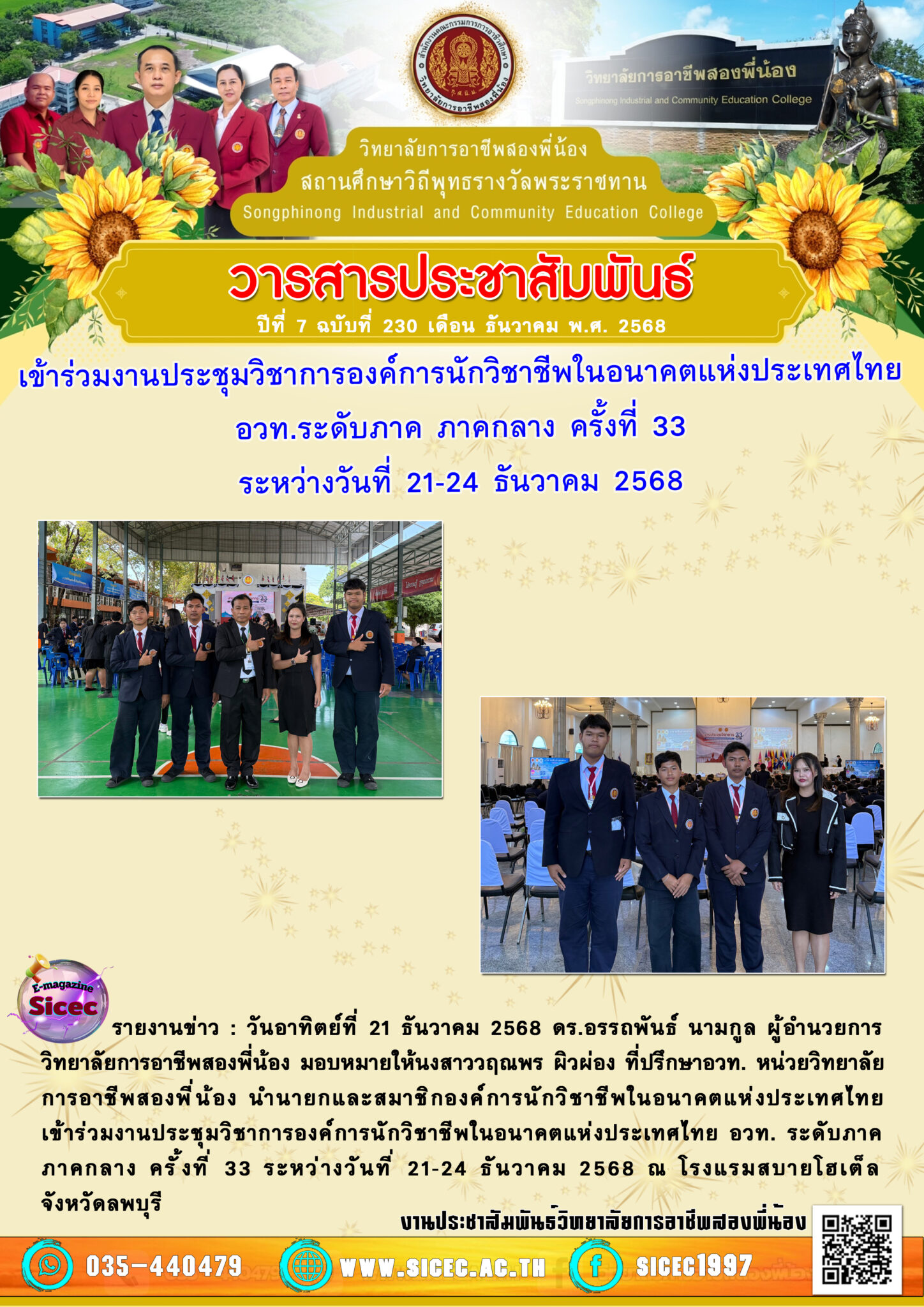 ฉบับที่ 230 เข้าร่วมงานประชุมวิชาการองค์การนักวิชาชีพในอนาคตแห่งประเทศไทยอวท.ระดับภาค ภาคกลาง ครั้งที่ 33 25 ธันวาคม 256825 ธันวาคม 2025 นายอนุสรณ์ วงษ์ประเสริฐ จดหมายข่าว นายอนุสรณ์ วงษ์ประเสริฐ