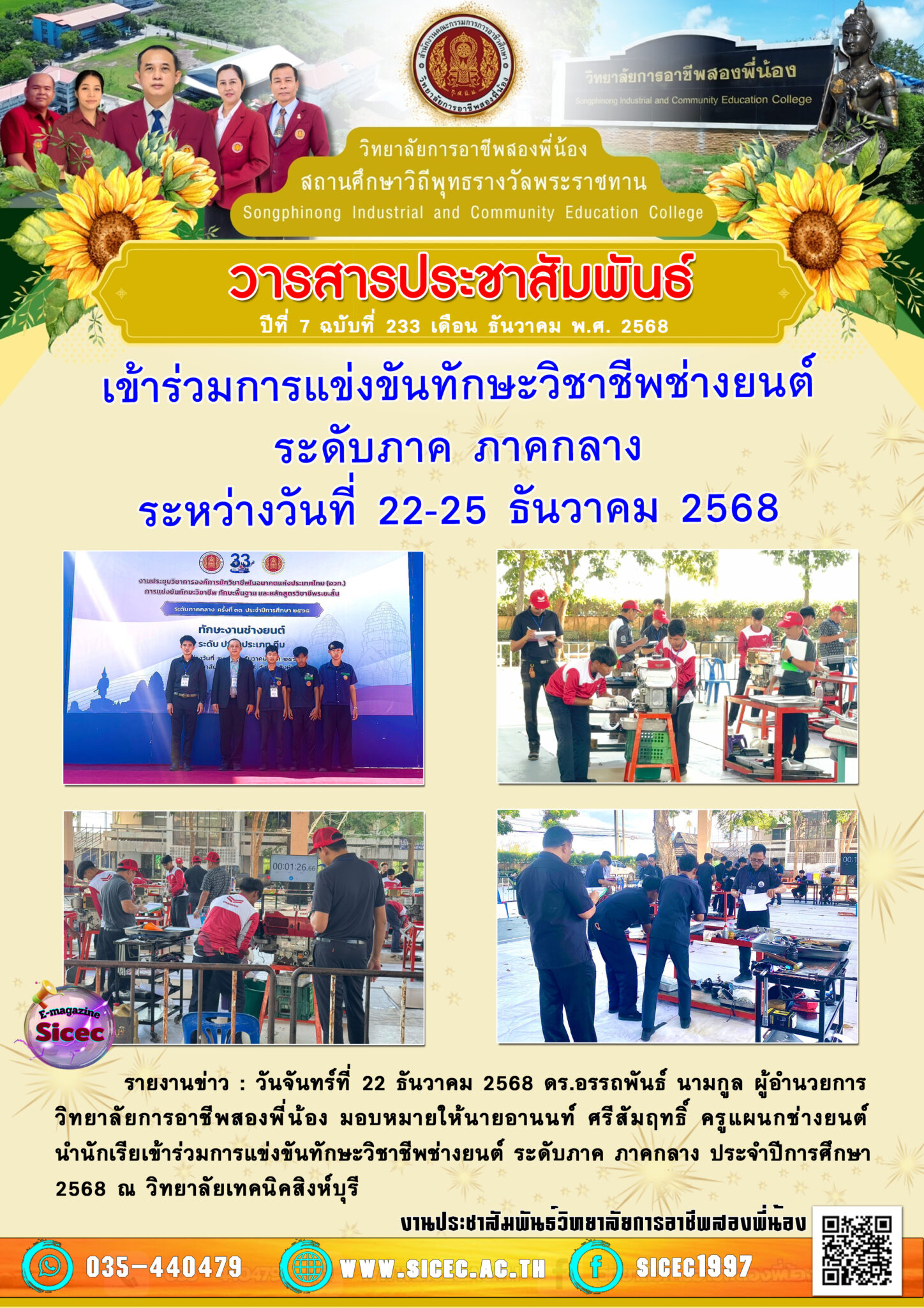 ฉบับที่ 233 เข้าร่วมการแข่งขันทักษะวิชาชีพช่างยนต์ระดับภาค ภาคกลาง 25 ธันวาคม 256825 ธันวาคม 2025 นายอนุสรณ์ วงษ์ประเสริฐ จดหมายข่าว นายอนุสรณ์ วงษ์ประเสริฐ