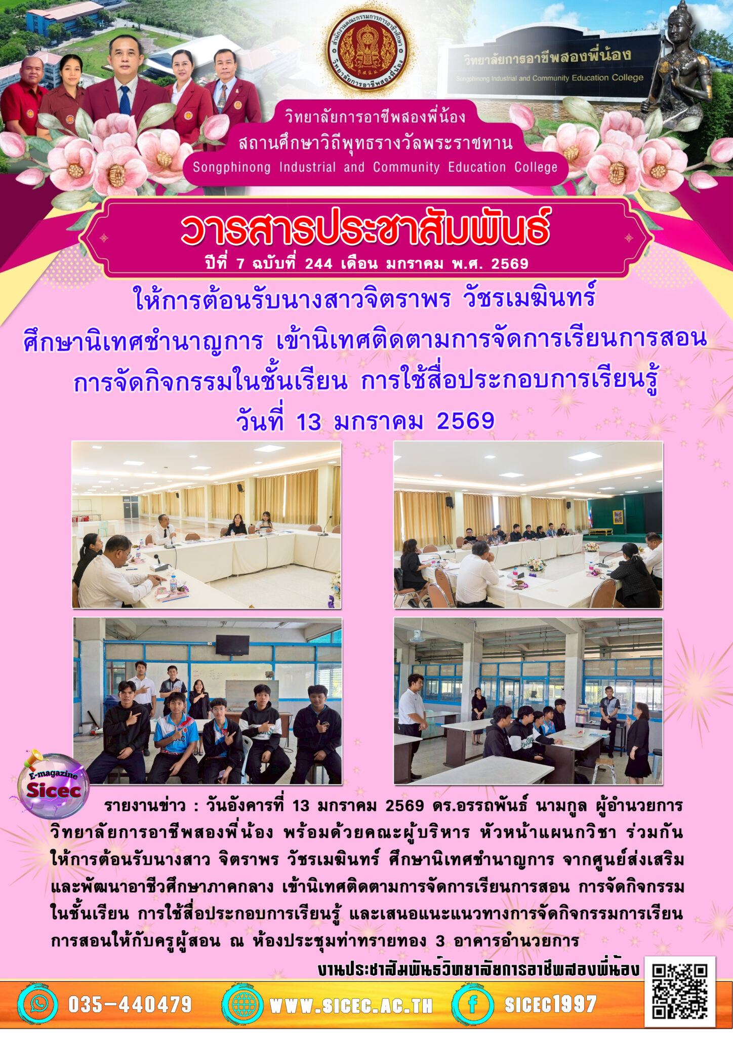 ฉบับที่ 244 ให้การต้อนรับนางสาวจิตราพร วัชรเมฆินทร์ศึกษานิเทศชำนาญการ เข้านิเทศติดตามการจัดการเรียนการสอนการจัดกิจกรรมในชั้นเรียน การใช้สื่อประกอบการเรียนรู้ 19 มกราคม 2569 นายอนุสรณ์ วงษ์ประเสริฐ จดหมายข่าว นายอนุสรณ์ วงษ์ประเสริฐ