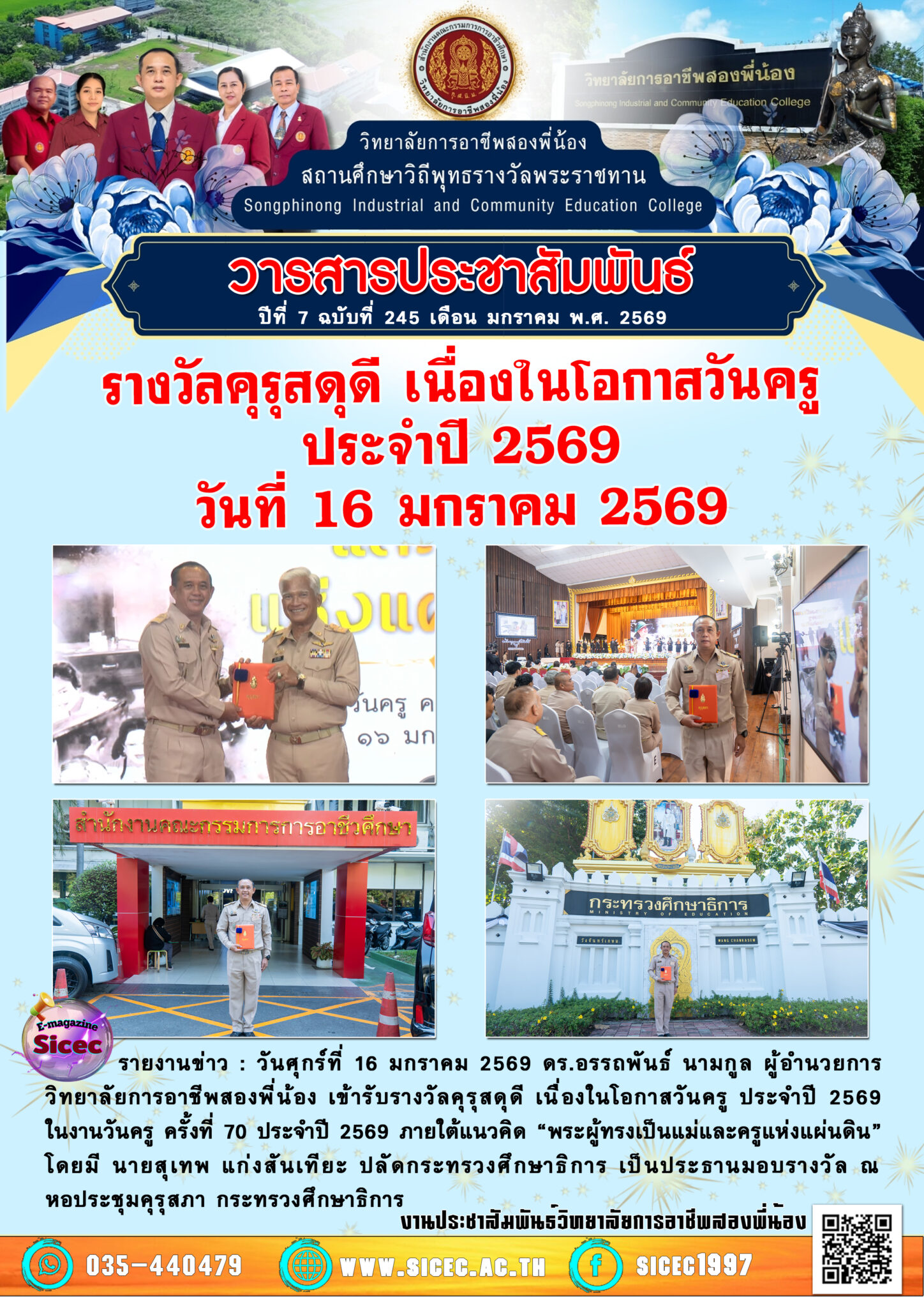 ฉบับที่ 245 รางวัลคุรุสดุดี เนื่องในโอกาสวันครูประจำปี 2569 19 มกราคม 2569 นายอนุสรณ์ วงษ์ประเสริฐ จดหมายข่าว นายอนุสรณ์ วงษ์ประเสริฐ