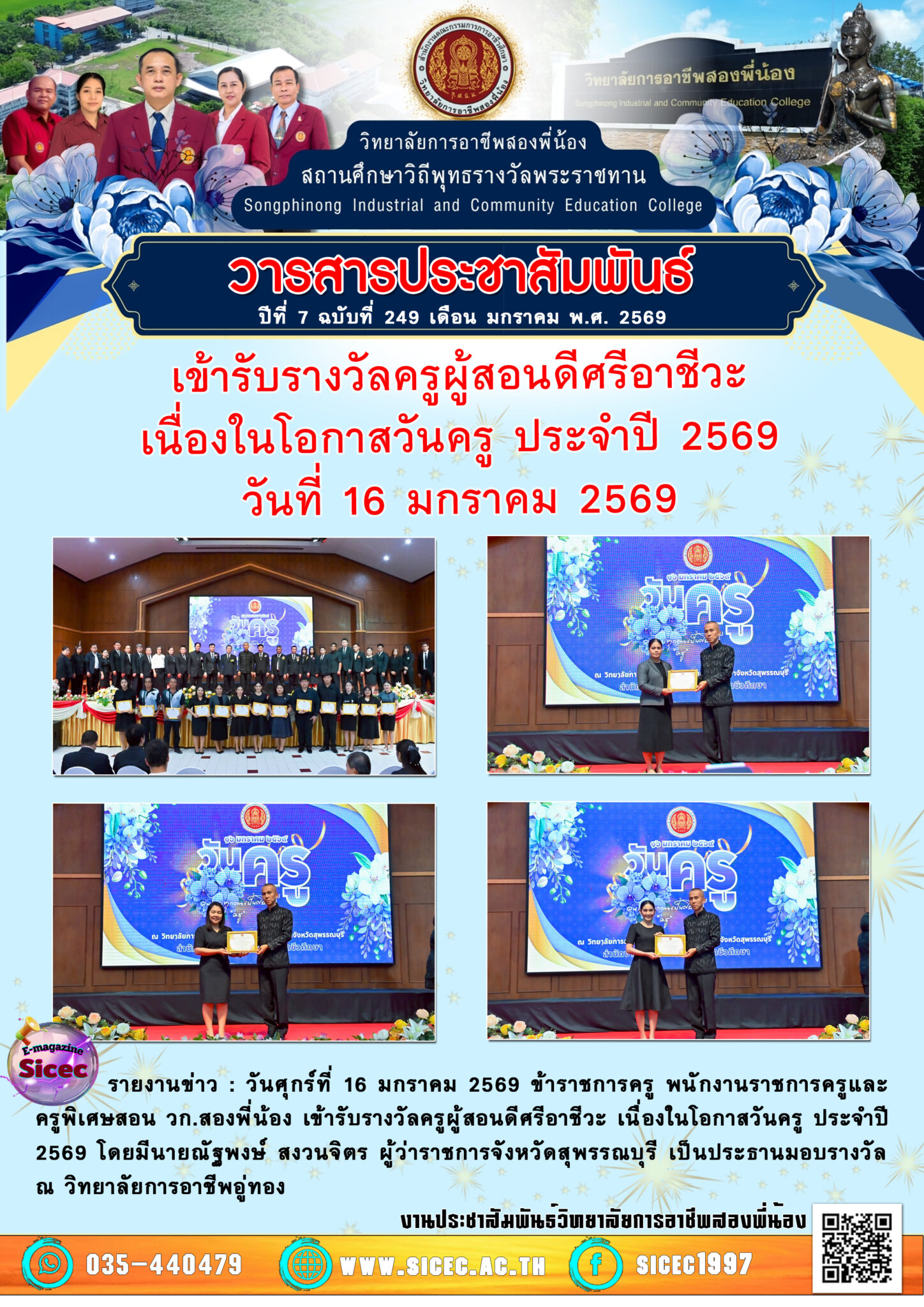 ฉบับที่ 249 เข้ารับรางวัลครูผู้สอนดีศรีอาชีวะเนื่องในโอกาสวันครู ประจำปี 2569 19 มกราคม 2569 นายอนุสรณ์ วงษ์ประเสริฐ จดหมายข่าว นายอนุสรณ์ วงษ์ประเสริฐ