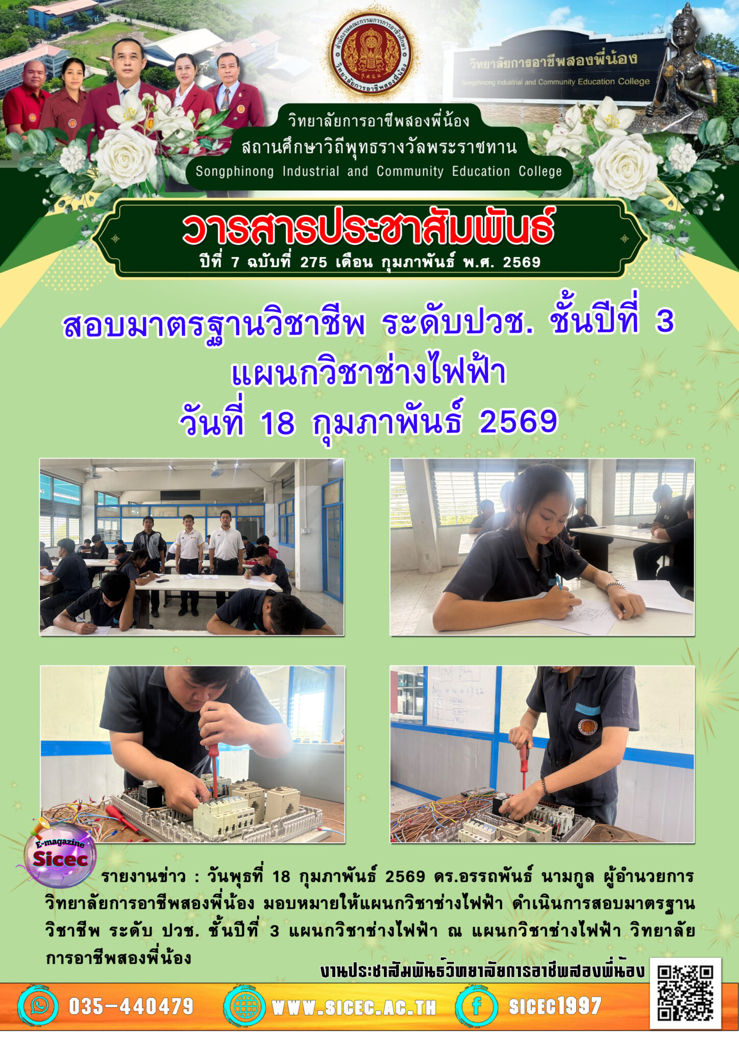 ฉบับที่ 275 สอบมาตรฐานวิชาชีพ ระดับปวช. ชั้นปีที่ 3แผนกวิชาช่างไฟฟ้า 19 กุมภาพันธ์ 256919 กุมภาพันธ์ 2026 นายอนุสรณ์ วงษ์ประเสริฐ จดหมายข่าว นายอนุสรณ์ วงษ์ประเสริฐ