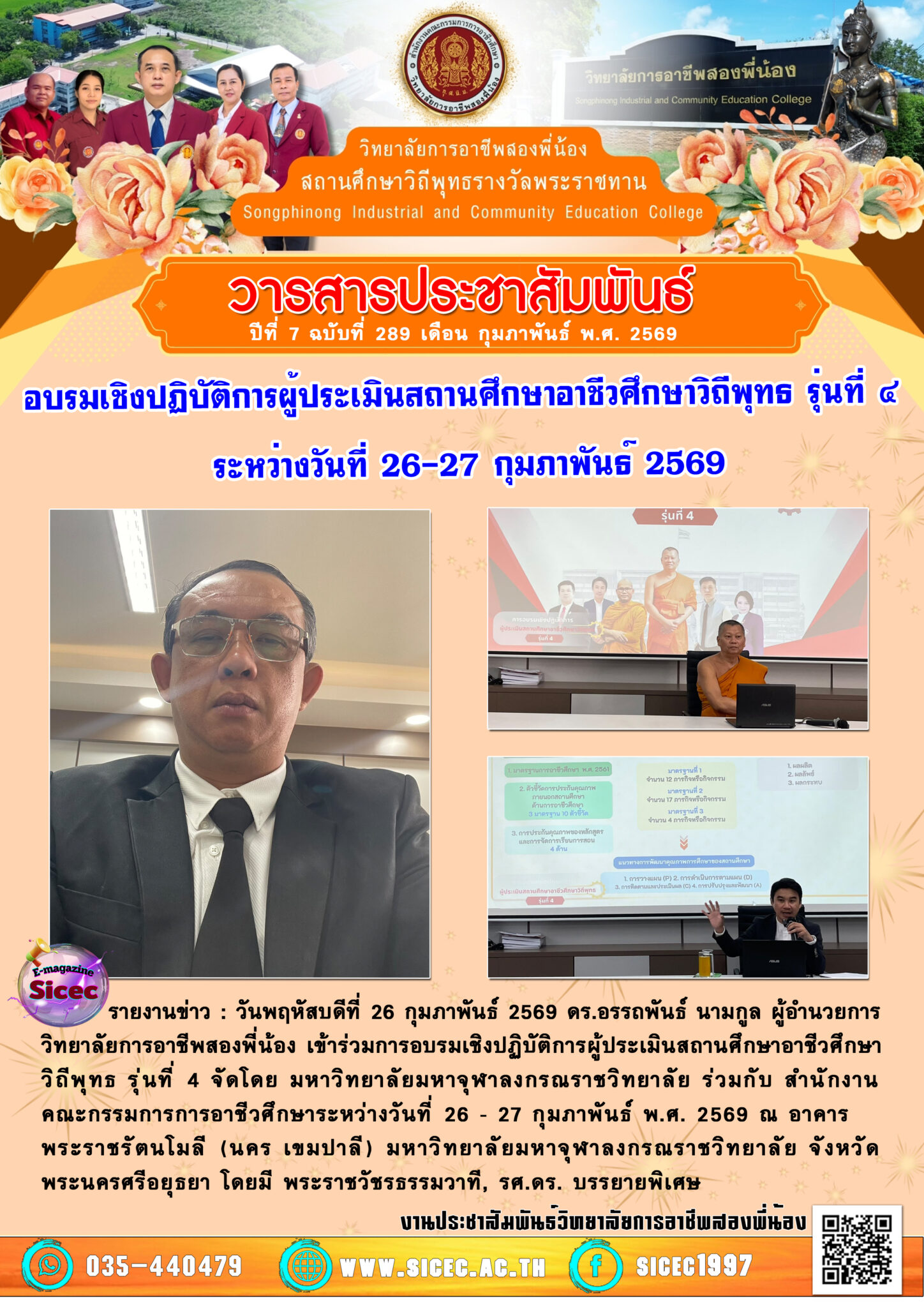 ฉบับที่ 289 อบรมเชิงปฏิบัติการผู้ประเมินสถานศึกษาอาชีวศึกษาวิถีพุทธ รุ่นที่ ๔ 26 กุมภาพันธ์ 256926 กุมภาพันธ์ 2026 นายอนุสรณ์ วงษ์ประเสริฐ จดหมายข่าว นายอนุสรณ์ วงษ์ประเสริฐ