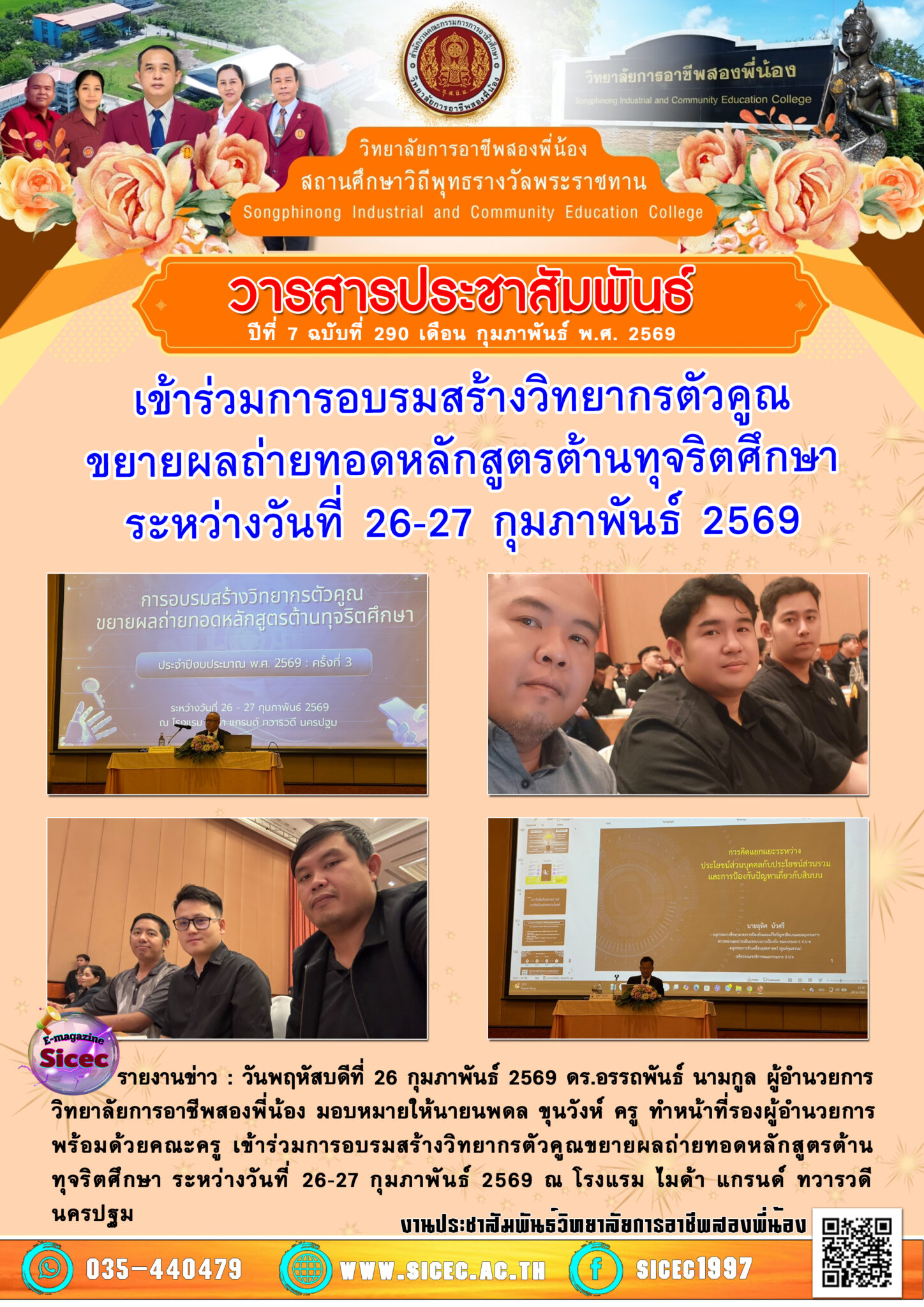 ฉบับที่ 290 เข้าร่วมการอบรมสร้างวิทยากรตัวคูณขยายผลถ่ายทอดหลักสูตรต้านทุจริตศึกษา 26 กุมภาพันธ์ 256926 กุมภาพันธ์ 2026 นายอนุสรณ์ วงษ์ประเสริฐ จดหมายข่าว นายอนุสรณ์ วงษ์ประเสริฐ