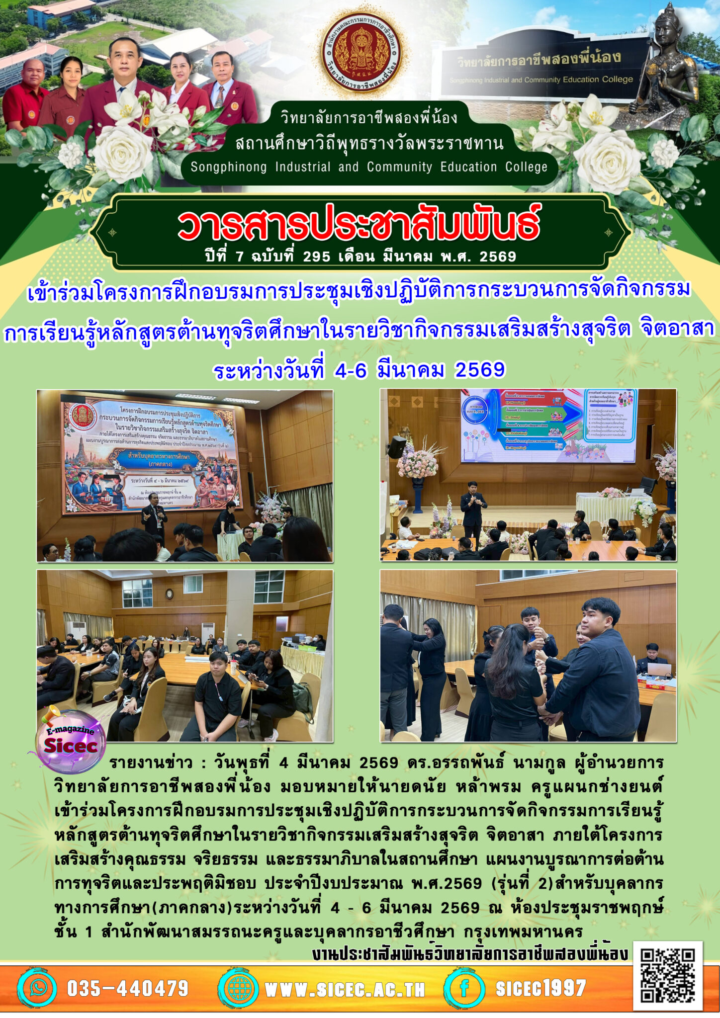 ฉบับที่ 295 เข้าร่วมโครงการฝึกอบรมการประชุมเชิงปฏิบัติการกระบวนการจัดกิจกรรมการเรียนรู้หลักสูตรต้านทุจริตศึกษาในรายวิชากิจกรรมเสริมสร้างสุจริต จิตอาสา 9 มีนาคม 25699 มีนาคม 2026 นายอนุสรณ์ วงษ์ประเสริฐ จดหมายข่าว นายอนุสรณ์ วงษ์ประเสริฐ