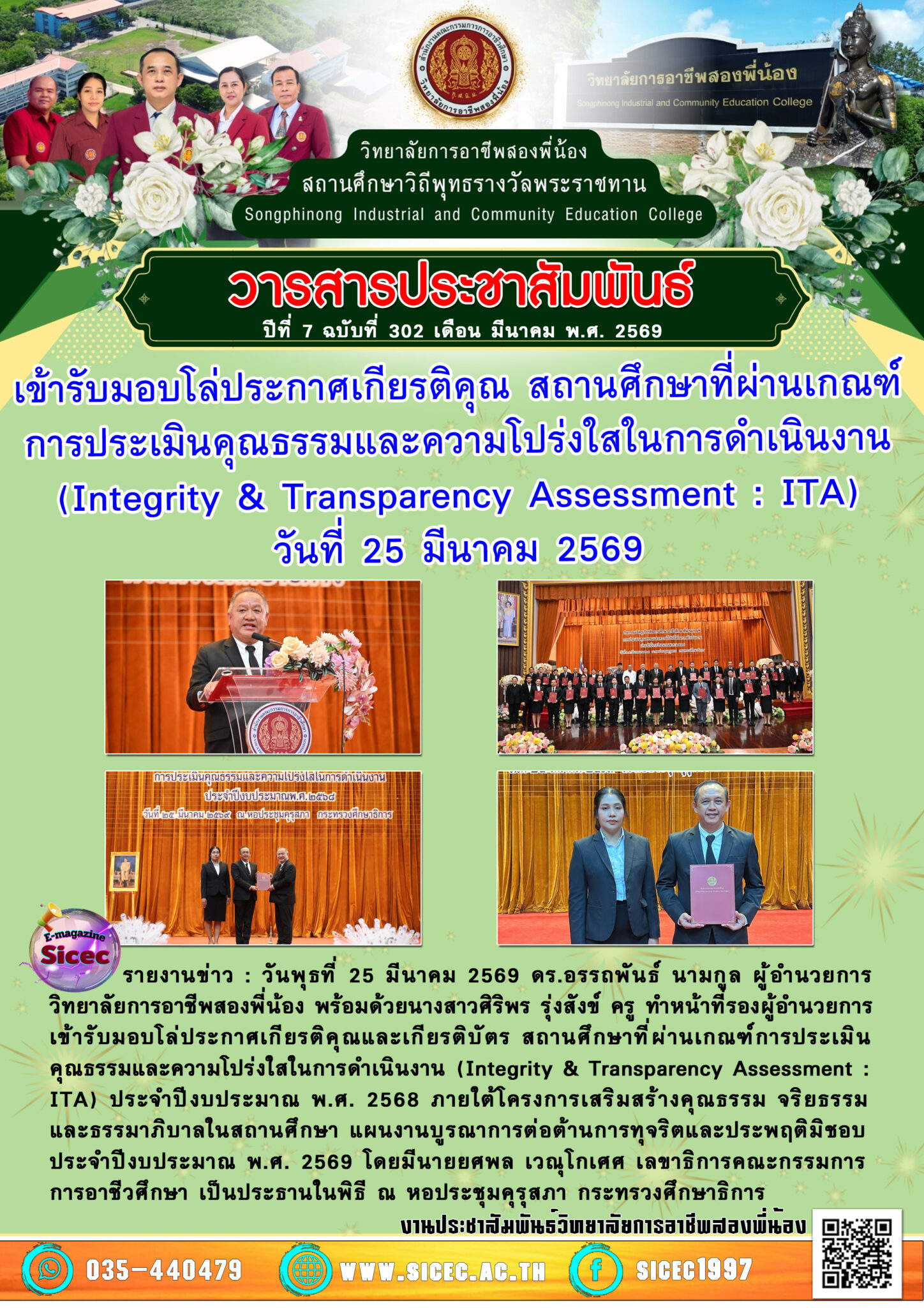 ฉบับที่ 302 เข้ารับมอบโล่ประกาศเกียรติคุณ สถานศึกษาที่ผ่านเกณฑ์การประเมินคุณธรรมและความโปร่งใสในการดำเนินงาน(Integrity & Transparency Assessment : ITA) 26 มีนาคม 256926 มีนาคม 2026 นายอนุสรณ์ วงษ์ประเสริฐ จดหมายข่าว นายอนุสรณ์ วงษ์ประเสริฐ