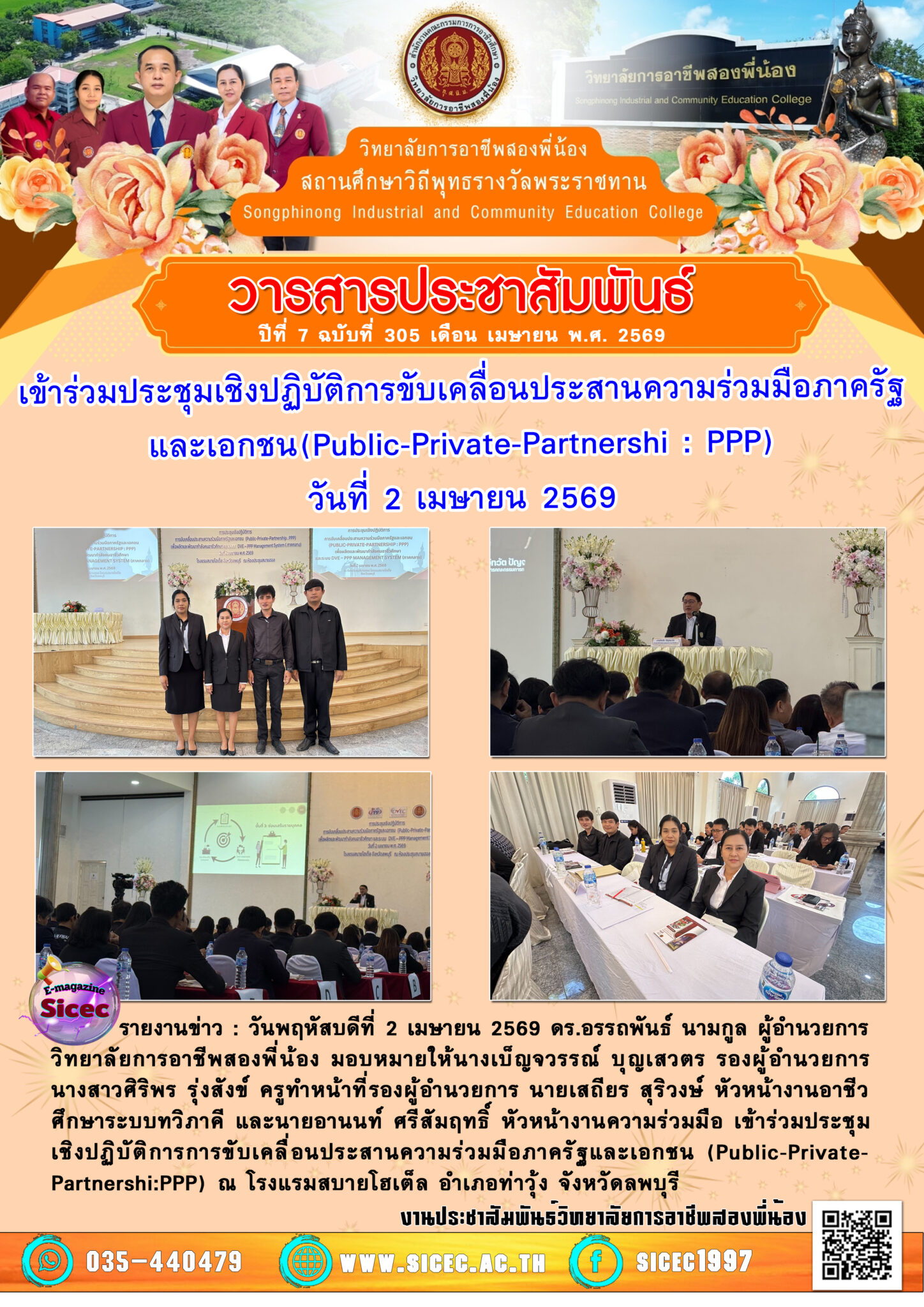 ฉบับที่ 305 เข้าร่วมประชุมเชิงปฏิบัติการขับเคลื่อนประสานความร่วมมือภาครัฐและเอกชน(Public-Private-Partnershi : PPP) 3 เมษายน 25693 เมษายน 2026 นายอนุสรณ์ วงษ์ประเสริฐ จดหมายข่าว นายอนุสรณ์ วงษ์ประเสริฐ
