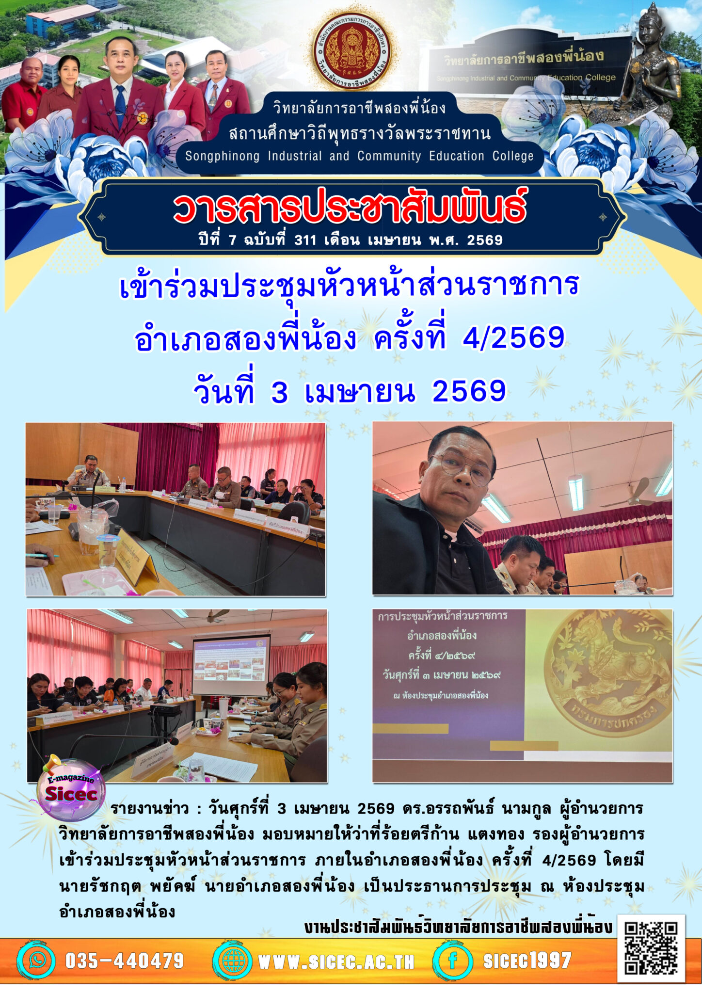 ฉบับที่ 311 เข้าร่วมประชุมหัวหน้าส่วนราชการอำเภอสองพี่น้อง ครั้งที่ 4/2569 3 เมษายน 25693 เมษายน 2026 information center จดหมายข่าว information center
