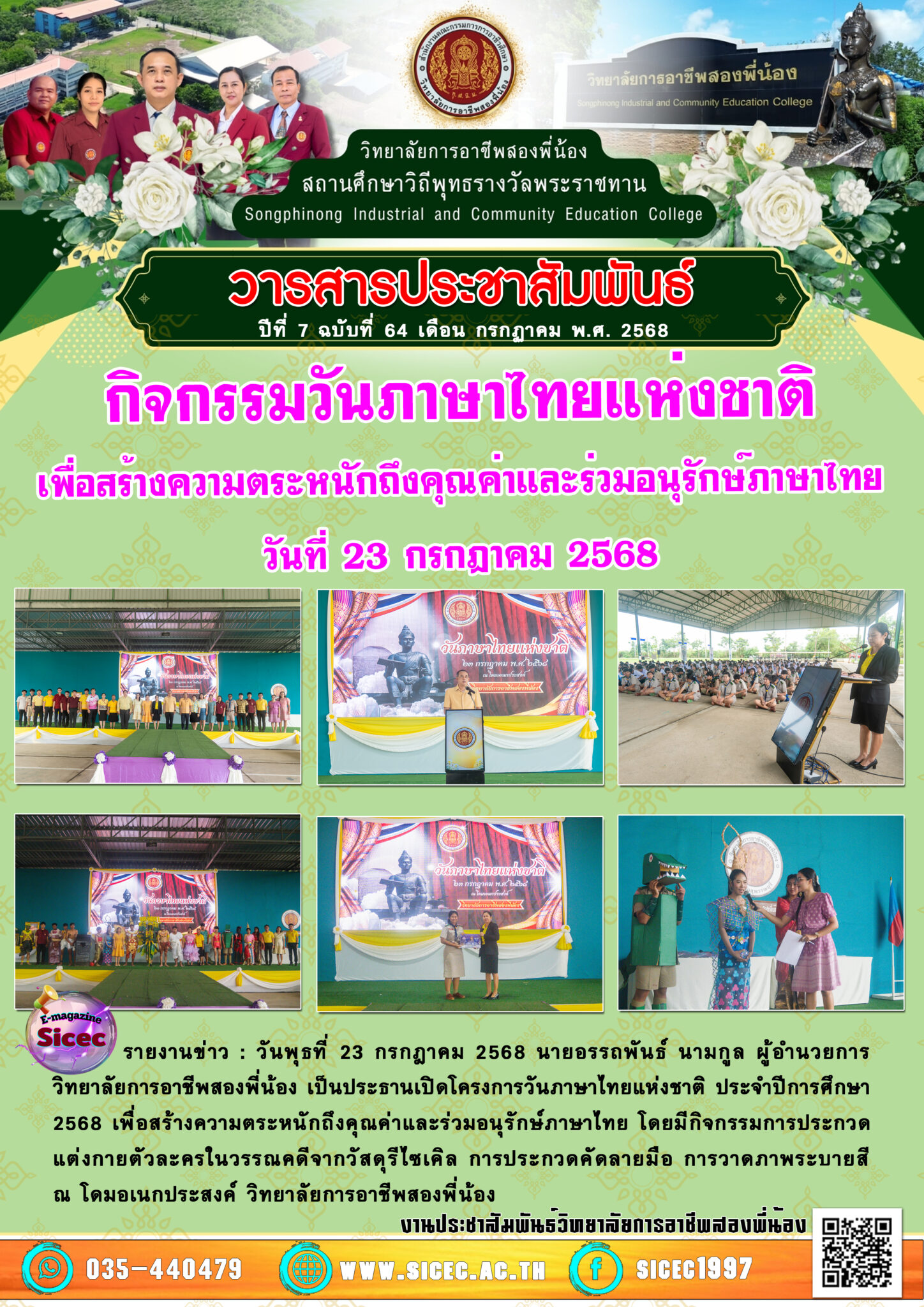 ฉบับที่ 64 กิจกรรมวันภาษาไทยแห่งชาติเพื่อสร้างความตระหนักถึงคุณค่าและร่วมอนุรักษ์ภาษาไทย 20 สิงหาคม 256820 สิงหาคม 2025 นายอนุสรณ์ วงษ์ประเสริฐ จดหมายข่าว นายอนุสรณ์ วงษ์ประเสริฐ