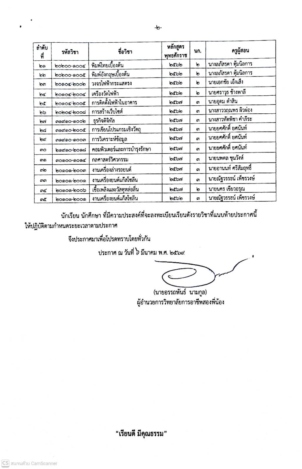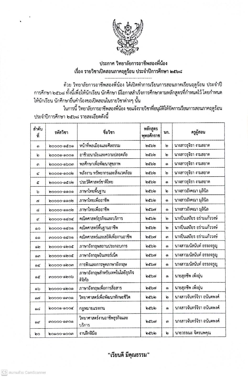 ประกาศวิทยาลัยการอาชีพสองพี่น้อง เรื่อง รายวิชาเปิดสอนภาคฤดูร้อน ประจำปีการศึกษา 2568 6 มีนาคม 25696 มีนาคม 2026 นายอนุสรณ์ วงษ์ประเสริฐ ประกาศข่าวสาร นายอนุสรณ์ วงษ์ประเสริฐ