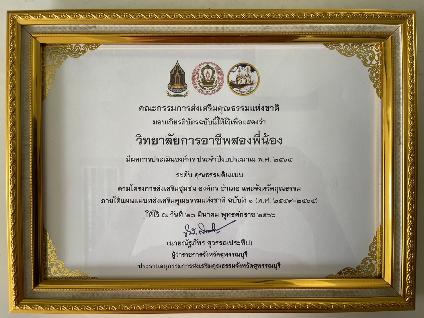 รางวัลต้นกล้าแห่งความดี วิทยาลัยการอาชีพสองพี่น้อง
