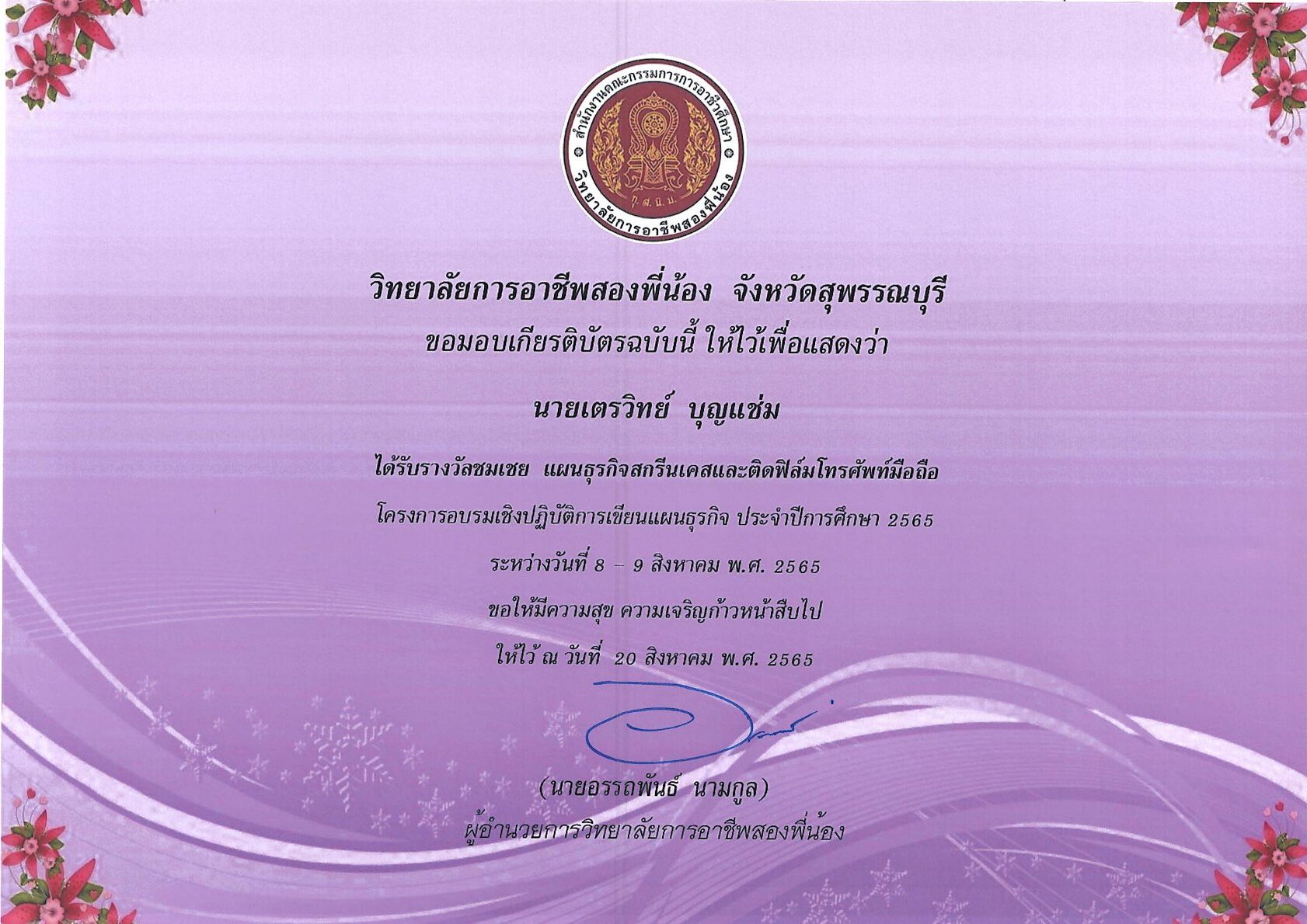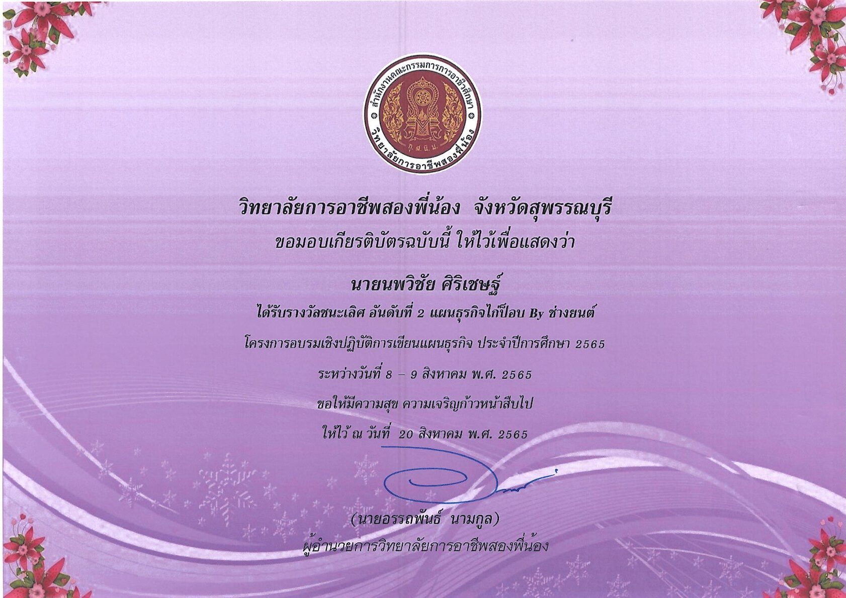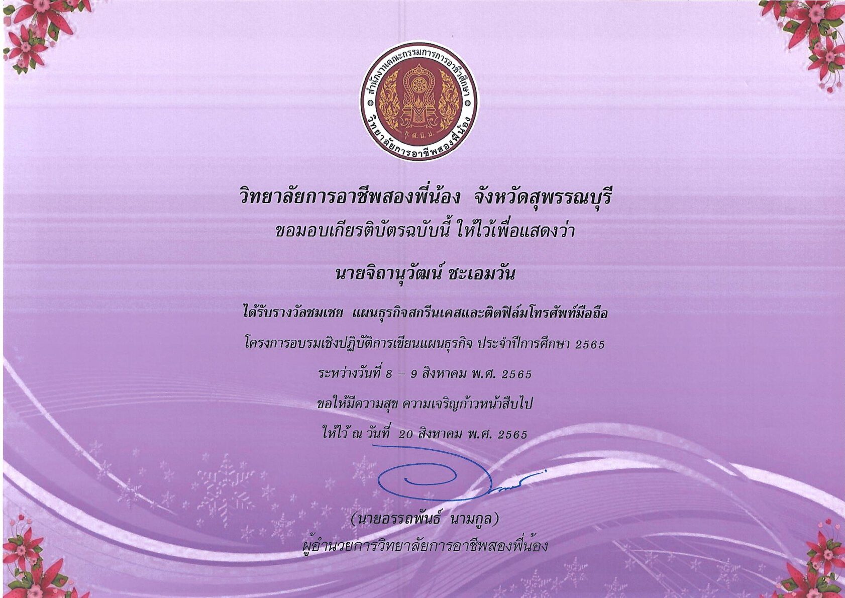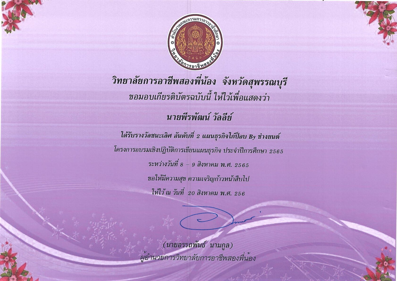 รางวัลการเขียนแผนธุรกิจ ระดับสถานศึกษา 10 กุมภาพันธ์ 256911 กุมภาพันธ์ 2026 นายอนุสรณ์ วงษ์ประเสริฐ ไม่มีหมวดหมู่ นายอนุสรณ์ วงษ์ประเสริฐ