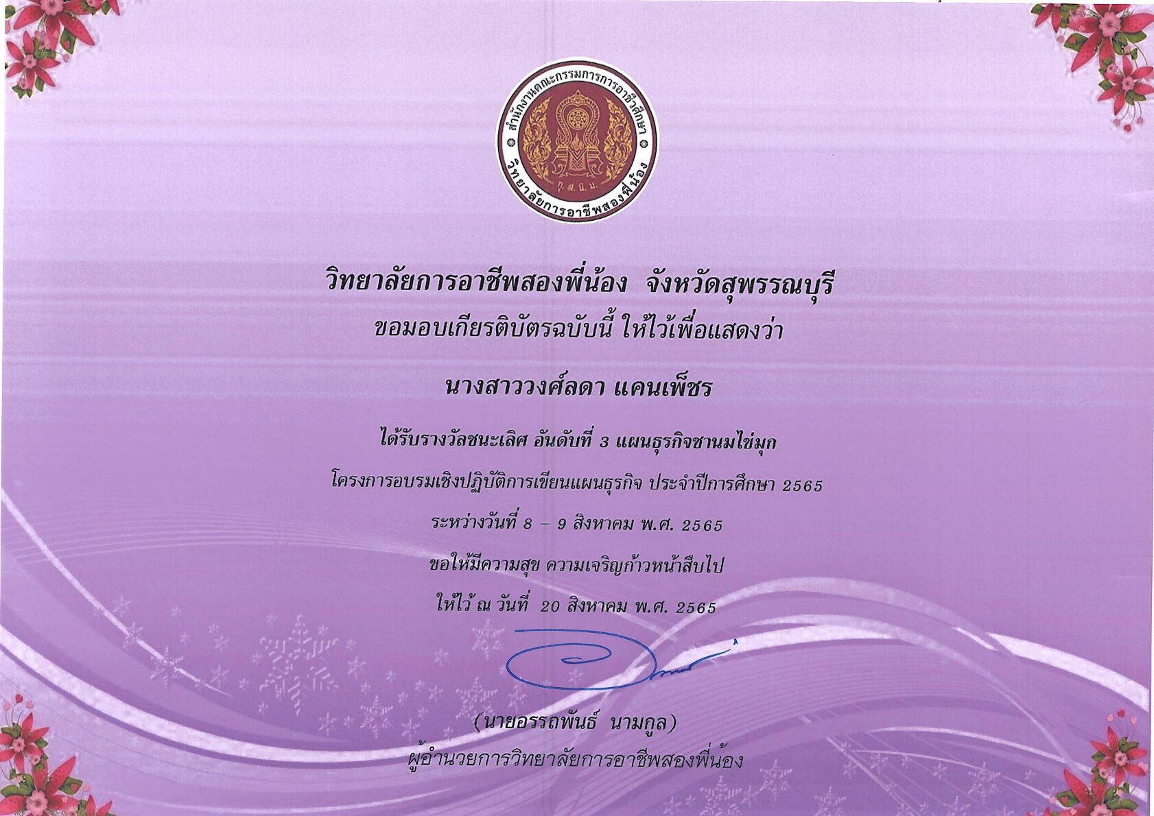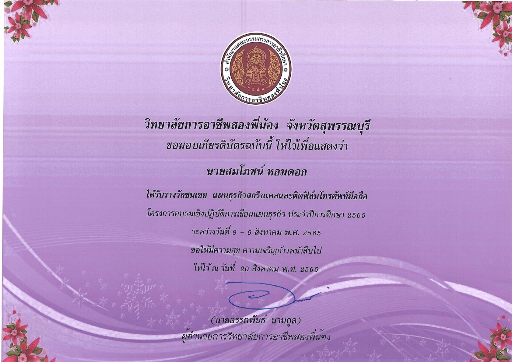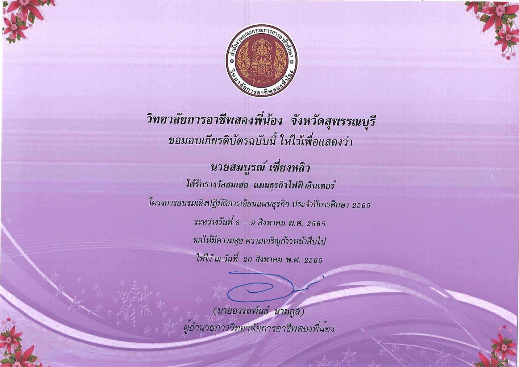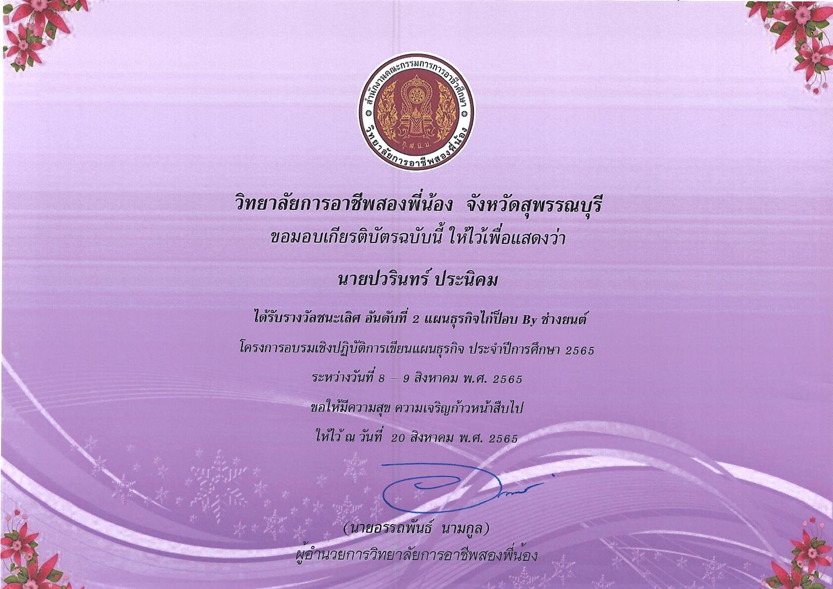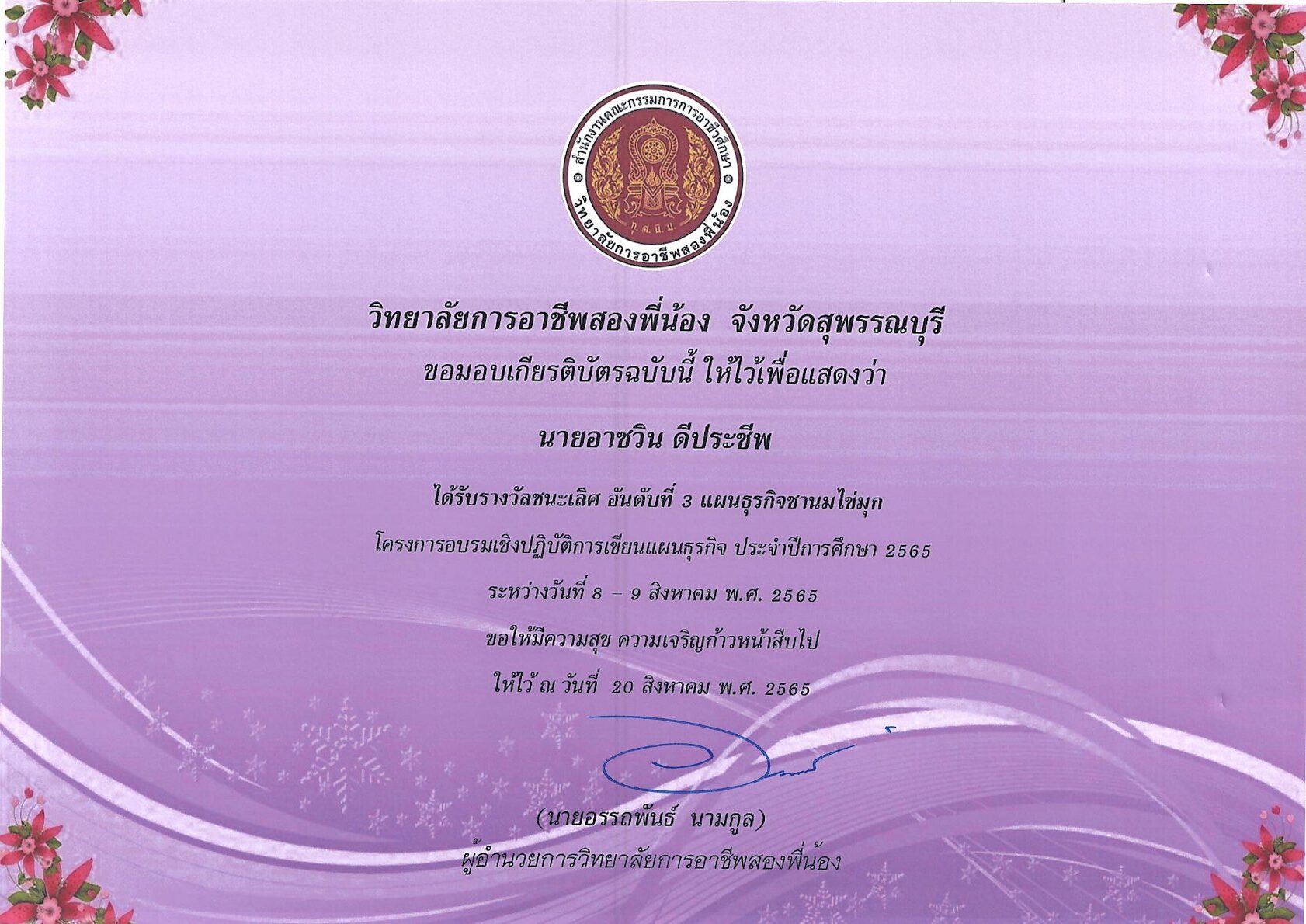 รางวัลการเขียนแผนธุรกิจ ระดับสถานศึกษา 10 กุมภาพันธ์ 256911 กุมภาพันธ์ 2026 นายอนุสรณ์ วงษ์ประเสริฐ ไม่มีหมวดหมู่ นายอนุสรณ์ วงษ์ประเสริฐ