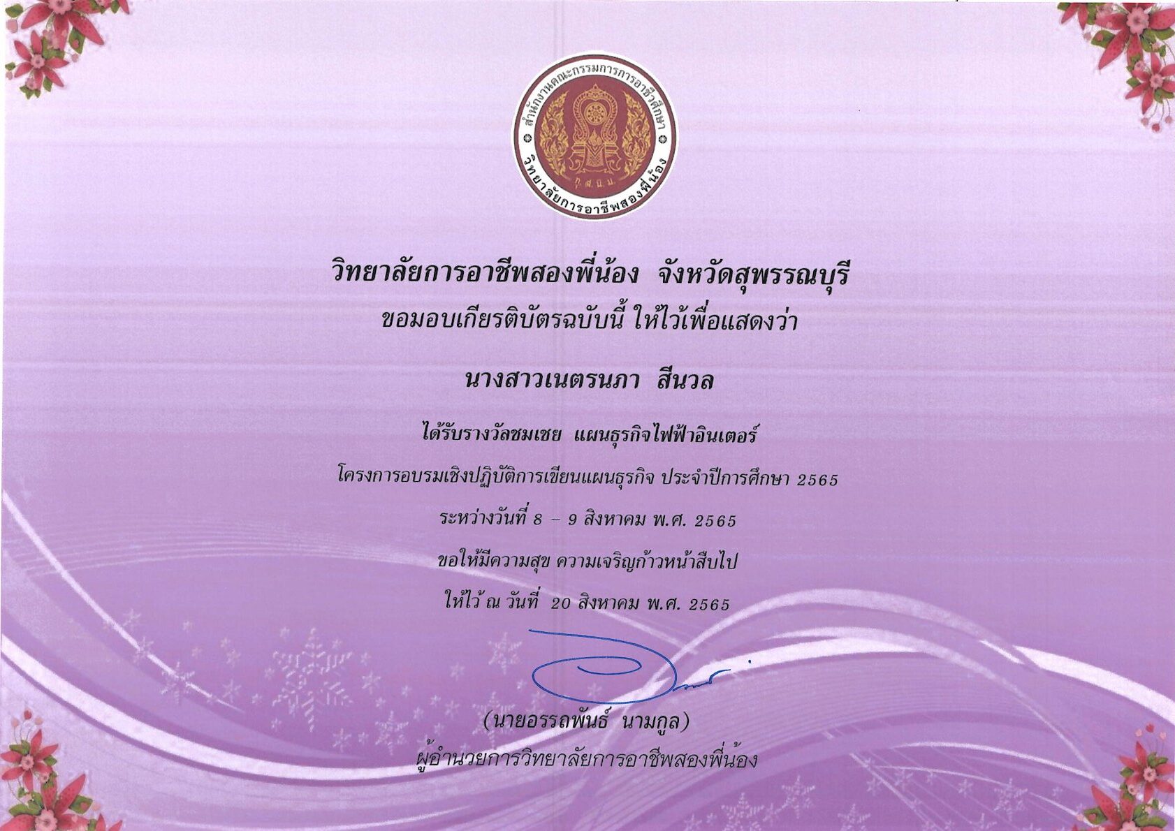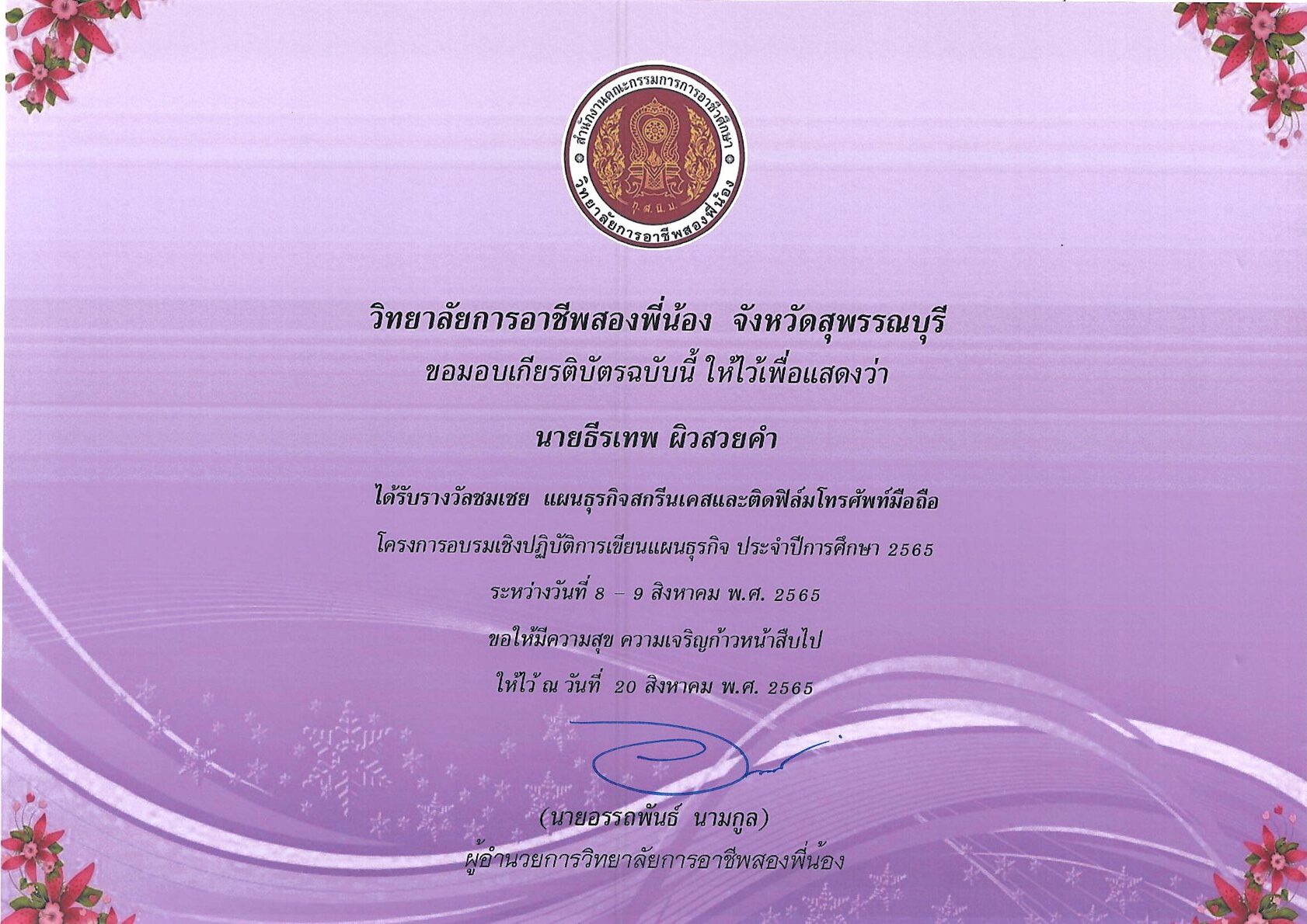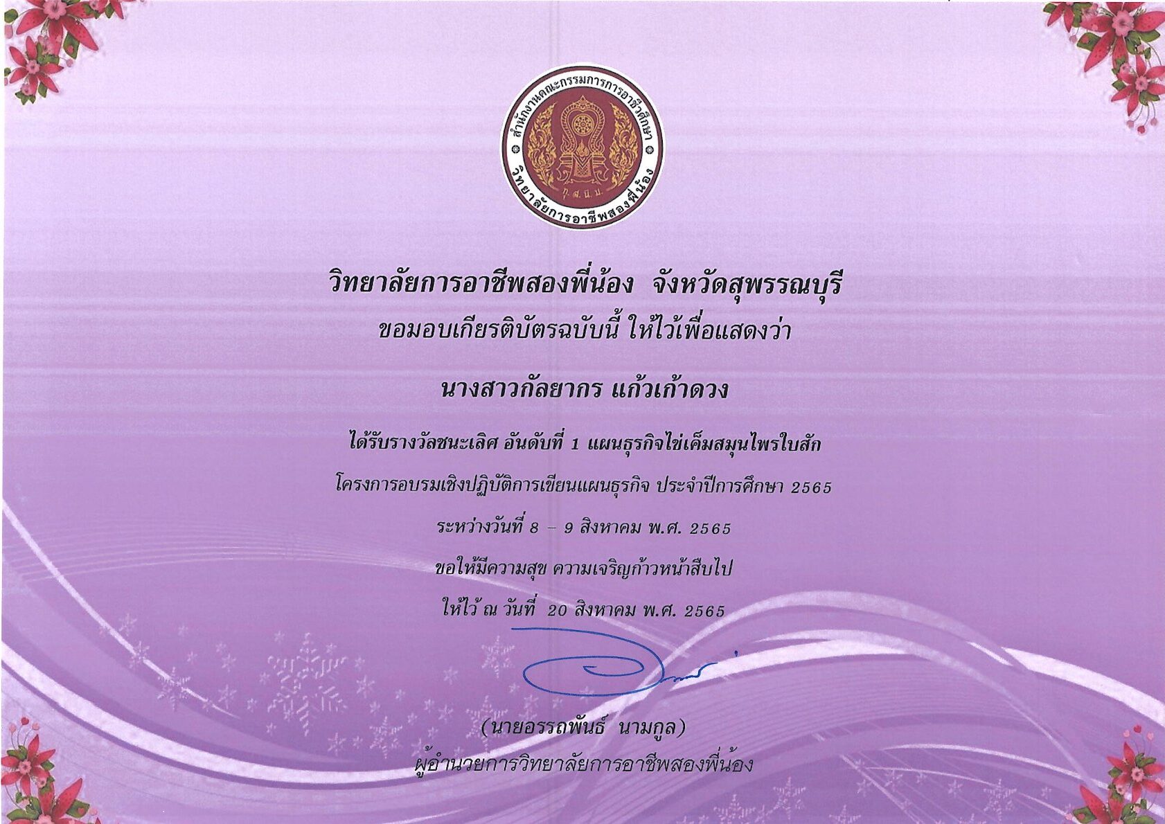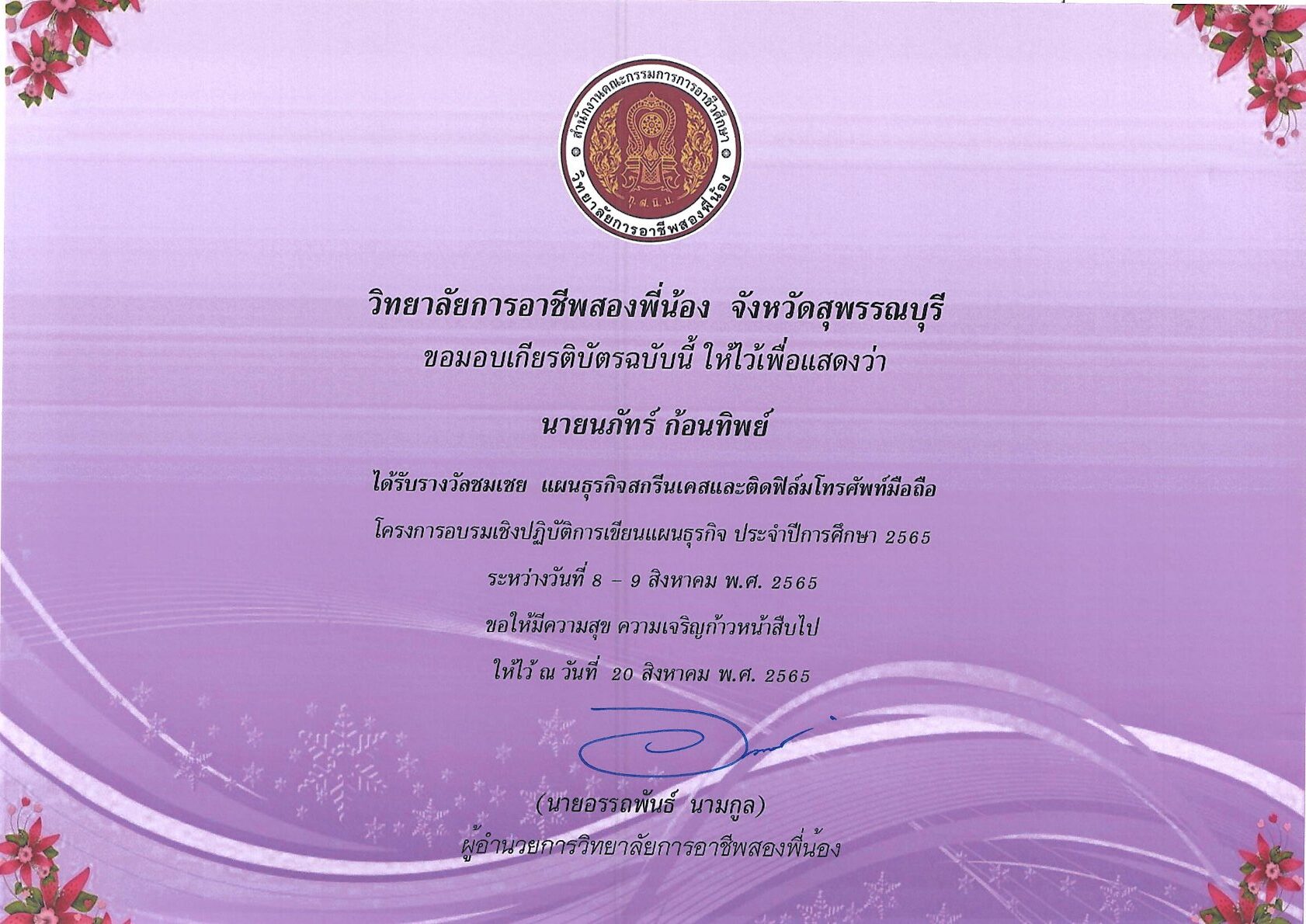 รางวัลการเขียนแผนธุรกิจ ระดับสถานศึกษา 10 กุมภาพันธ์ 256911 กุมภาพันธ์ 2026 นายอนุสรณ์ วงษ์ประเสริฐ ไม่มีหมวดหมู่ นายอนุสรณ์ วงษ์ประเสริฐ