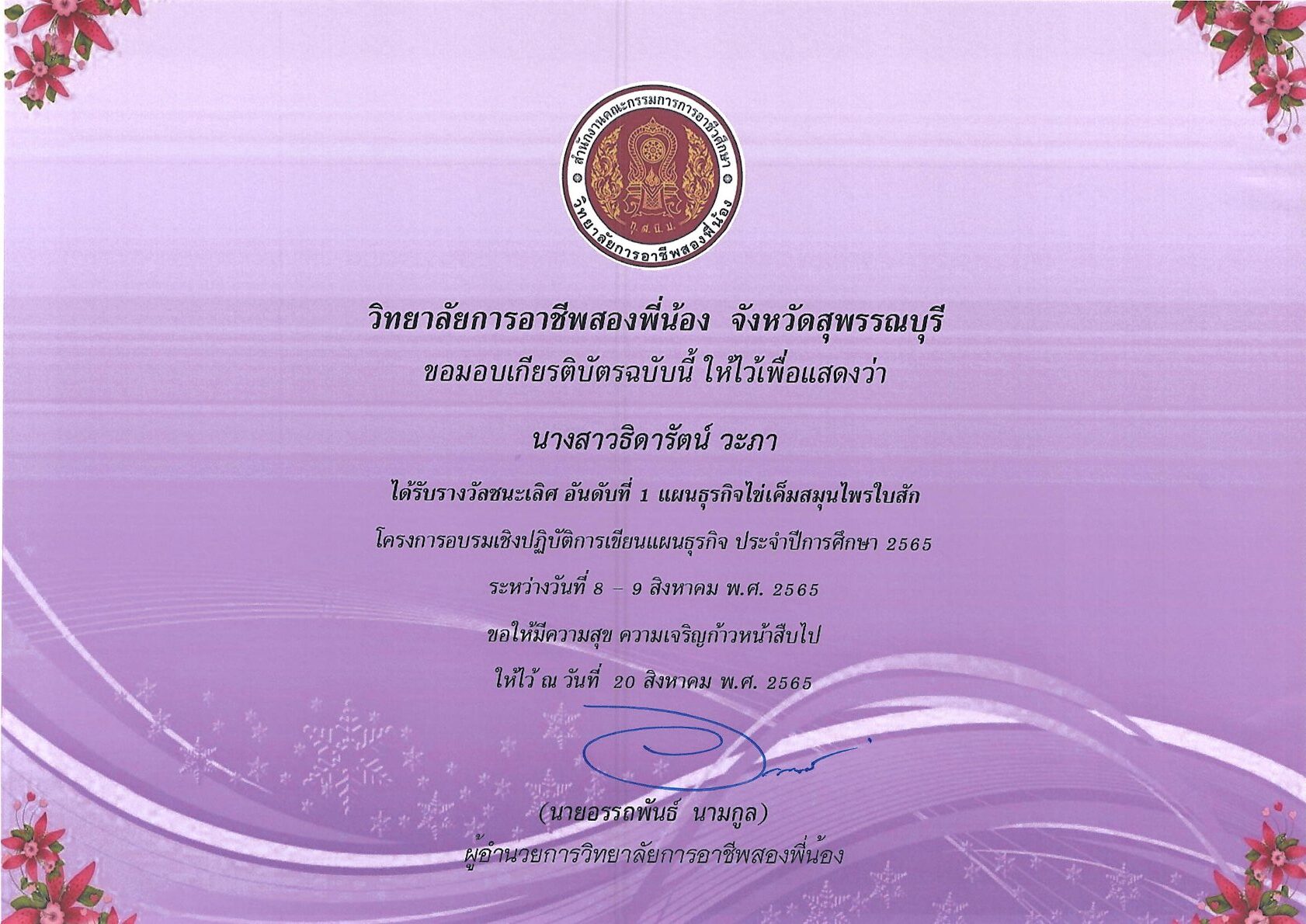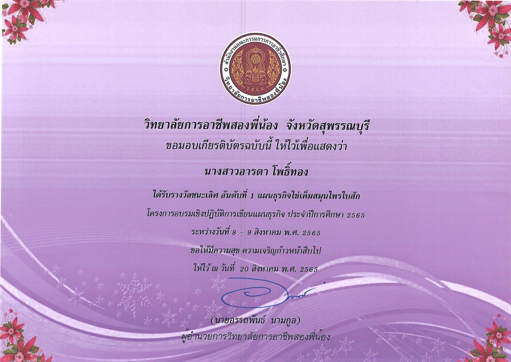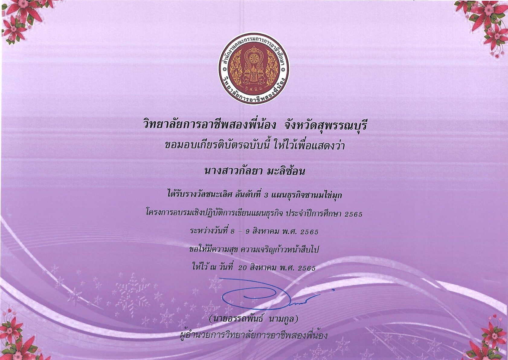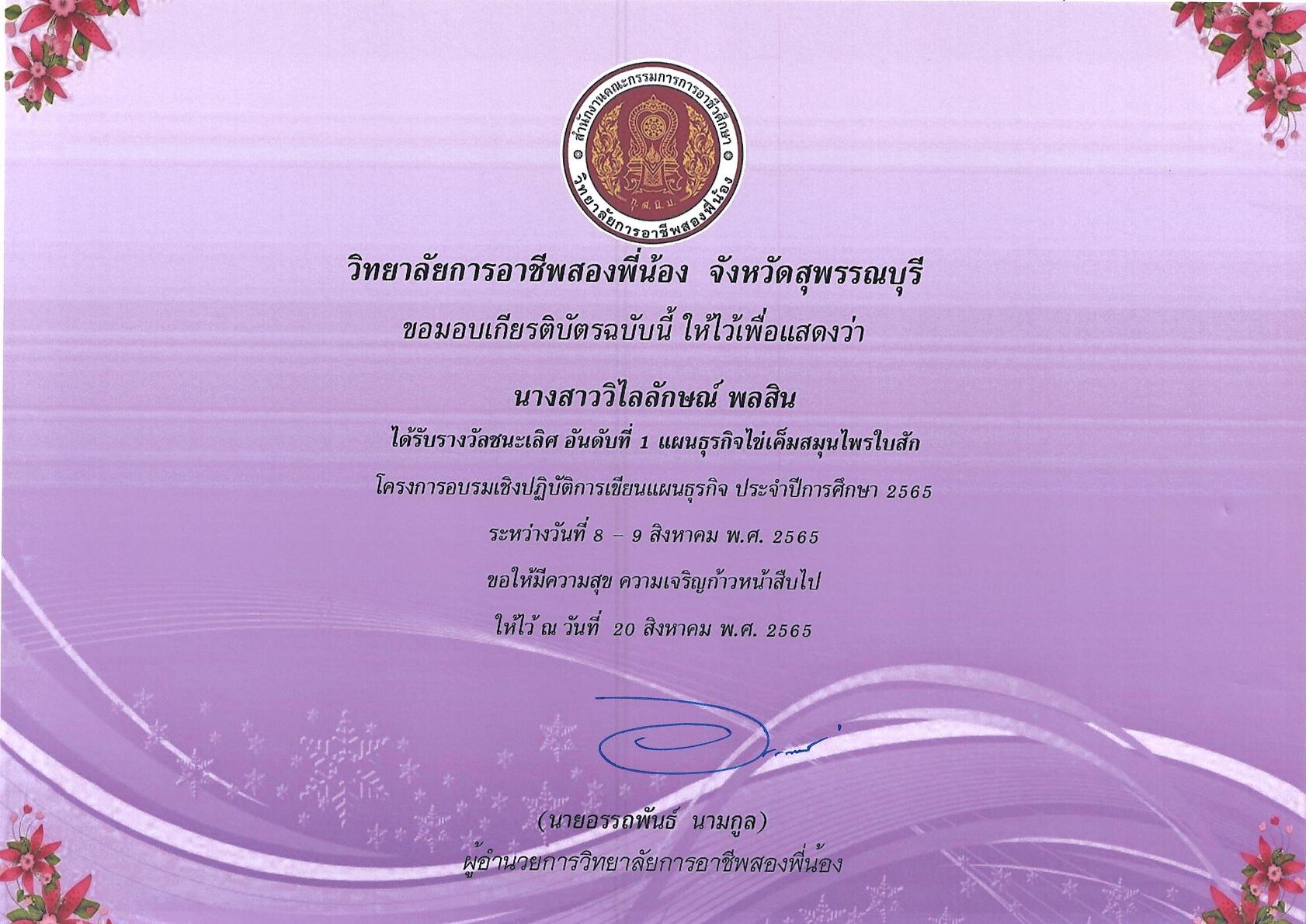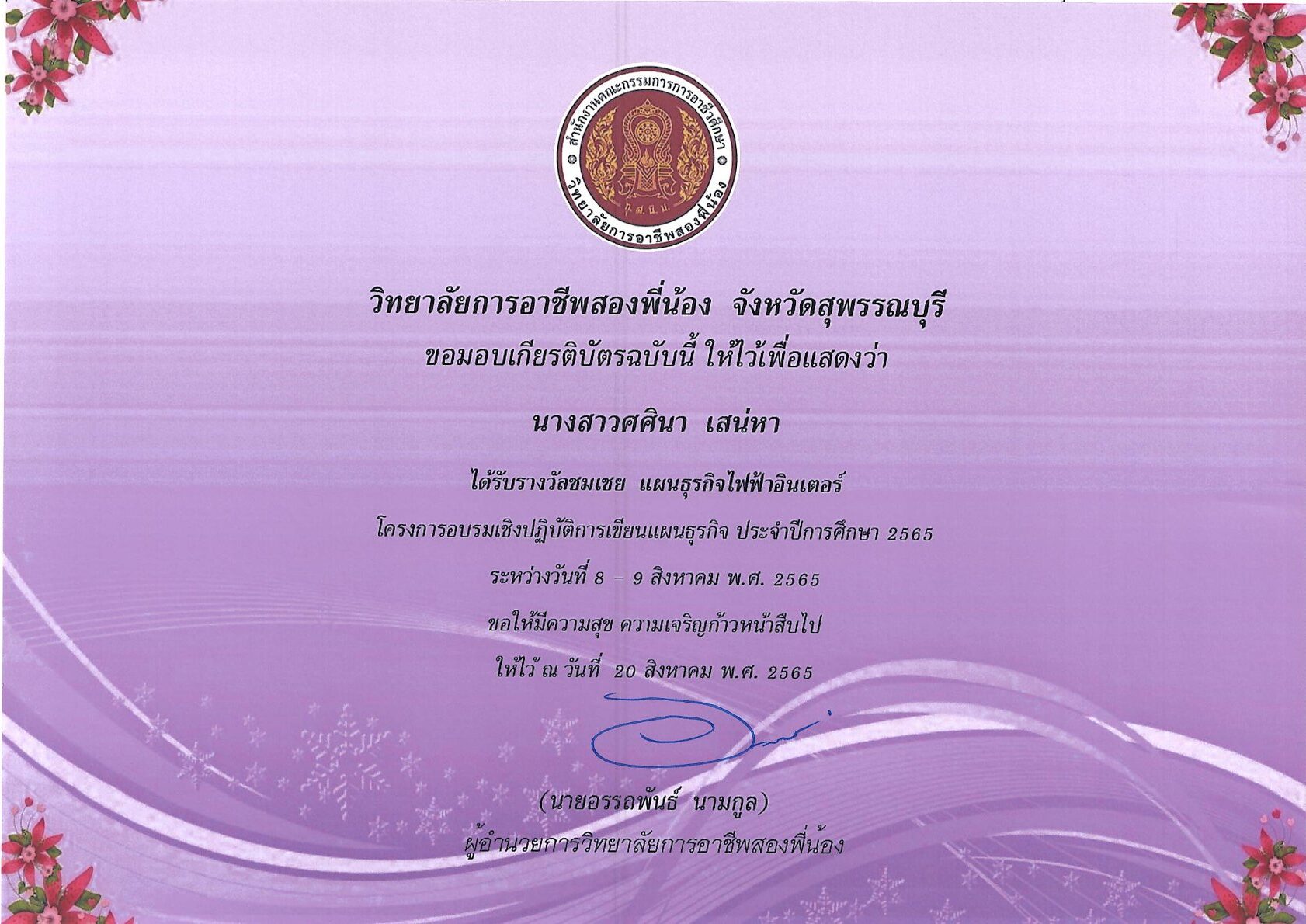 รางวัลการเขียนแผนธุรกิจ ระดับสถานศึกษา 10 กุมภาพันธ์ 256911 กุมภาพันธ์ 2026 นายอนุสรณ์ วงษ์ประเสริฐ ไม่มีหมวดหมู่ นายอนุสรณ์ วงษ์ประเสริฐ