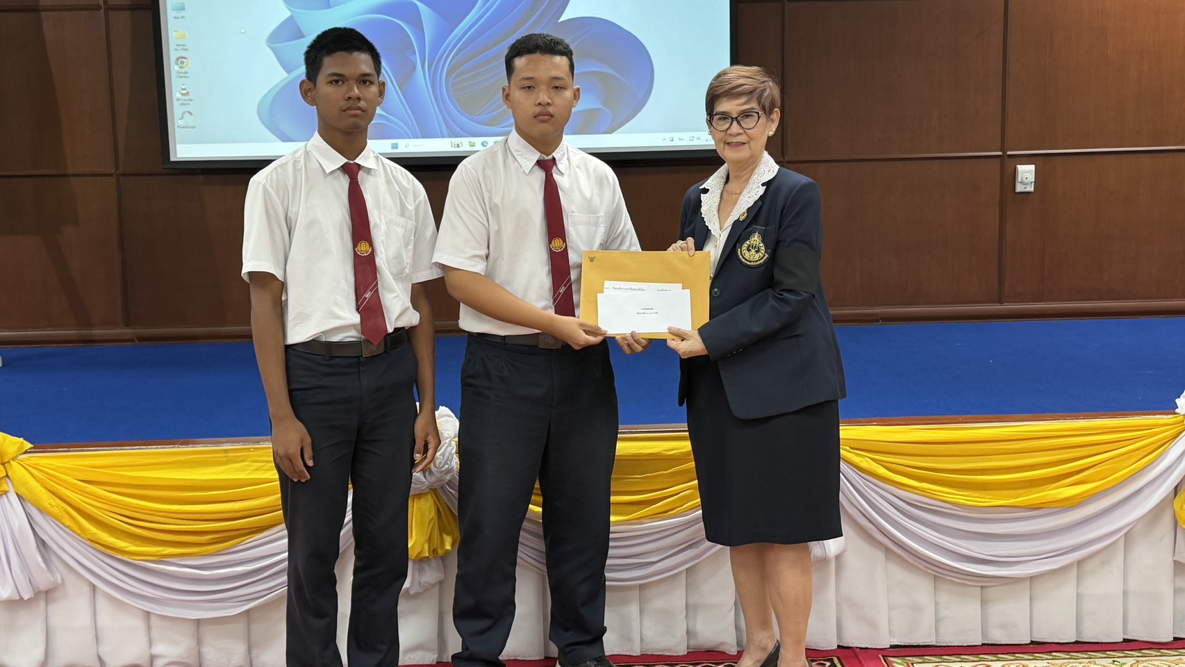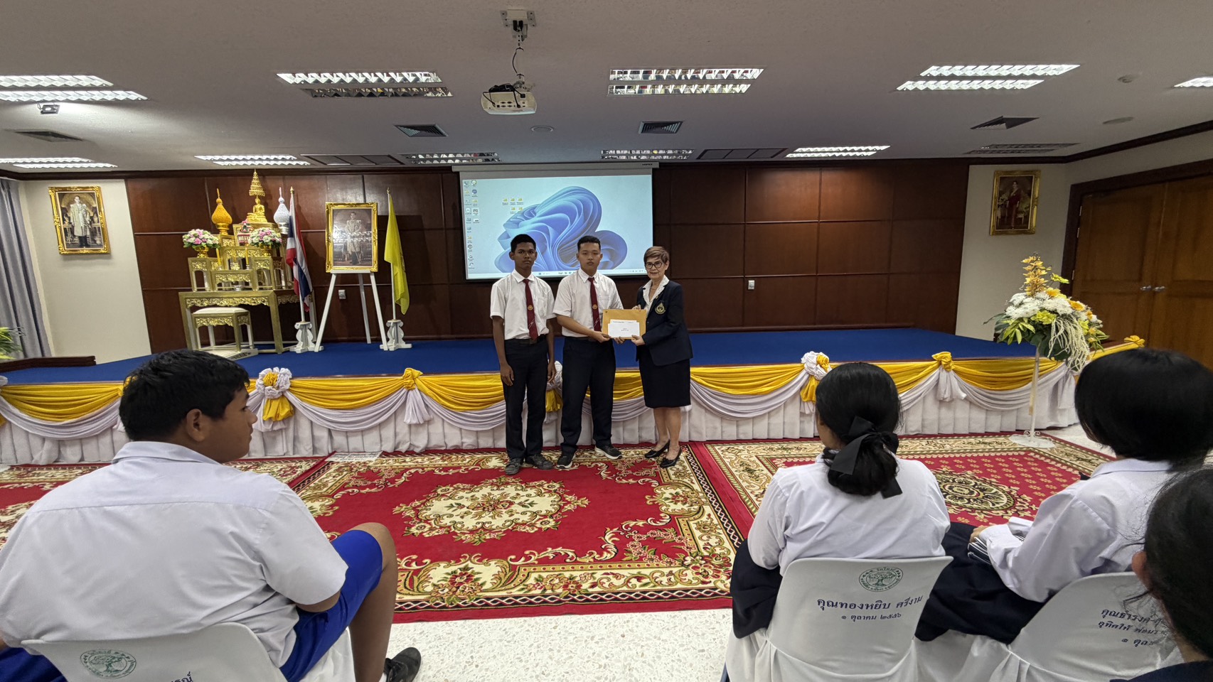 มอบหมายให้นายยศศักดิ์ ยศนันท์ หัวหน้าแผนกคอมพิวเตอร์นำนักเรียน เข้าร่วมงานประกาศผลรางวัล