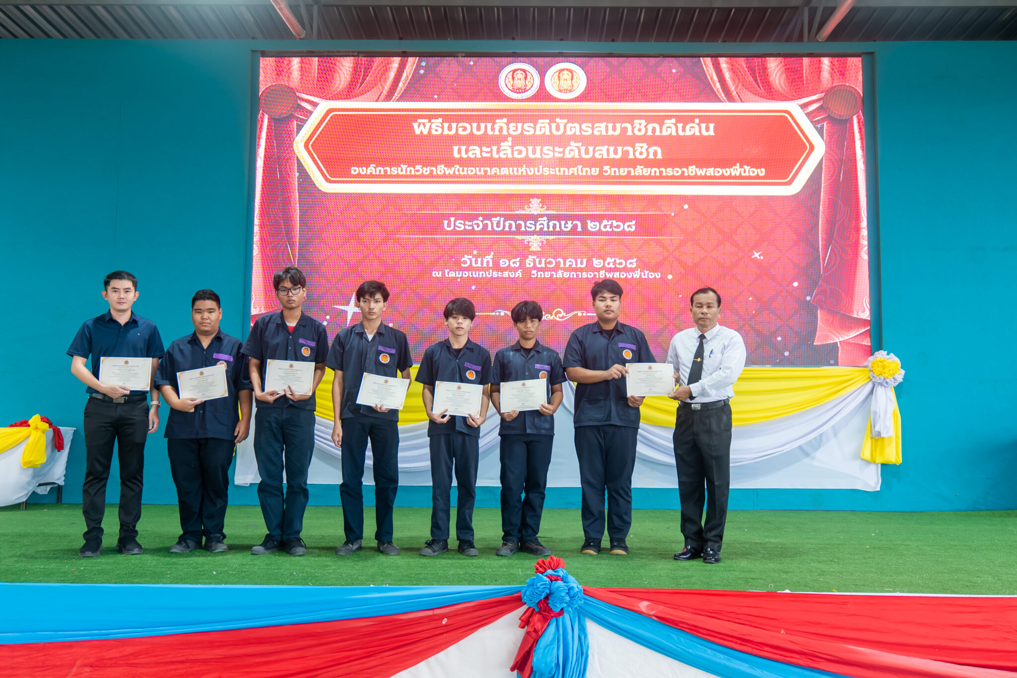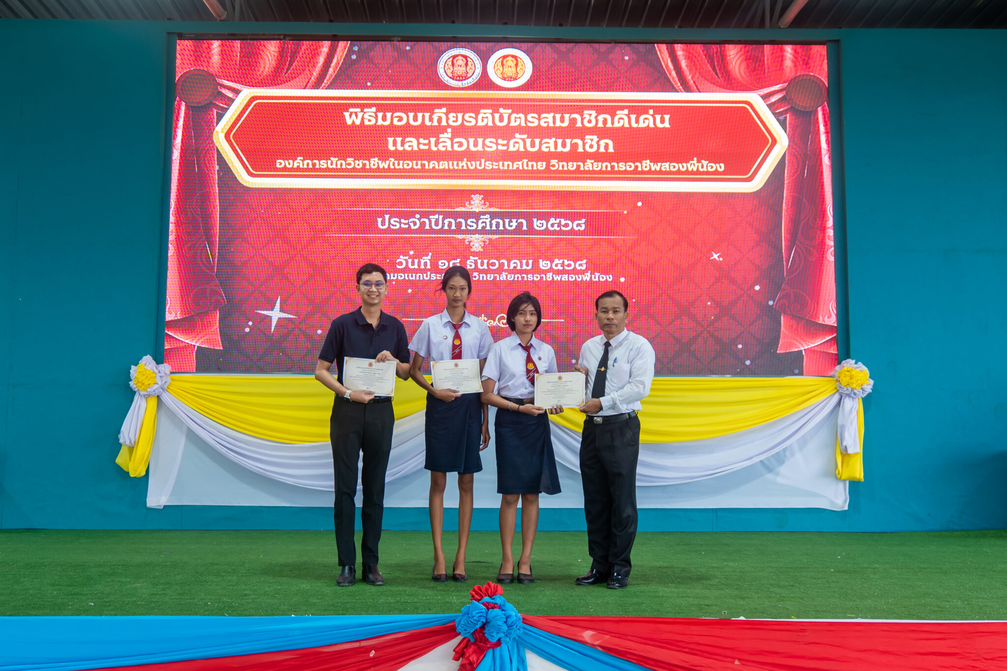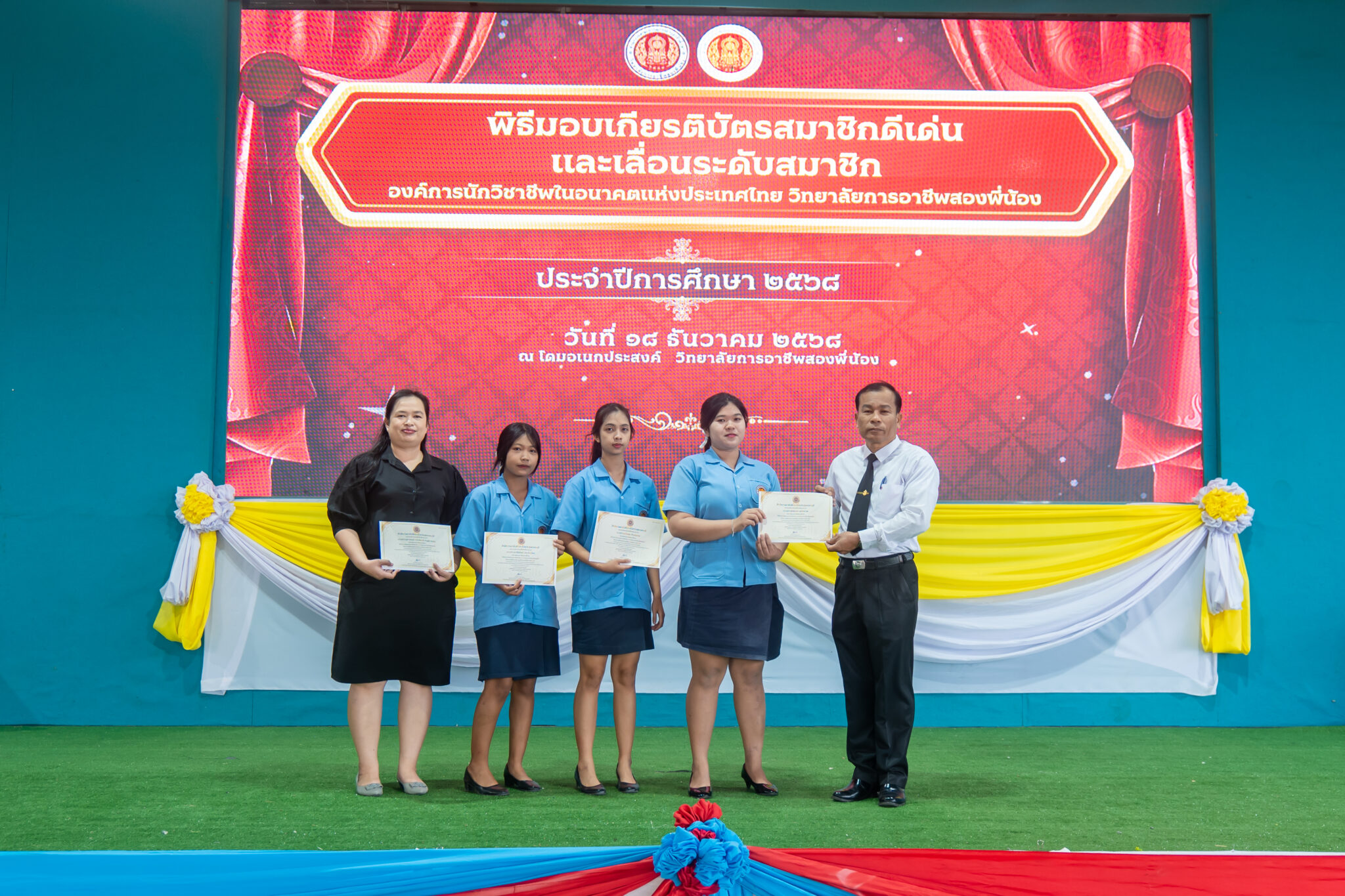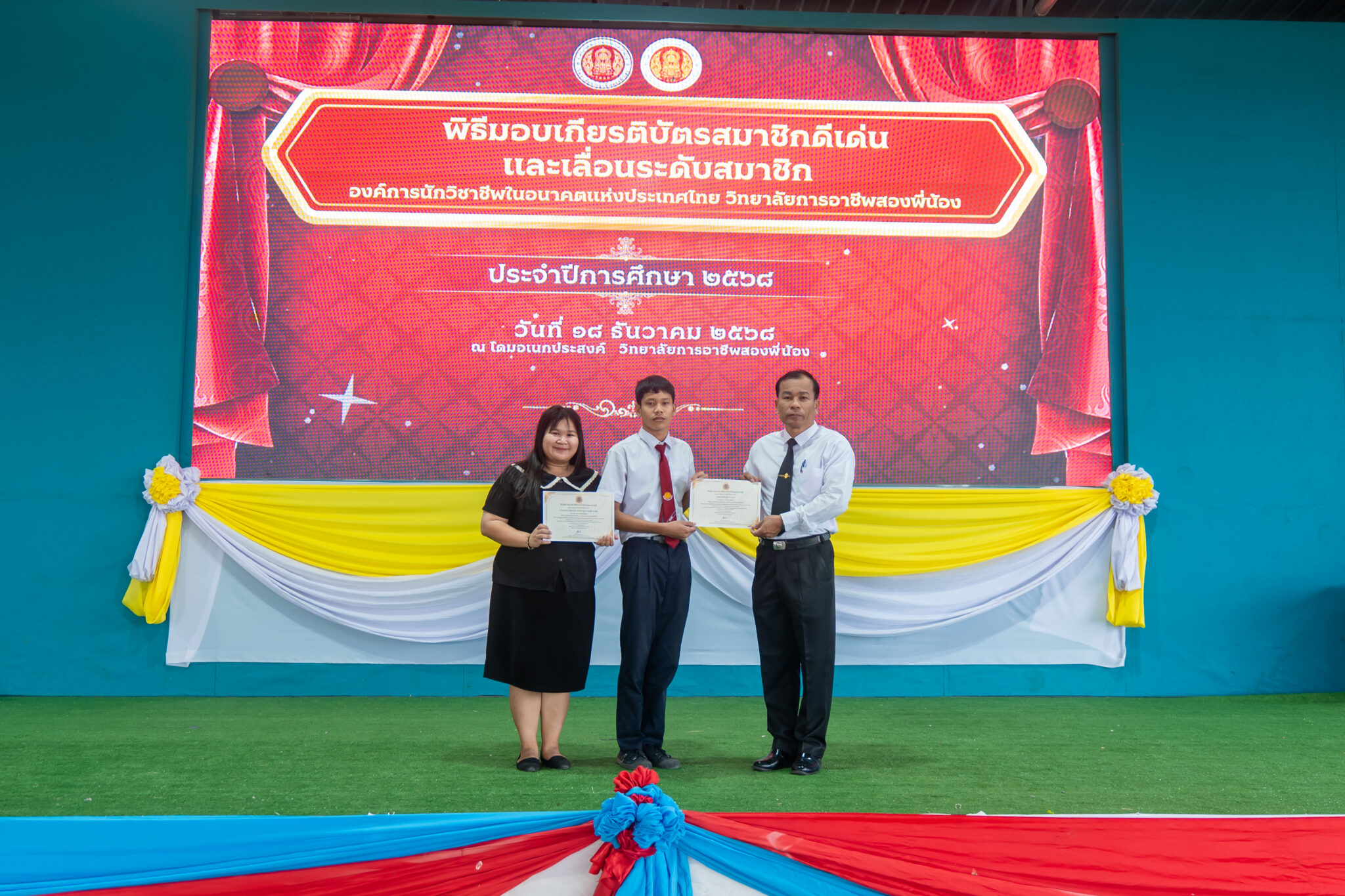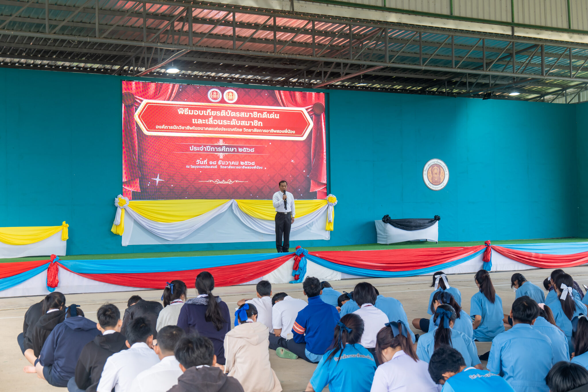และเลื่อนระดับสมาชิก องค์การนักวิชาชีพในอนาคตแห่งประเทศไทย โดยมีครูที่ปรึกษาและนักเรียนที่