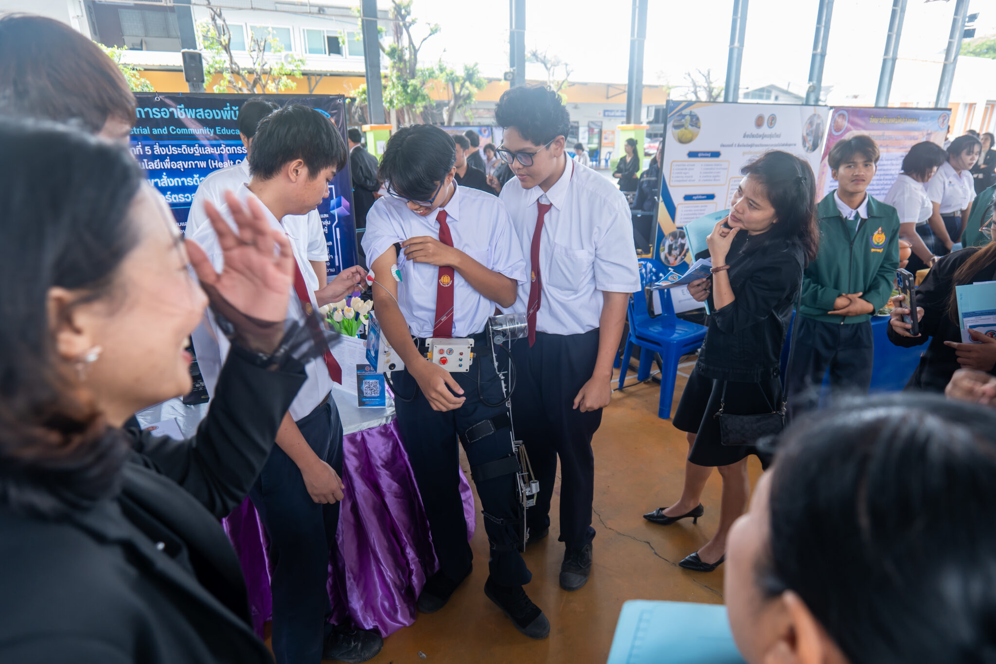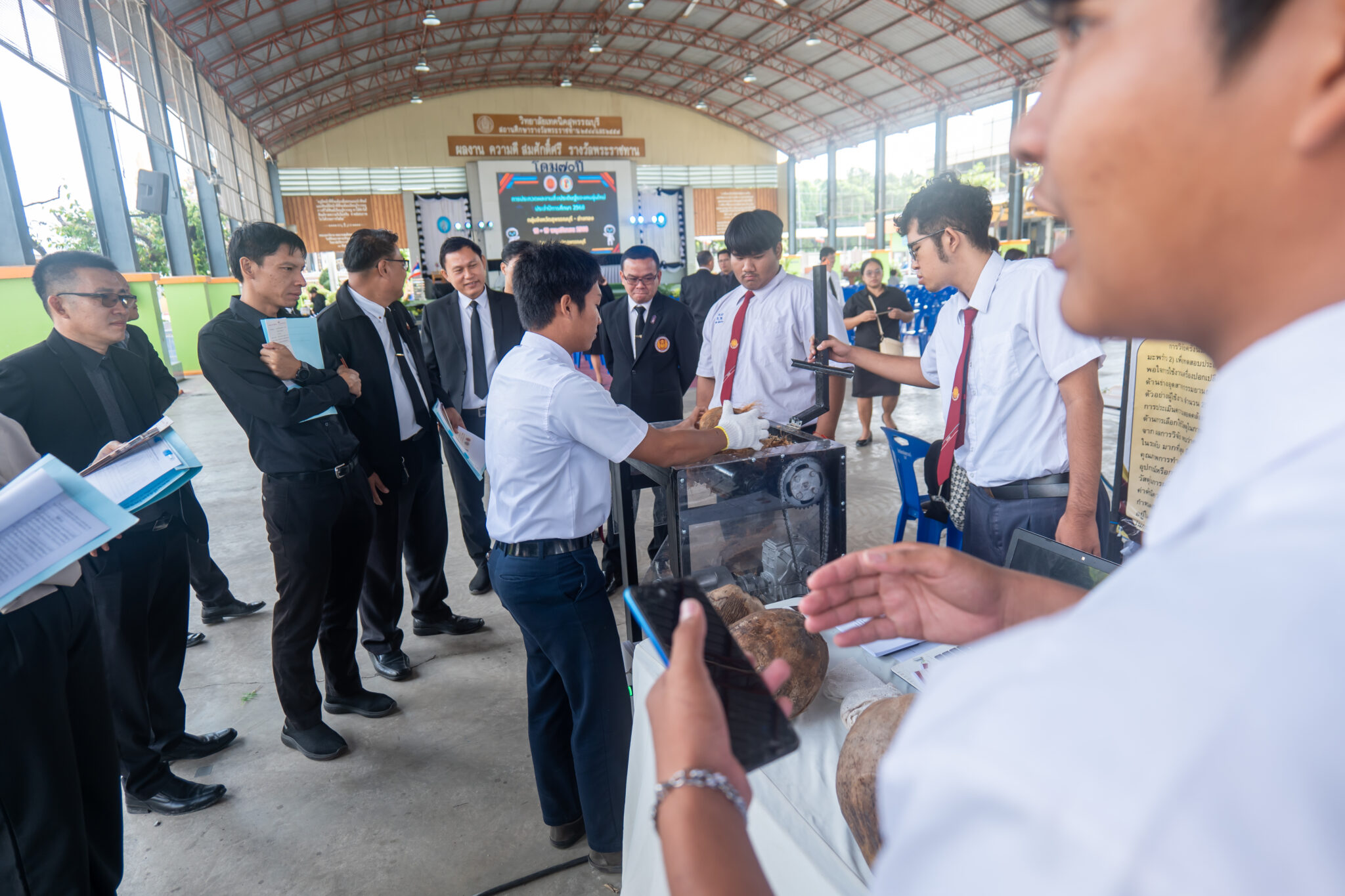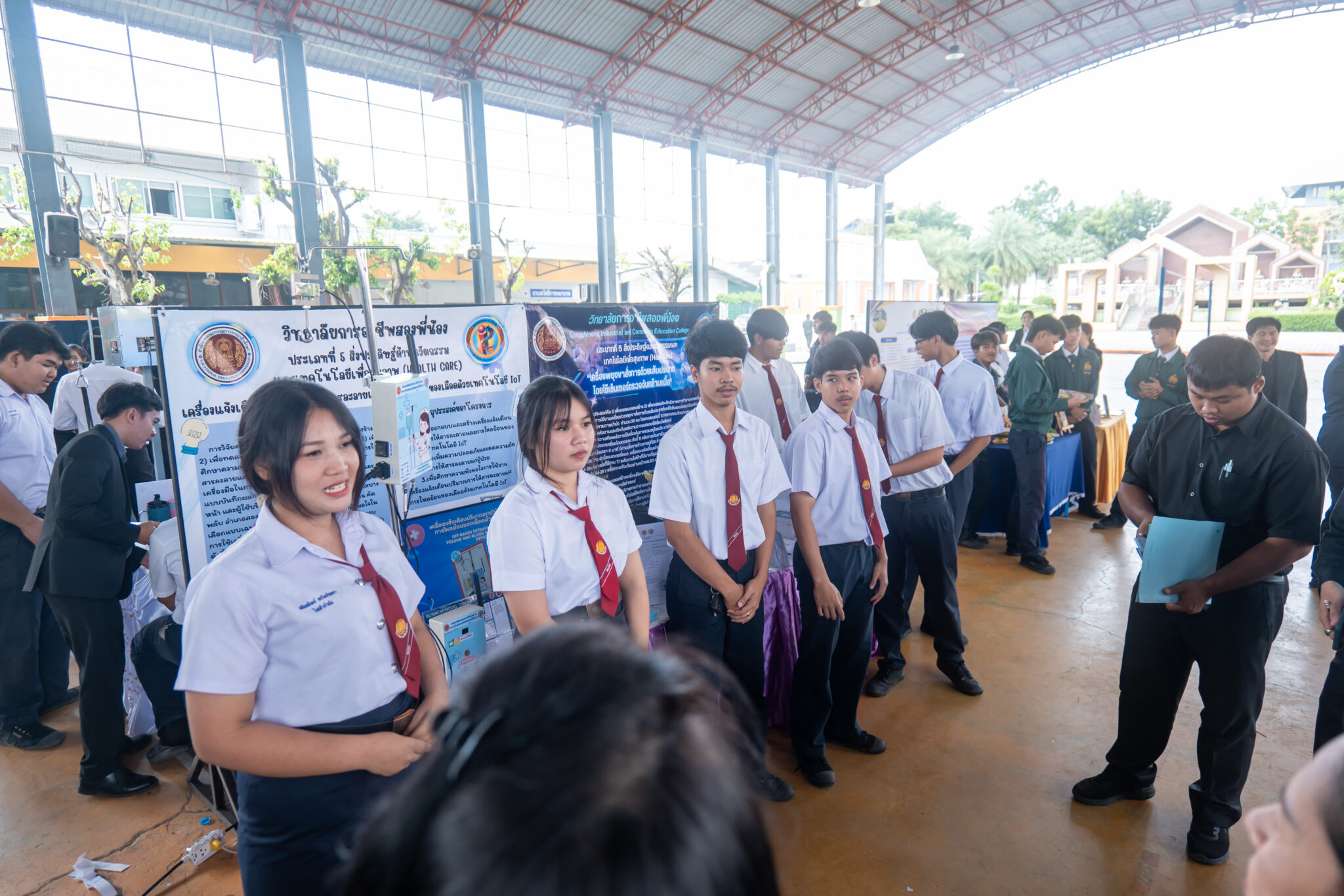 พร้อมด้วยคณะผู้บริหาร ครู นักเรียน เข้าร่วมพิธีเปิดการประกวดผลงานสิ่งประดิษฐ์ของคนรุ่นใหม่