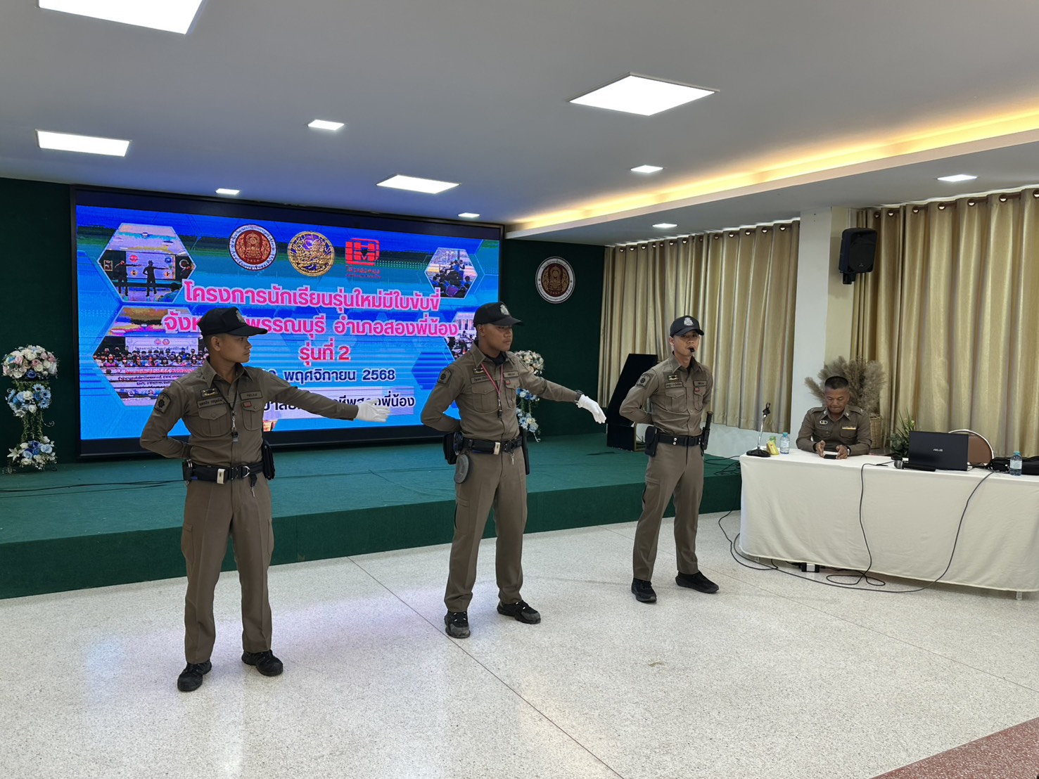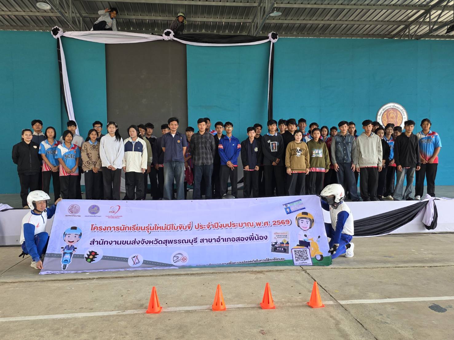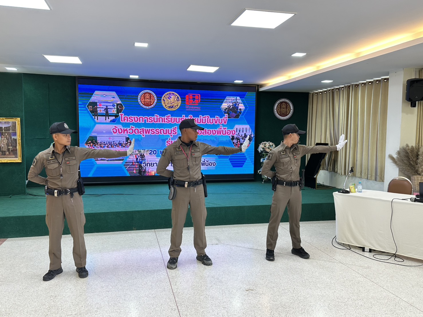 จำกัด และสภ.สองพี่น้อง ร่วมกันจัดโครงการขึ้นเพื่อให้นักเรียนได้เรียนรู้กฏหมายจราจร และมีใบขับขี่