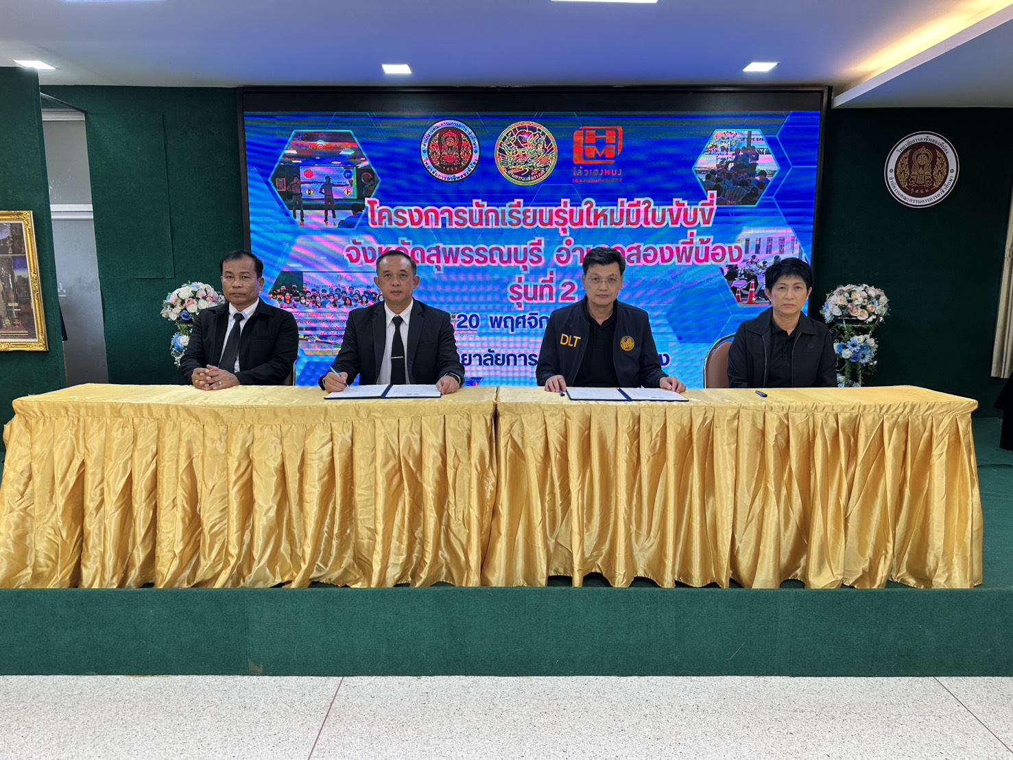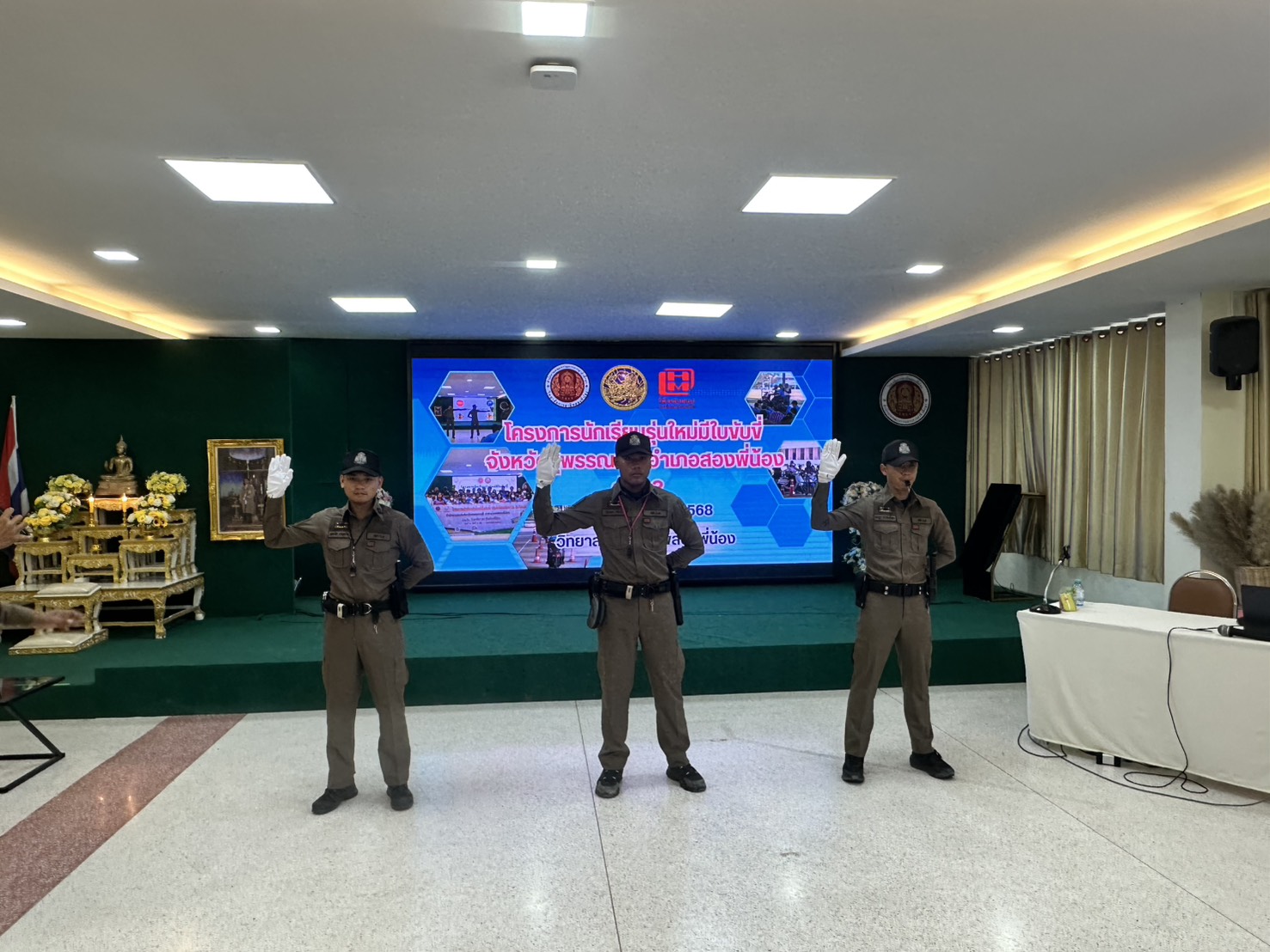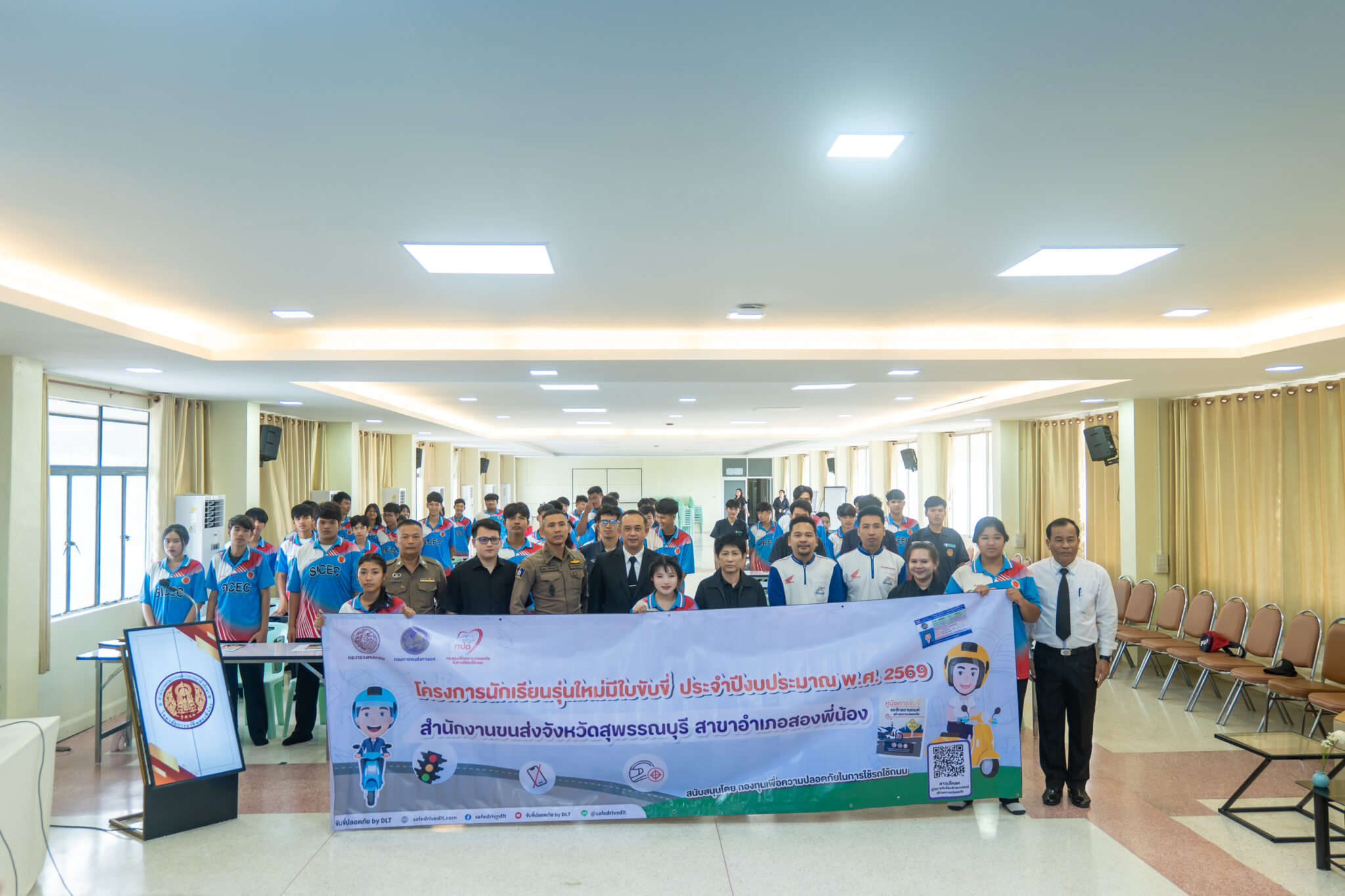 จำกัด และสภ.สองพี่น้อง ร่วมกันจัดโครงการขึ้นเพื่อให้นักเรียนได้เรียนรู้กฏหมายจราจร และมีใบขับขี่