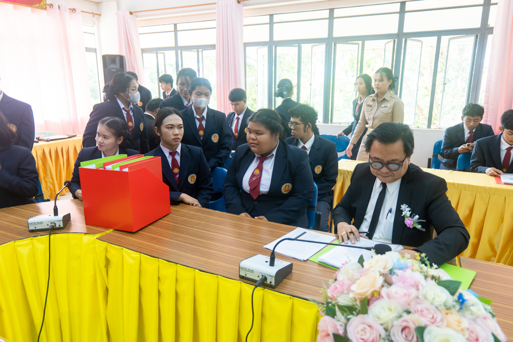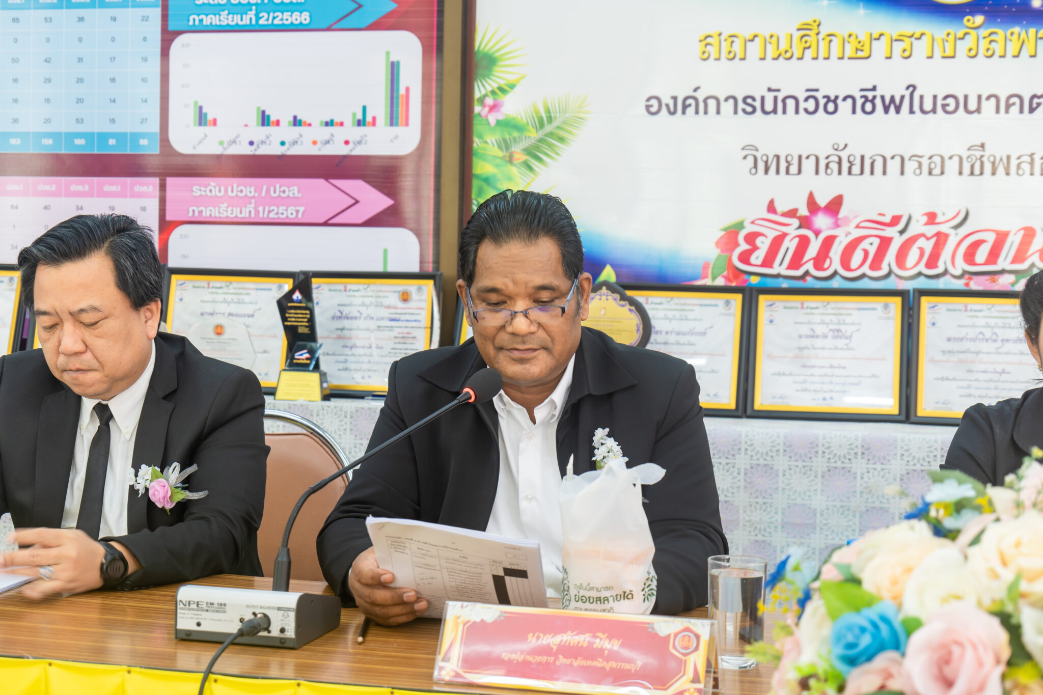พร้อมด้วยคณะผู้บริหาร ได้แก่ ว่าที่ร้อยตรี ก้าน แตงทอง นางเบ็ญจวรรณ์ บุญเสวตร รองผู้อำนวยการ