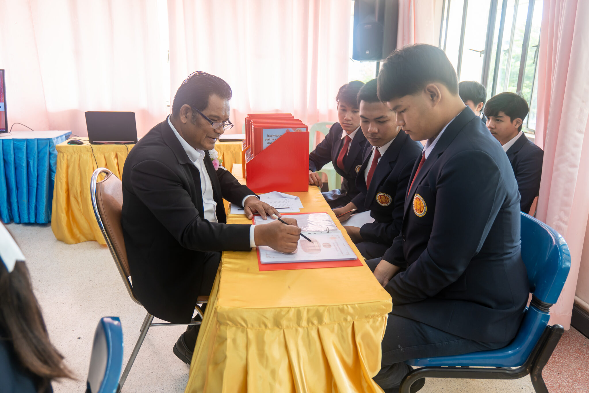 ประเมินดังกล่าวจัดขึ้น ณ ห้ององค์การนักวิชาชีพในอนาคตแห่งประเทศไทย วิทยาลัยการอาชีพสองพี่น้อง