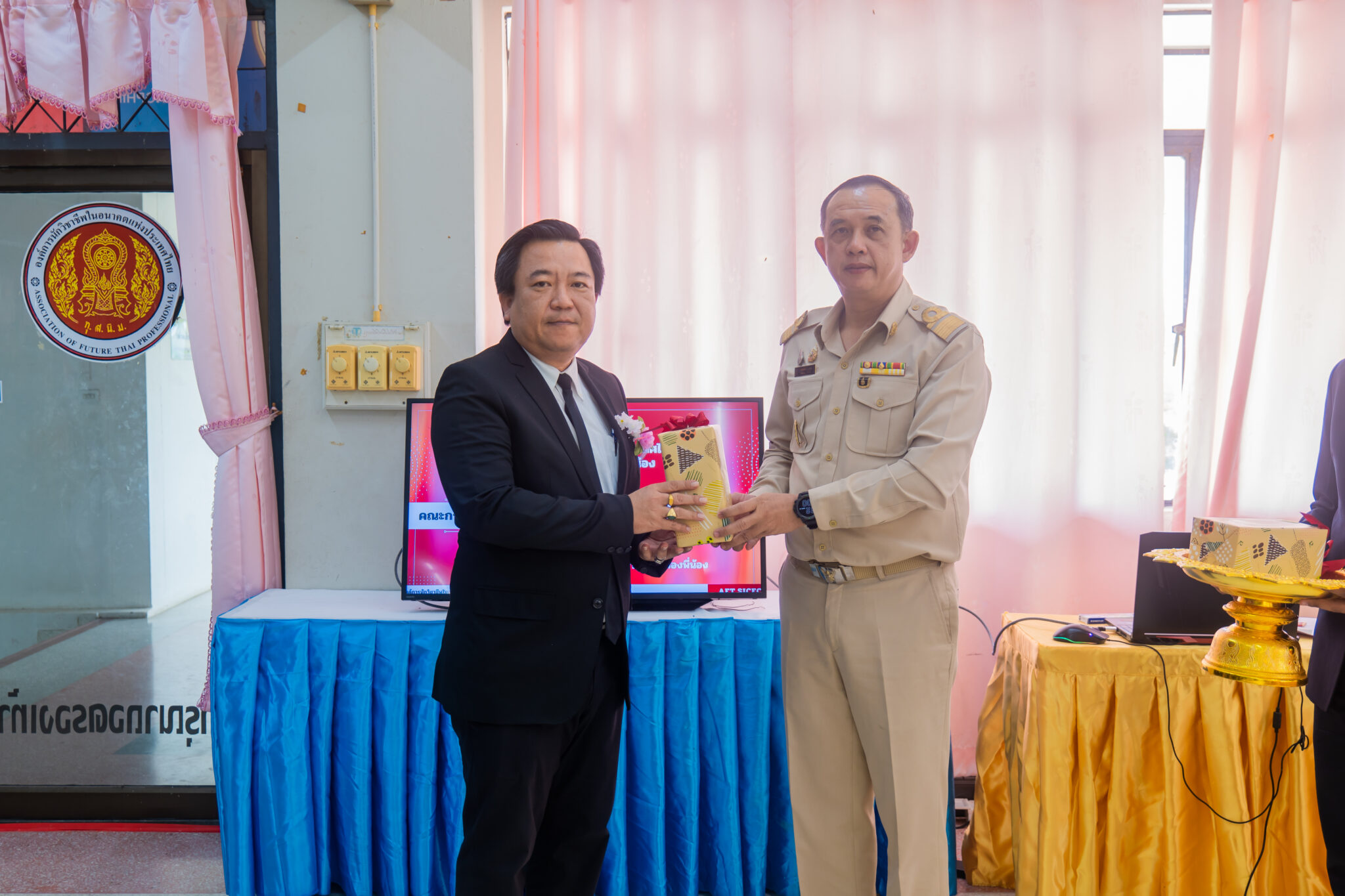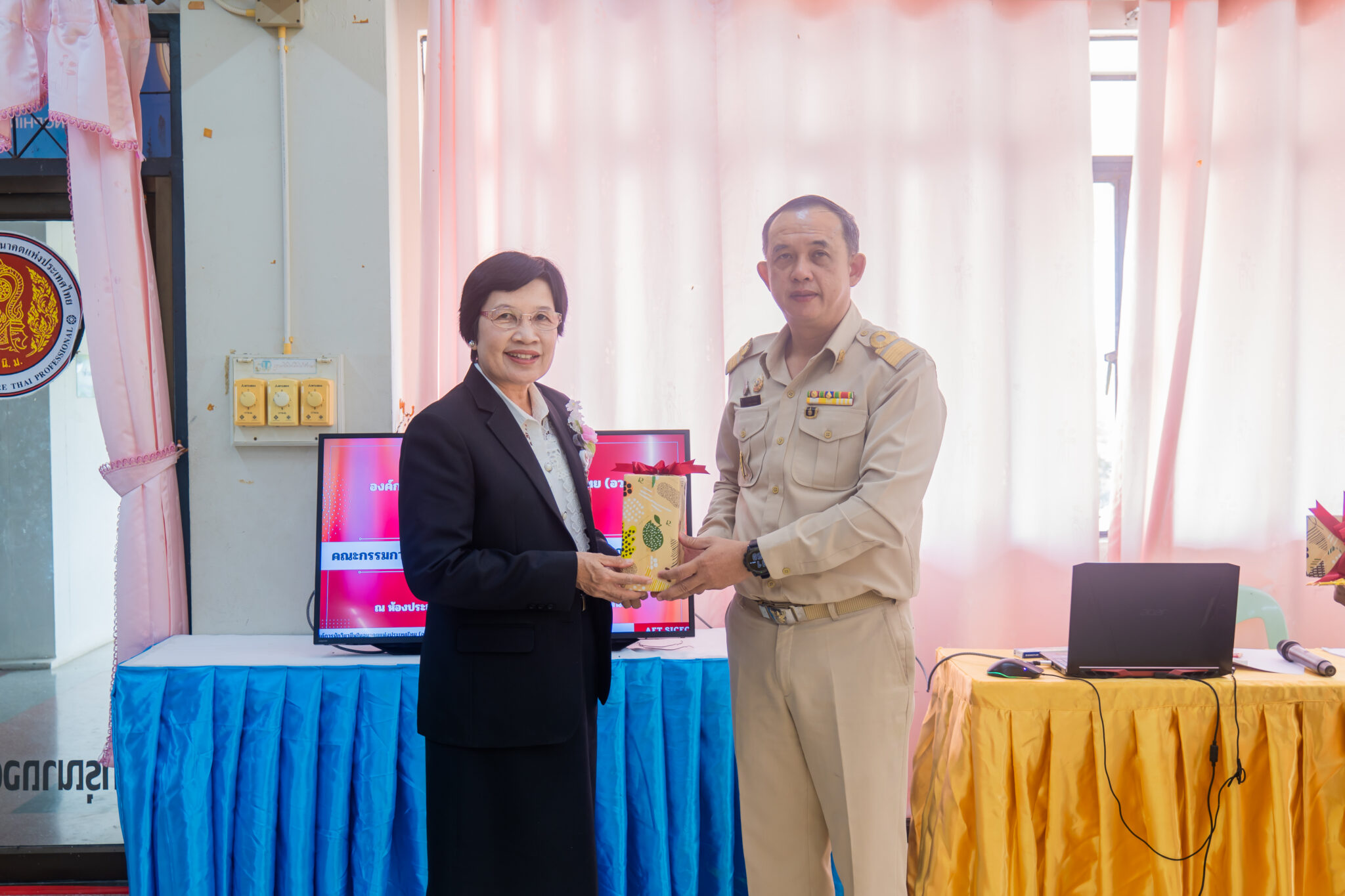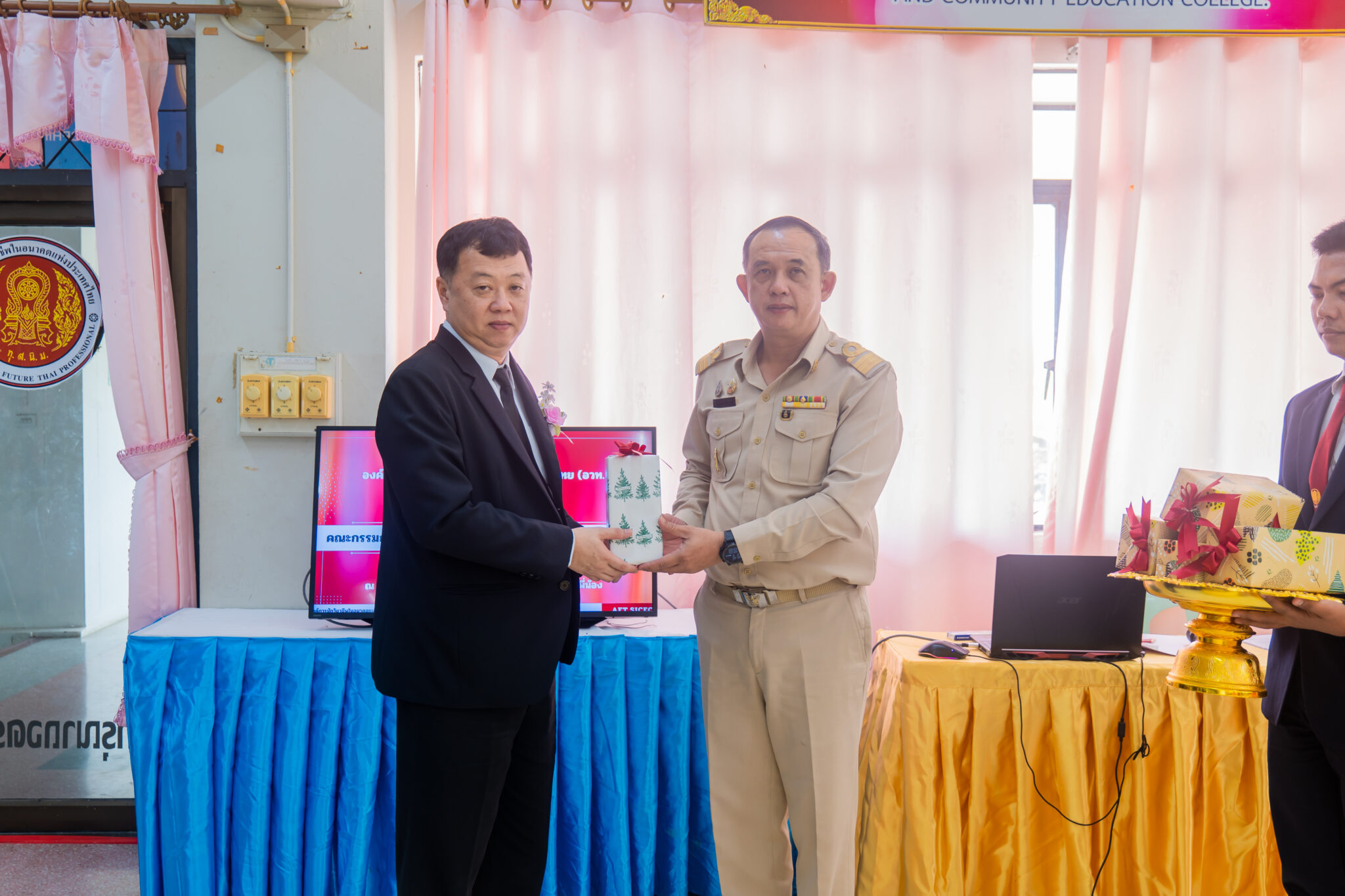 บุญเปรี้ยว รองผู้อำนวยการวิทยาลัยเทคนิคสุพรรณบุรี และนางสาวเง็กไน้ แซ่ลี้ ผู้ทรงคุณวุฒิ โดยการ