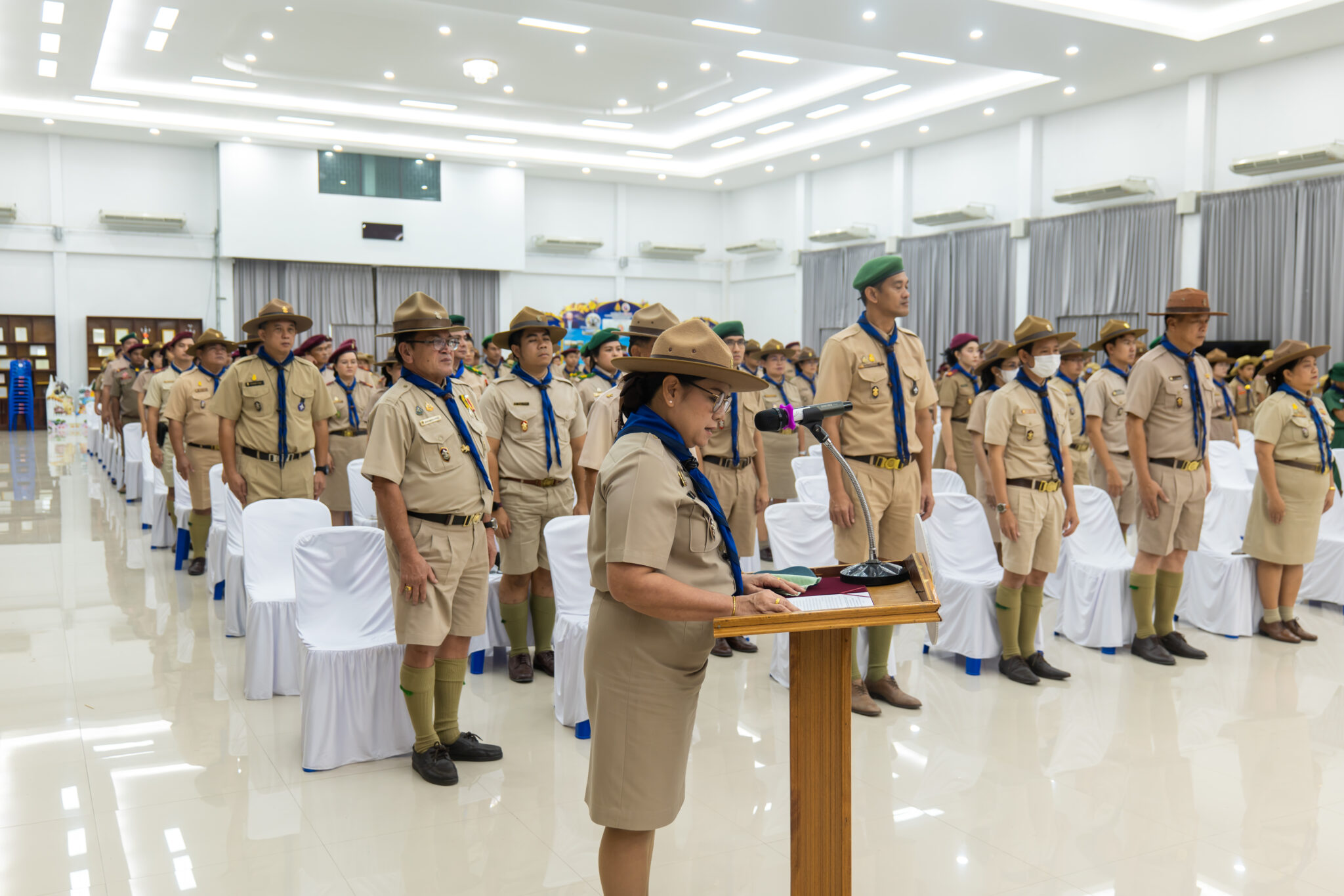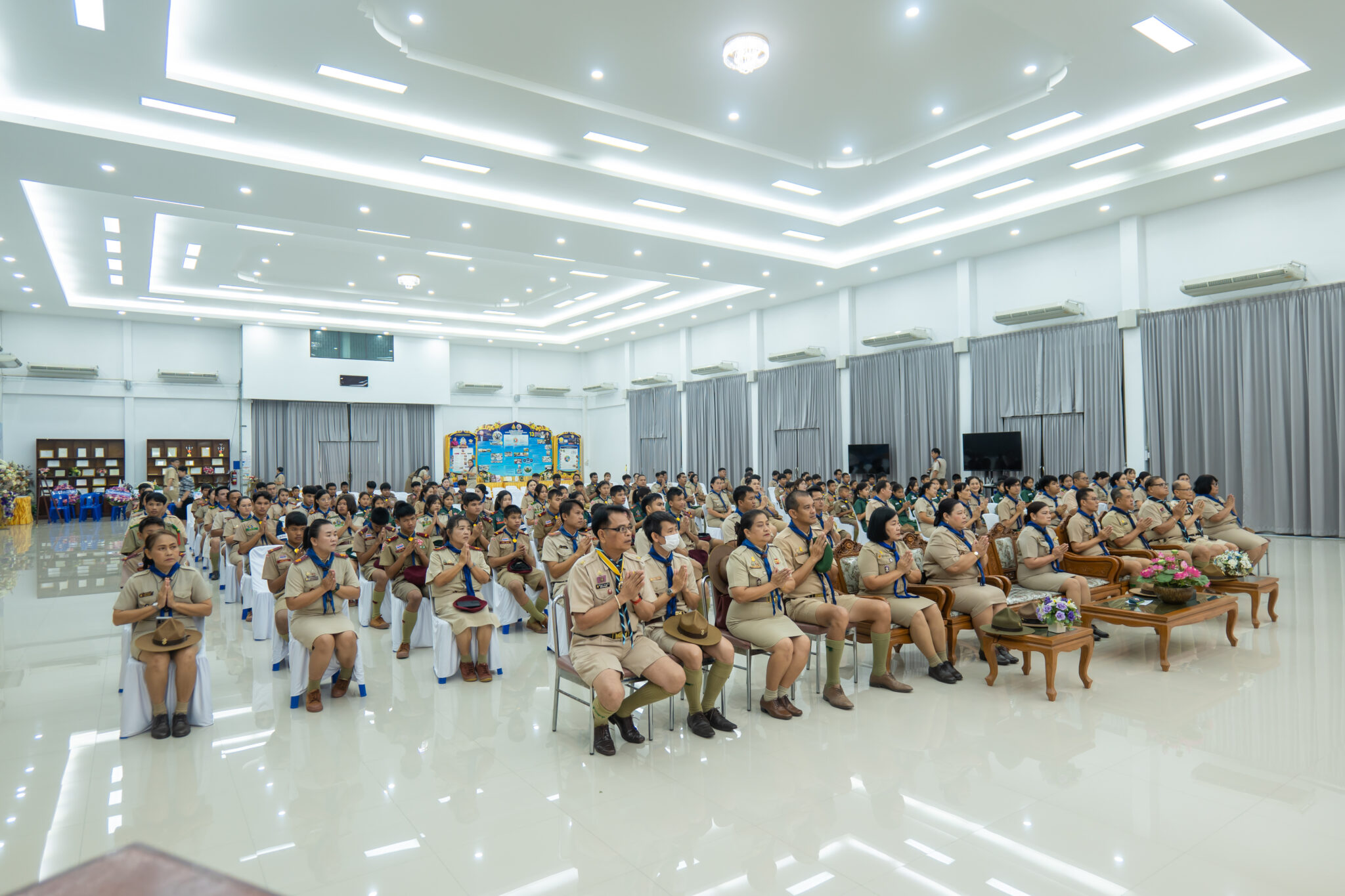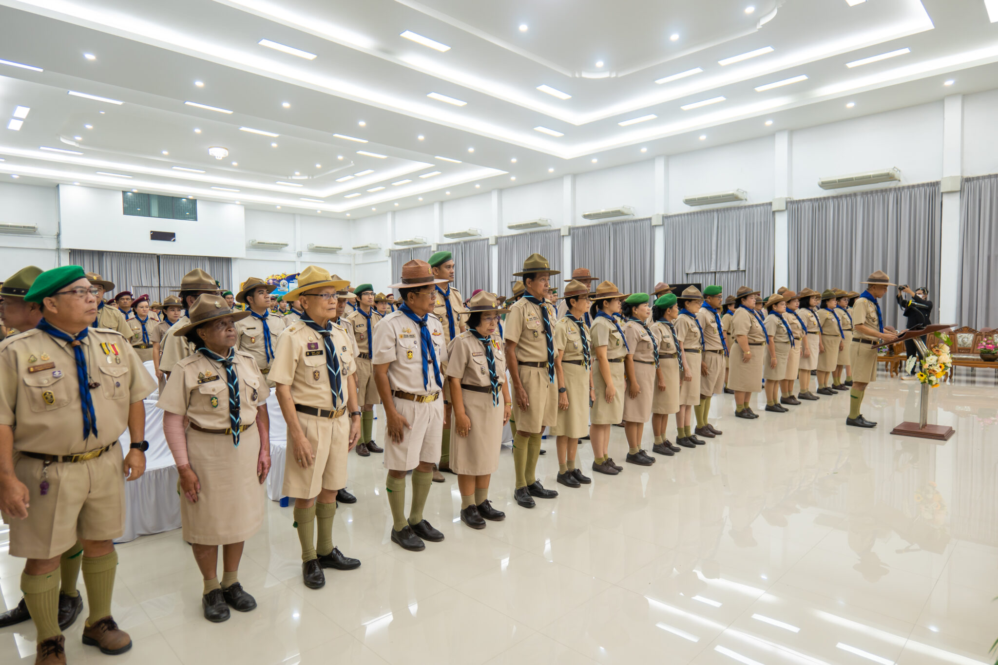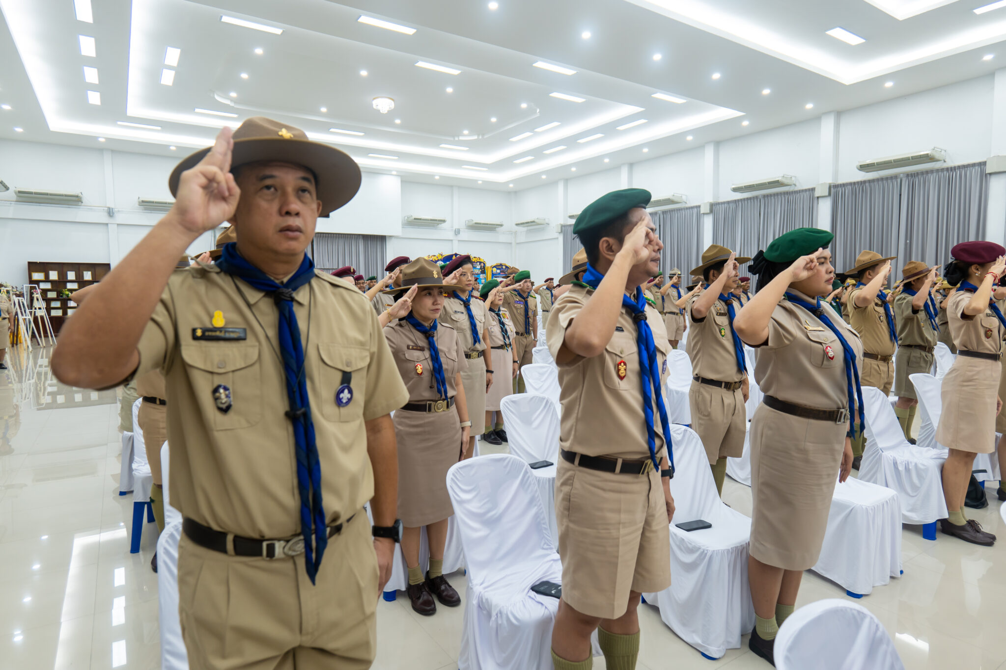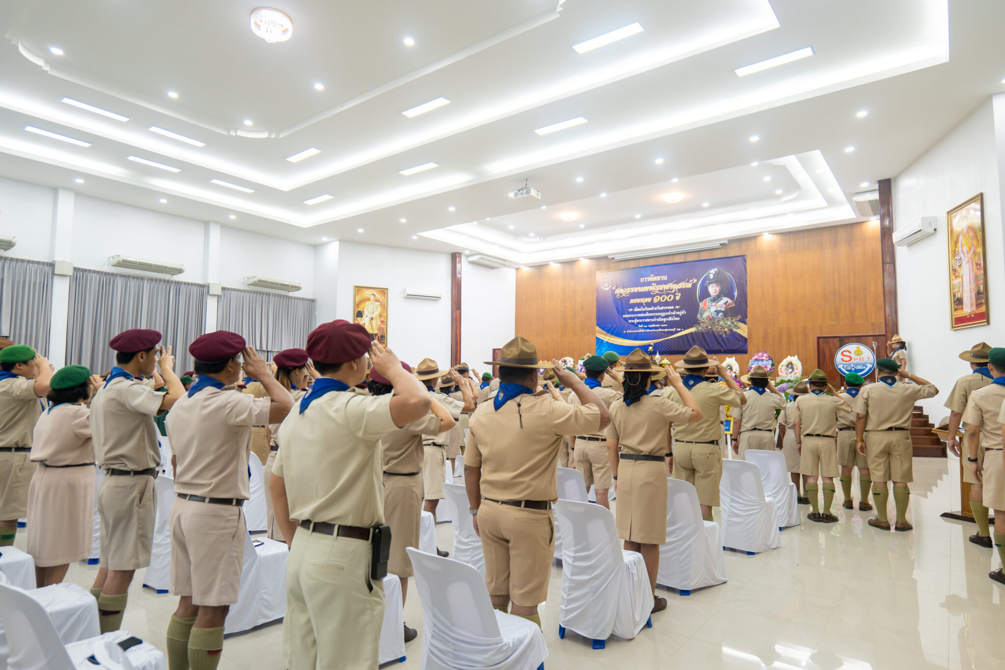 วิทยาลัยการอาชีพสองพี่น้อง พร้อมด้วยผู้กำกับลูกเสือวิสามัญ และลูกเสือจิตอาสาพระราชทาน
