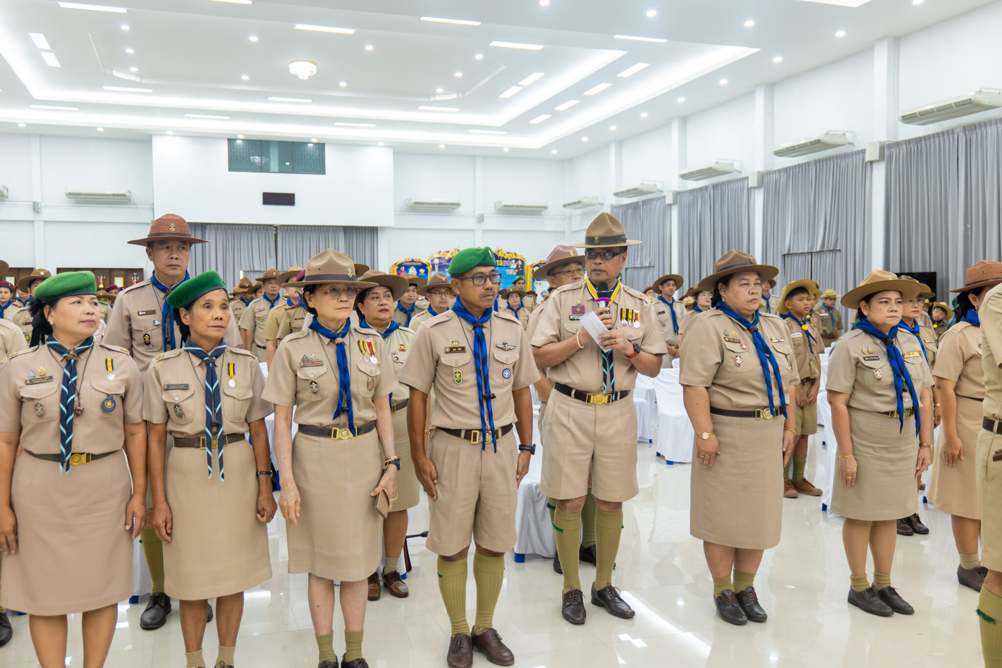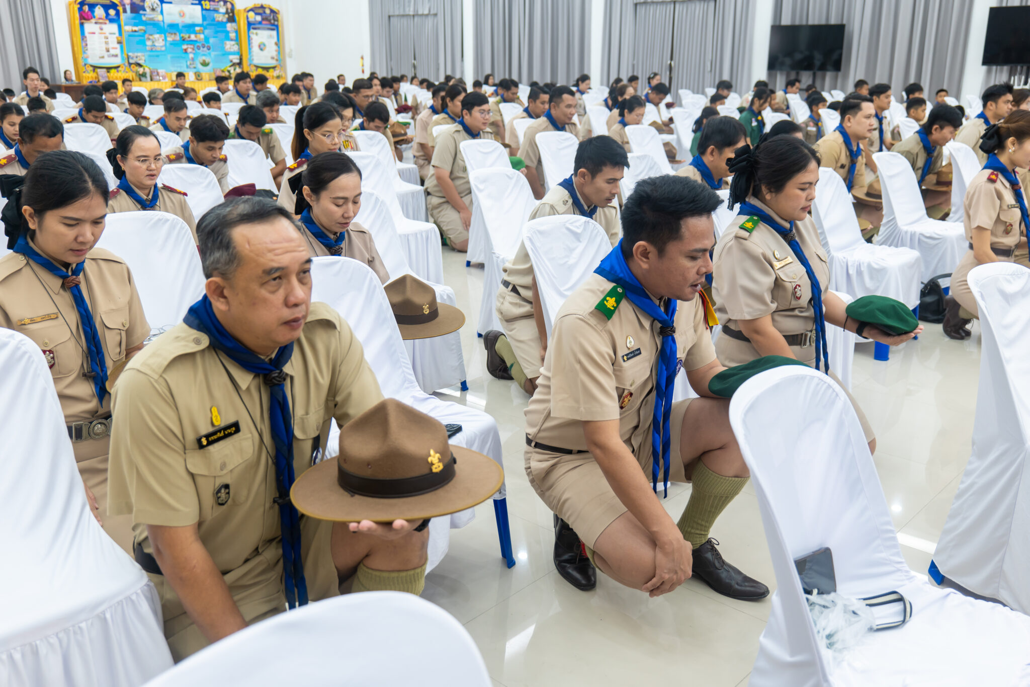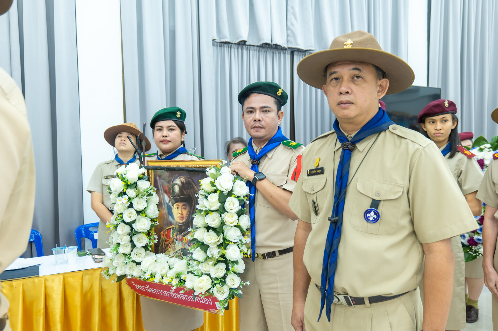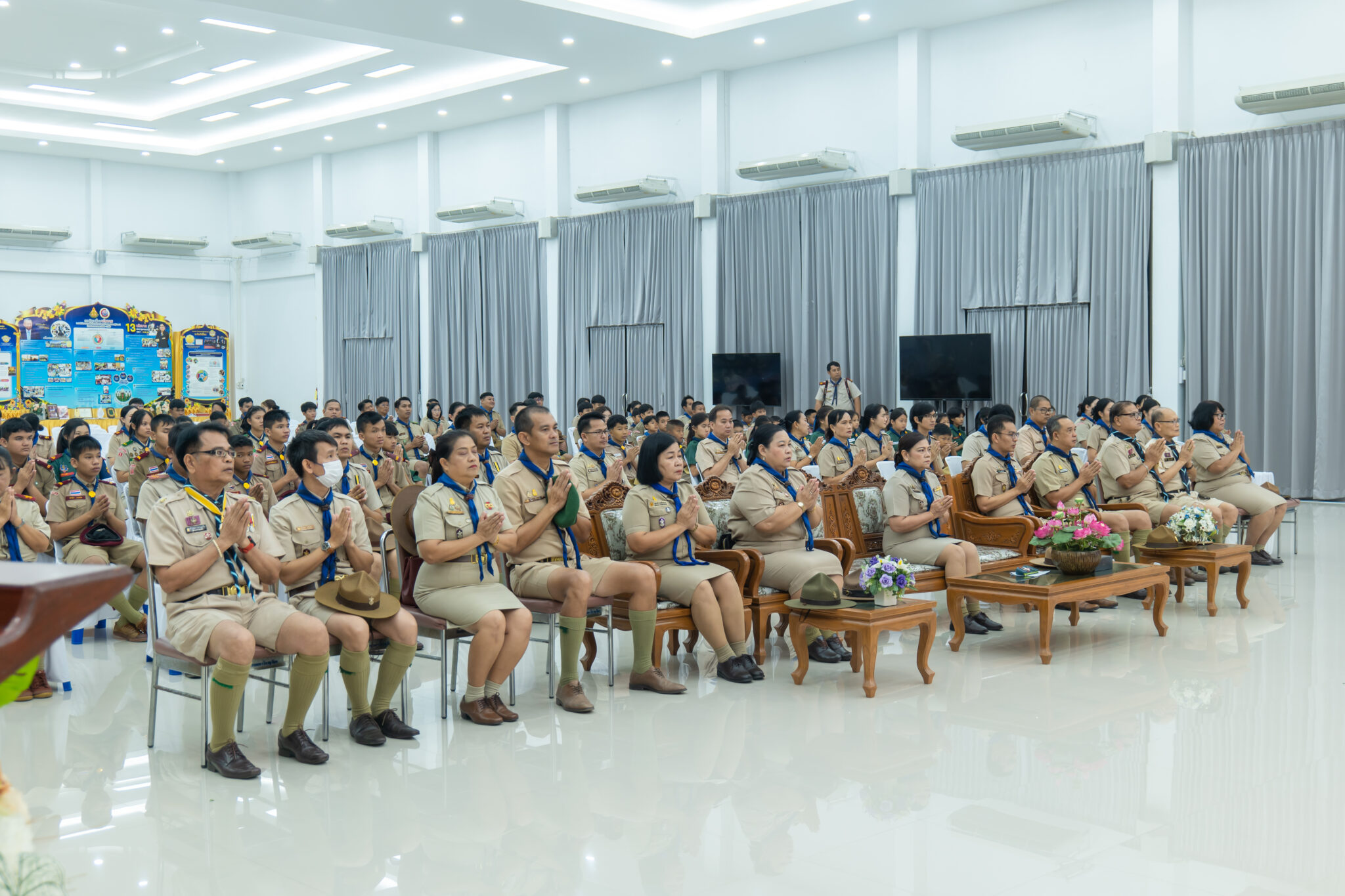 วิทยาลัยการอาชีพสองพี่น้อง พร้อมด้วยผู้กำกับลูกเสือวิสามัญ และลูกเสือจิตอาสาพระราชทาน