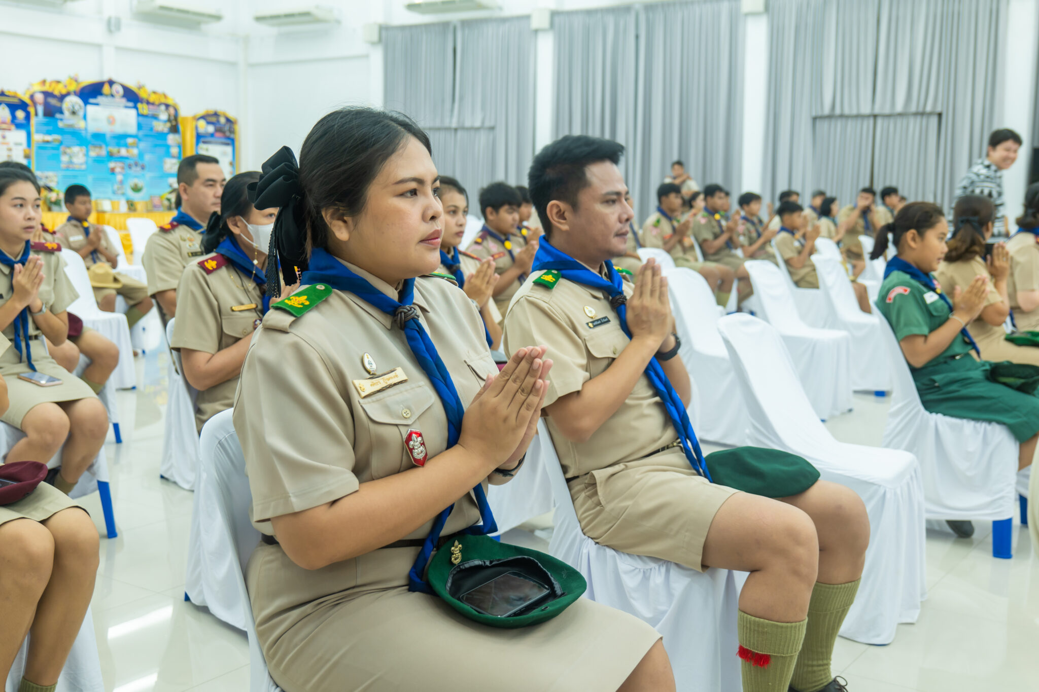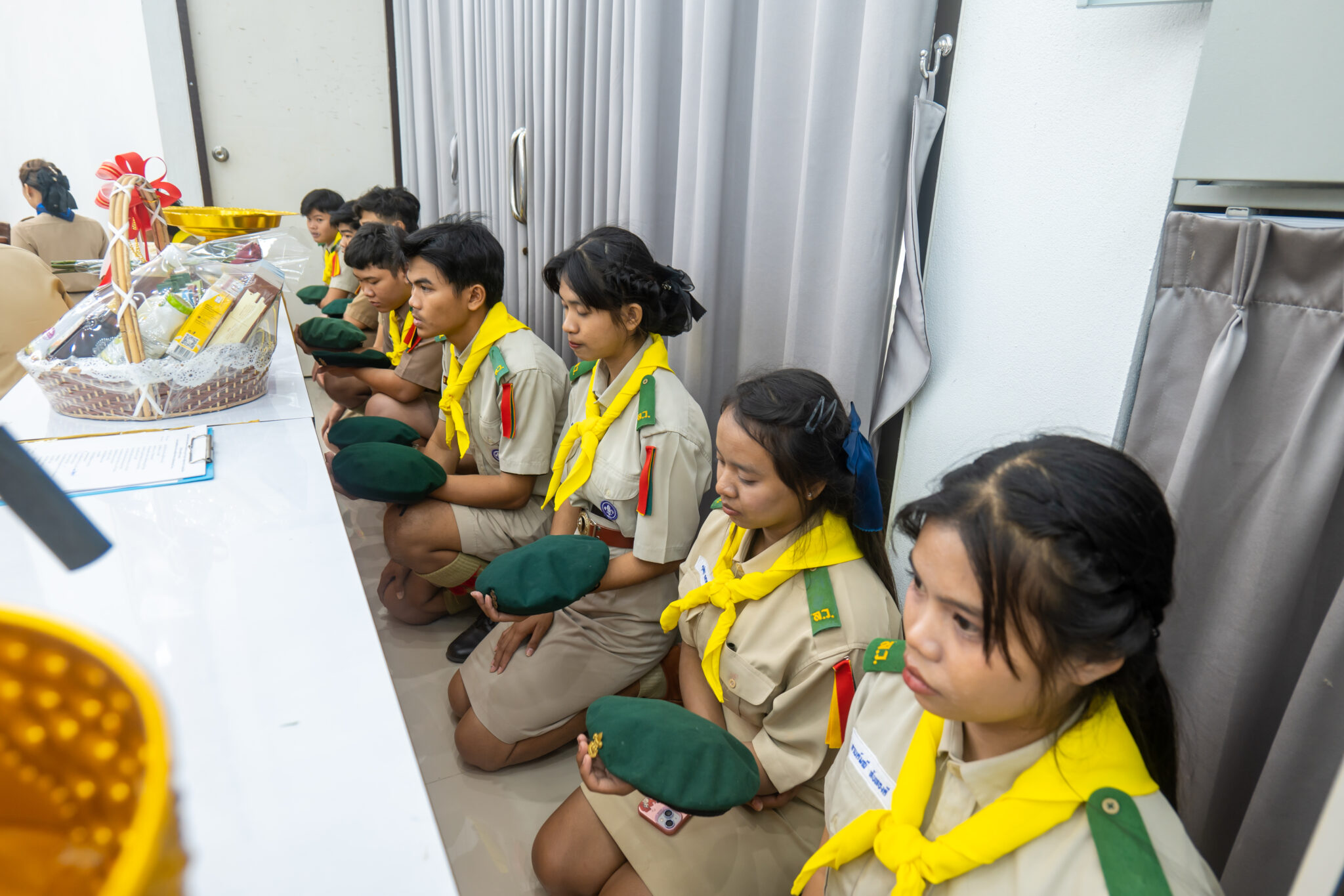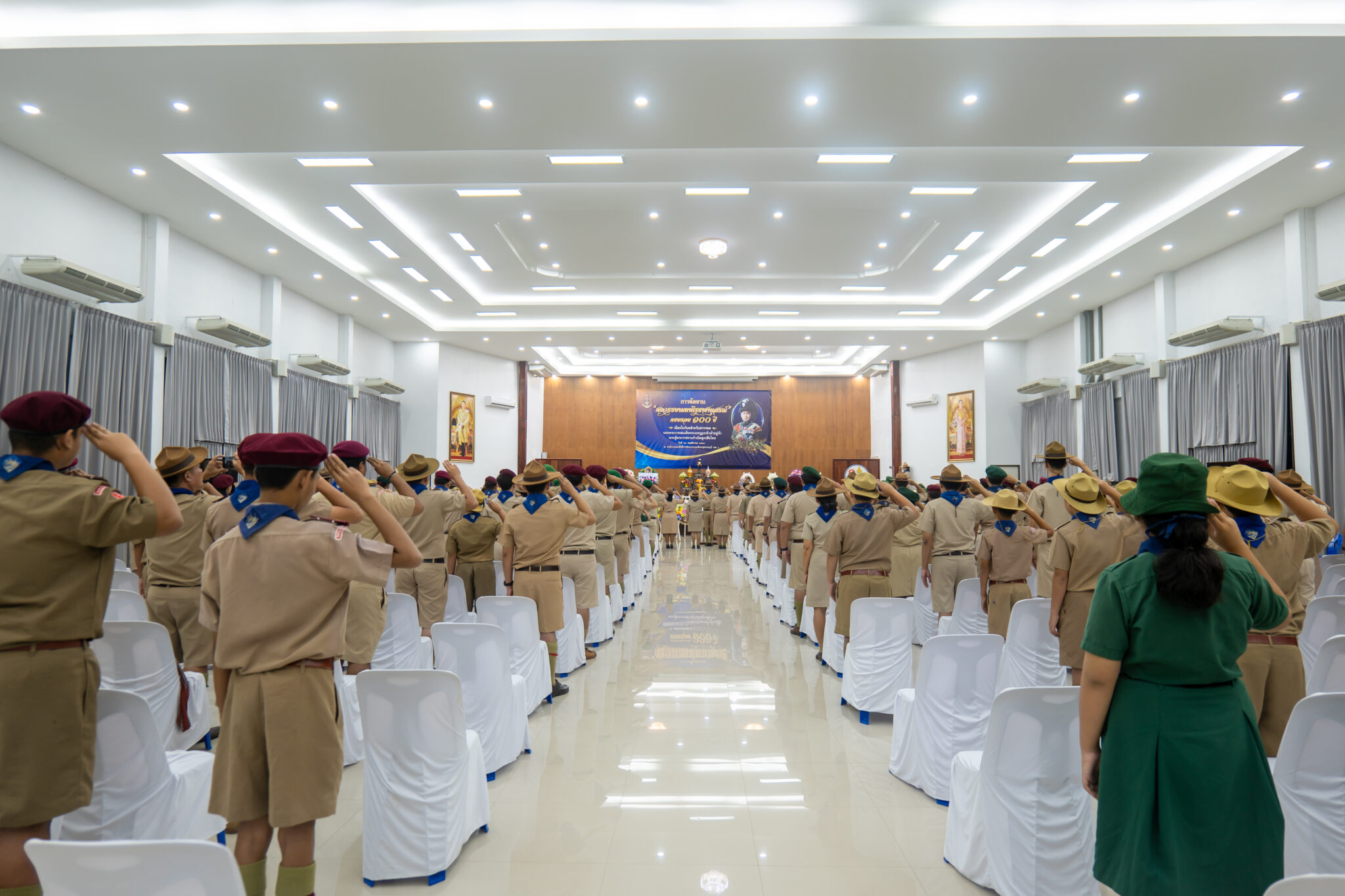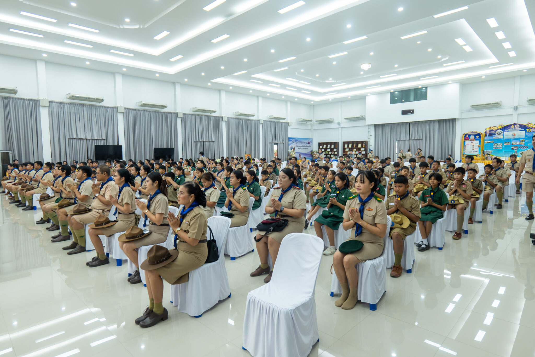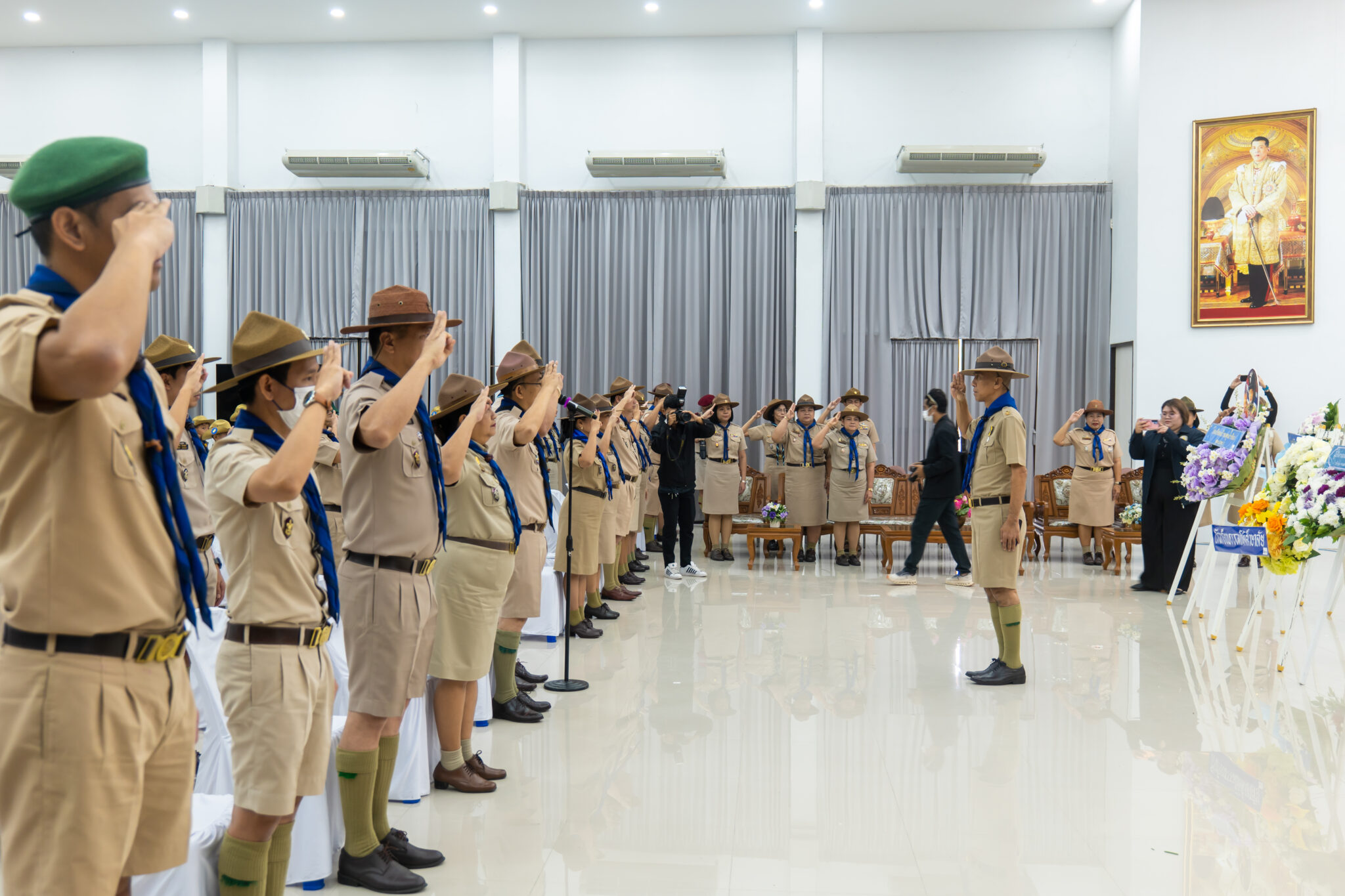 วิทยาลัยการอาชีพสองพี่น้อง พร้อมด้วยผู้กำกับลูกเสือวิสามัญ และลูกเสือจิตอาสาพระราชทาน