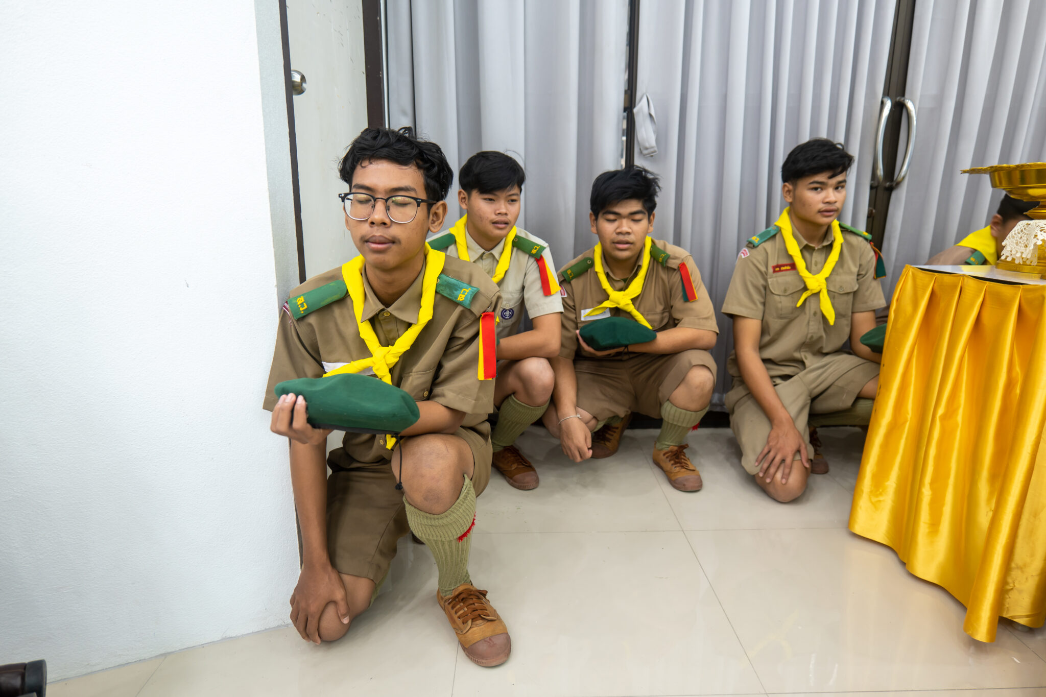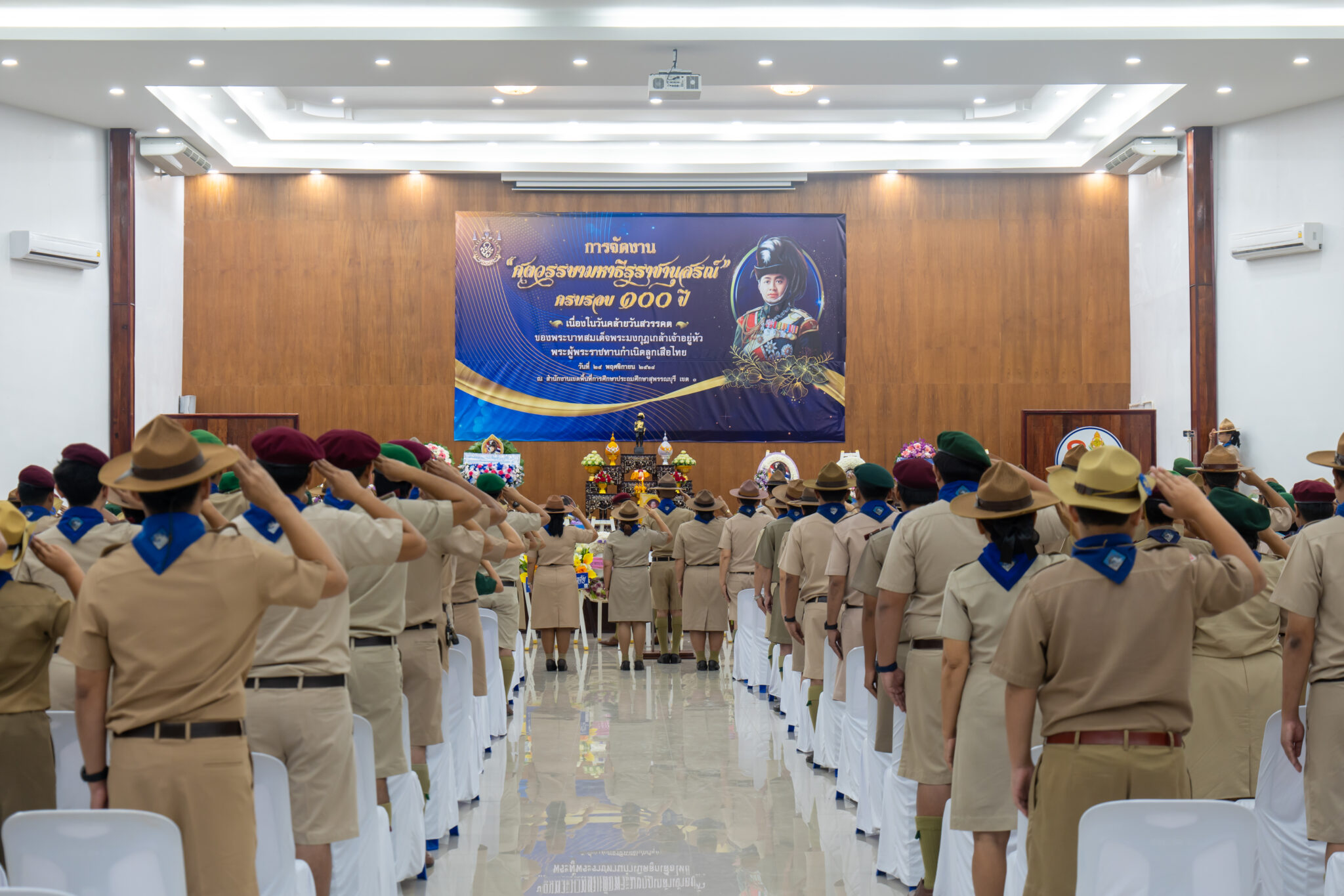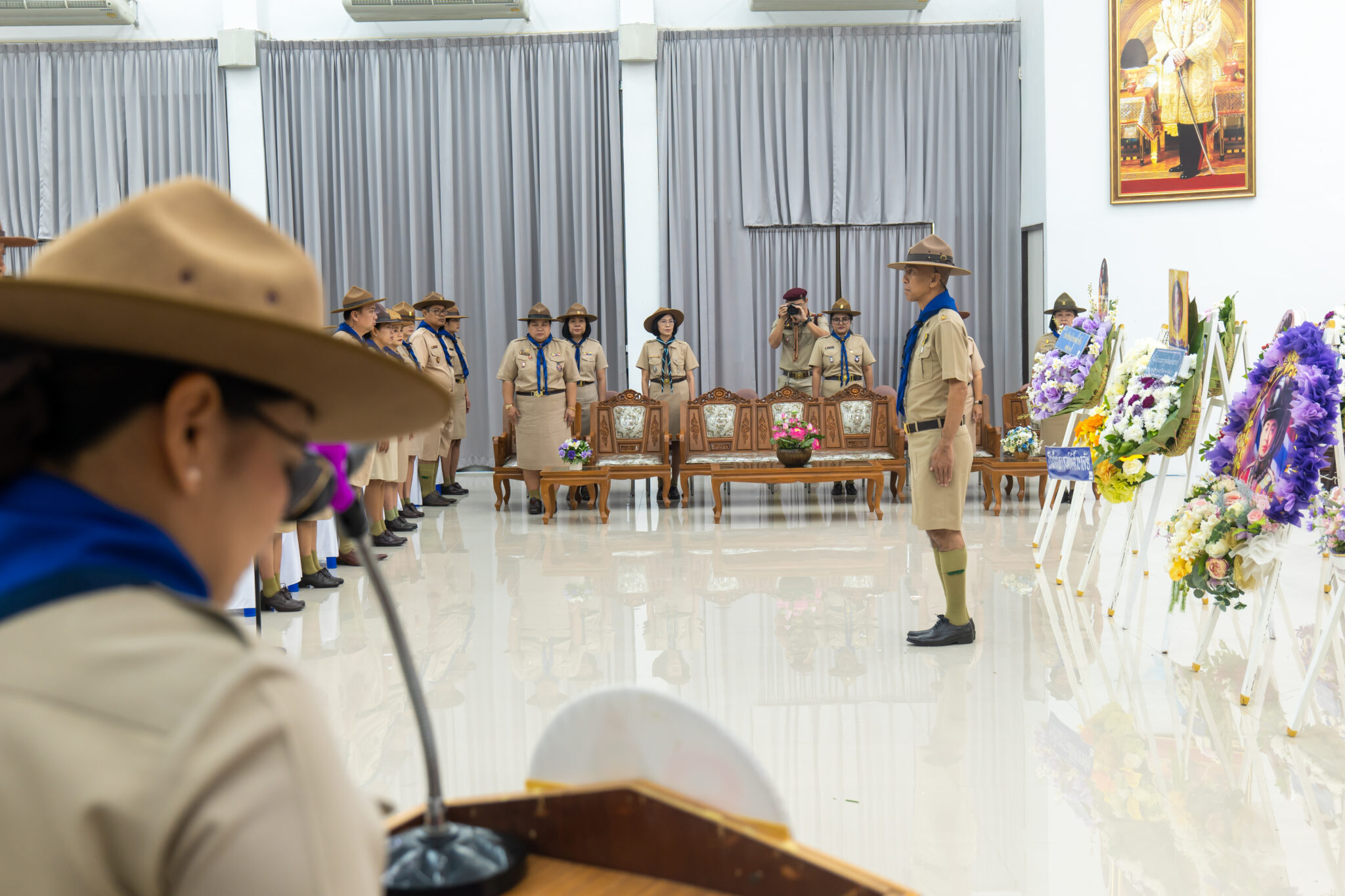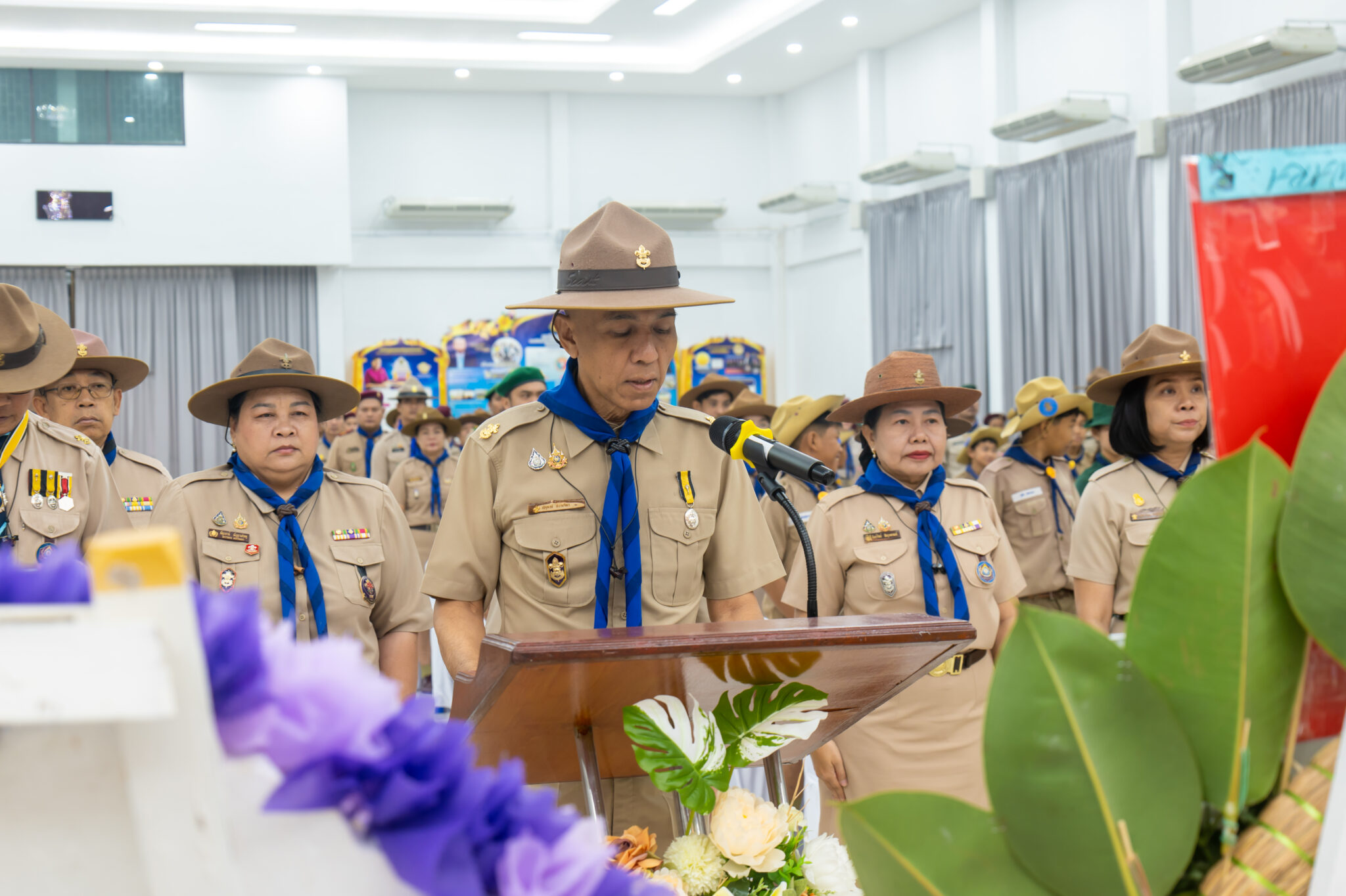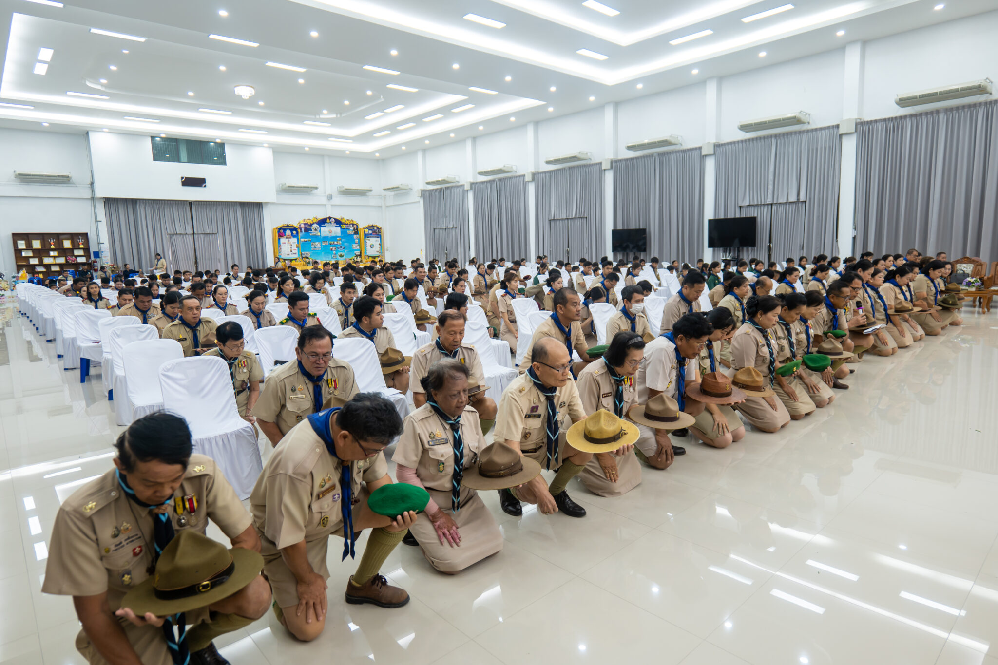 วิทยาลัยการอาชีพสองพี่น้อง พร้อมด้วยผู้กำกับลูกเสือวิสามัญ และลูกเสือจิตอาสาพระราชทาน