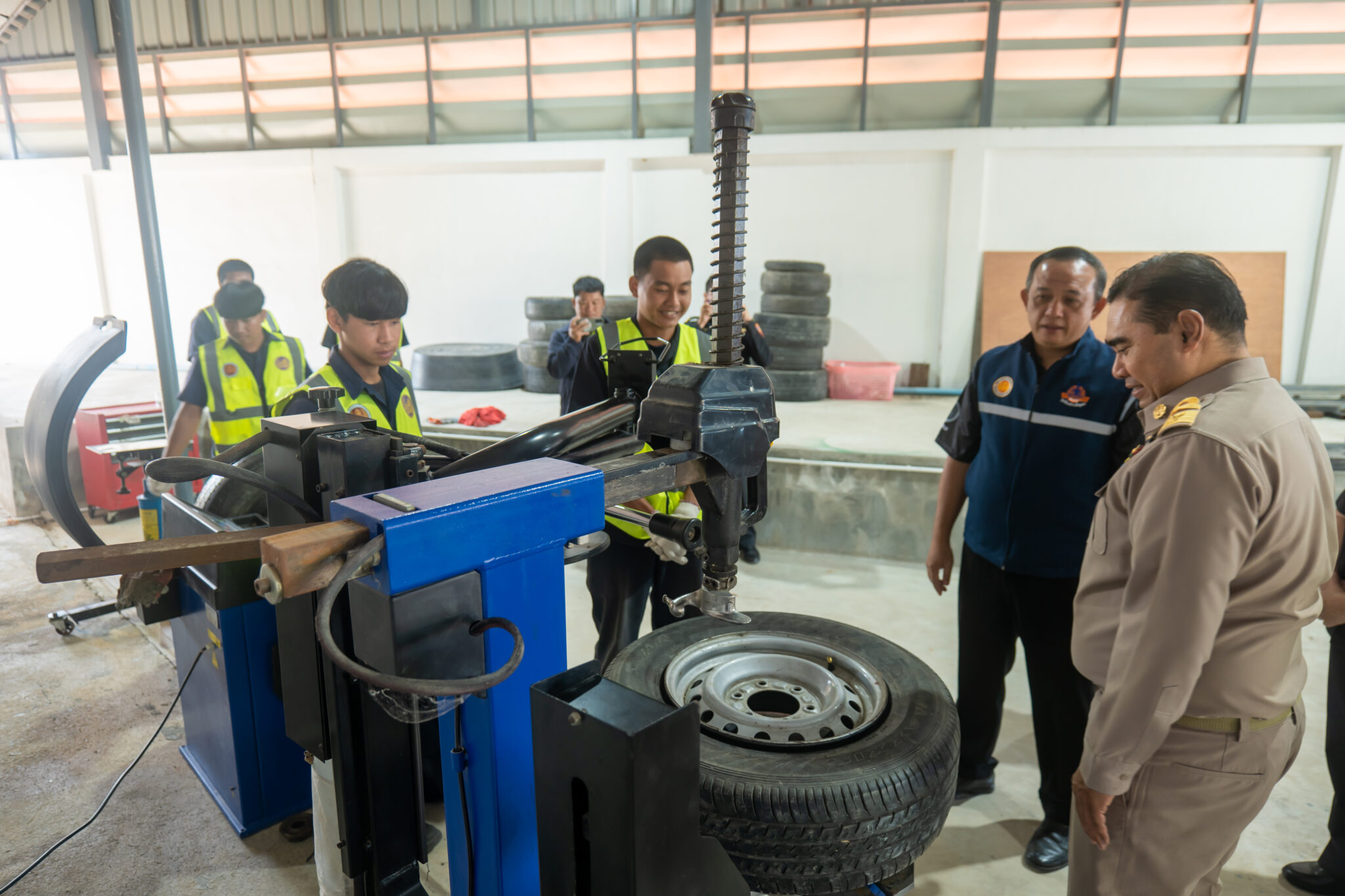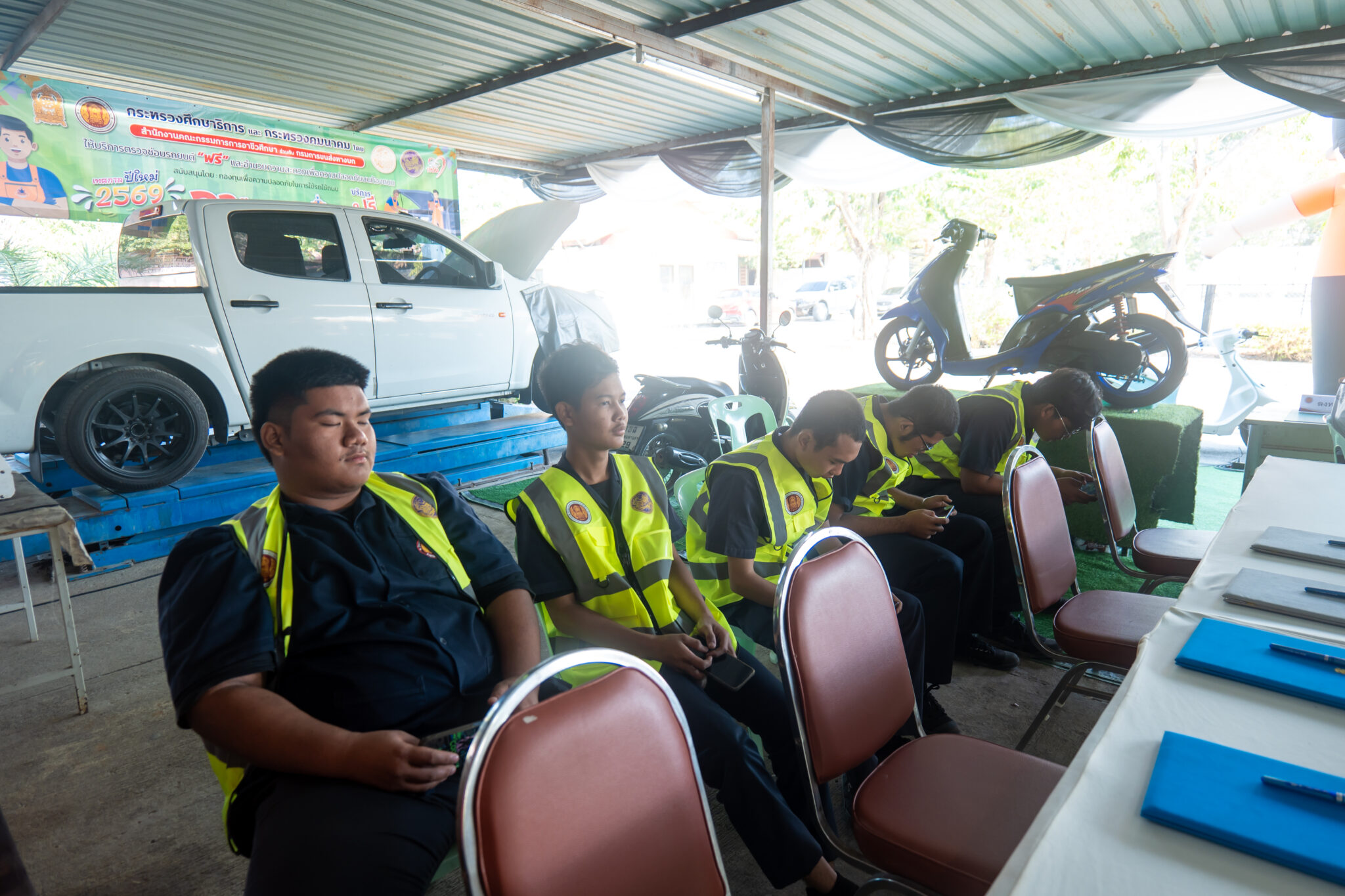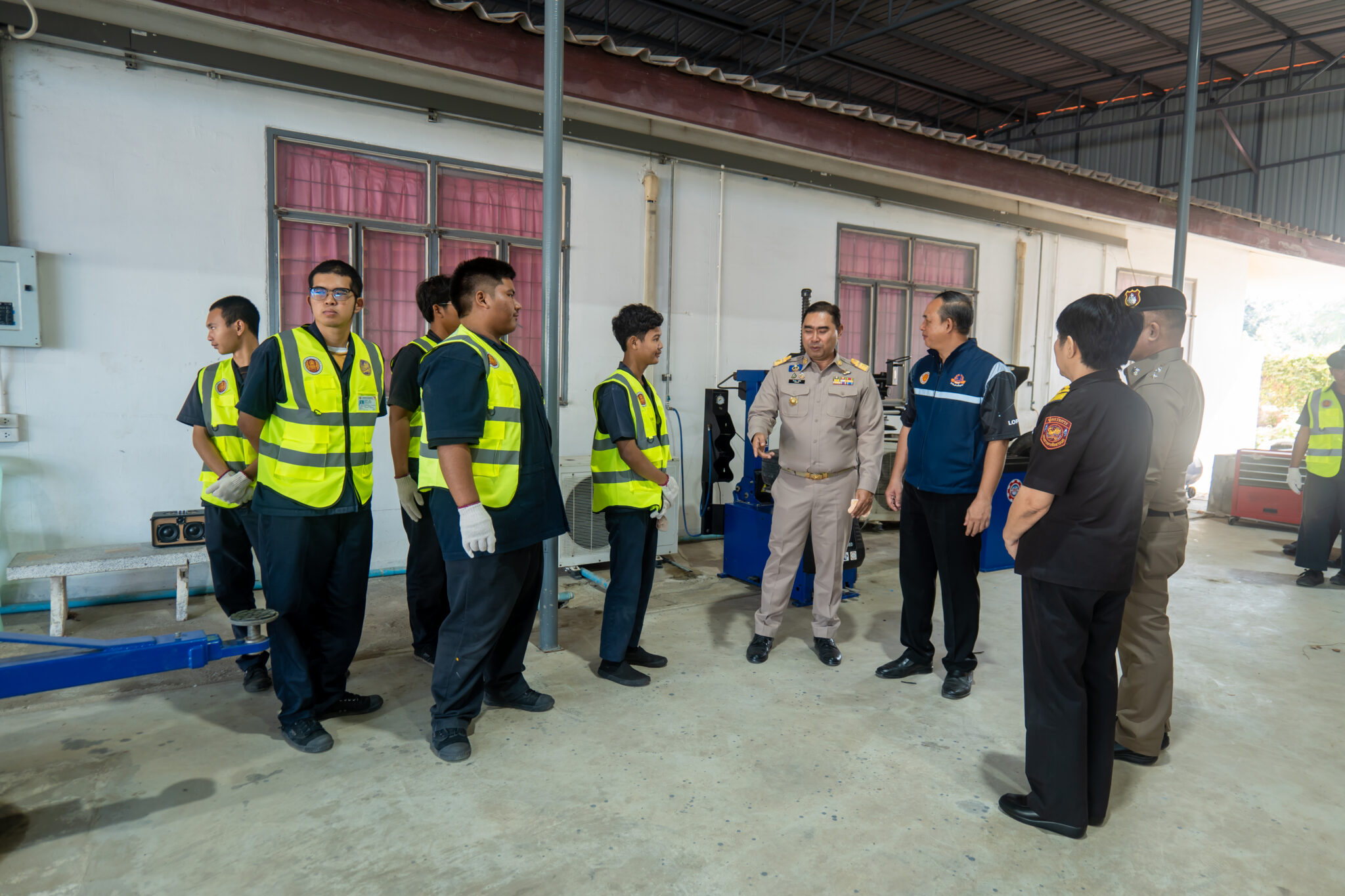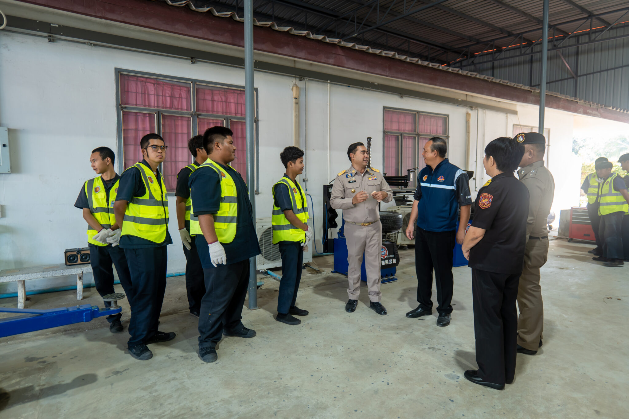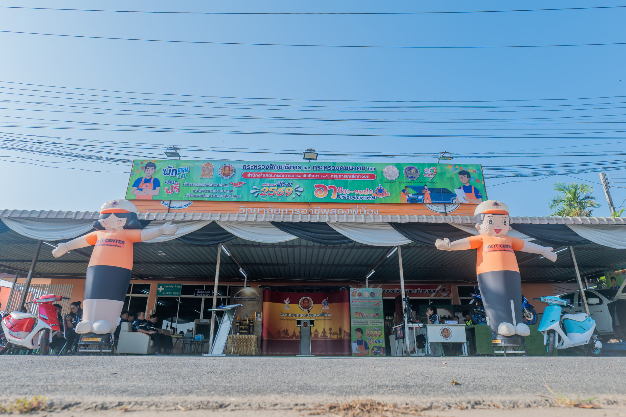พร้อมด้วยคณะผู้บริหาร ครู บุคลากร นักเรียน ร่วมกันดำเนินโครงการอาชีวะ-ขนส่ง อาสาช่วยประชาชน
