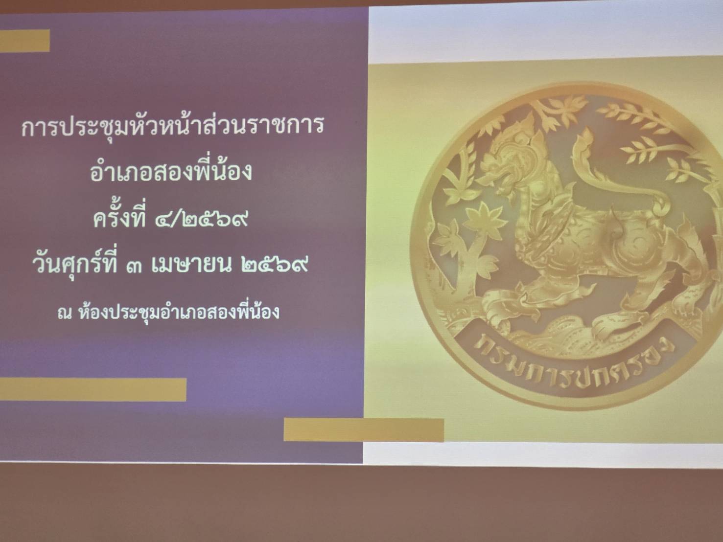 ภายในอำเภอสองพี่น้อง ครั้งที่ 4/2569 โดยมีนายรัชกฤต พยัคฆ์ นายอำเภอสองพี่น้อง เป็นประธาน