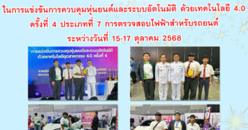 17 ตุลาคม 2568 ได้รับรางวัลรองชนะเลิศอันดับที่ 2”ในการแข่งขันการควบคุมหุ่นยนต์และระบบอัตโนมัติ ด้วยเทคโนโลยี 4.0ครั้งที่ 4 ประเภทที่ 7 การตรวจสอบไฟฟ้าสำหรับรถยนต์