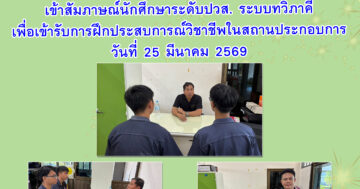 ฉบับที่ 303 บริษัท เอส.เอส.เอส. ออโตโมทีฟ อินดัสตรี จำกัดเข้าสัมภาษณ์นักศึกษาระดับปวส. ระบบทวิภาคีเพื่อเข้ารับการฝึกประสบการณ์วิชาชีพในสถานประกอบการ 26 มีนาคม 2569 จดหมายข่าว นายอนุสรณ์ วงษ์ประเสริฐ26 มีนาคม 2569