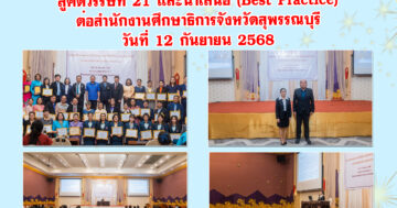 ฉบับที่ 137 เข้าร่วมงานการศึกษาสุพรรณบุรีเป็นหนึ่ง แลกเปลี่ยนเรียนรู้สู่ศตวรรษที่ 21 และนำเสนอ (Best Practice)ต่อสำนักงานศึกษาธิการจังหวัดสุพรรณบุร 15 กันยายน 256815 กันยายน 2025 จดหมายข่าว นายอนุสรณ์ วงษ์ประเสริฐ15 กันยายน 2568